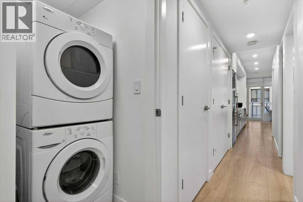 Location, location, location! Welcome to Waterfront, a premier riverfront community, in an exquisite complex perfectly positioned along the Bow River. Views, nature, accessibility, convenience, this location has it all. One of the best downtown locations there is! This well-designed residence offers just under 500 sq ft of stylish living space, featuring one bedroom and one full bathroom in a bright, contemporary layout. The moment you step inside, you’ll appreciate the natural light pouring through the west-facing windows, creating a warm and inviting atmosphere throughout the home. Durable laminate flooring flows seamlessly through the open-concept living space. The modern kitchen is finished with a clean blend of white and wood cabinetry, quartz countertops, and stainless steel appliances, offering both function and timeless appeal. The living room extends out to a private balcony—an ideal spot to relax and enjoy sunny summer evenings.Additional highlights include in-suite laundry, secure underground parking, and a dedicated storage locker for added convenience. The building also has a very nice gym, hot tub and steam room, as well as a party room that can be booked out! Located in one of Calgary’s most desirable inner-city neighbourhoods, this home is just steps away from the pathway system, parks, transit, and a vibrant selection of shops and restaurants. Whether you’re a first-time buyer, down sizer, or investor, this property presents an exceptional opportunity to enjoy urban living at its finest. (id:6769)