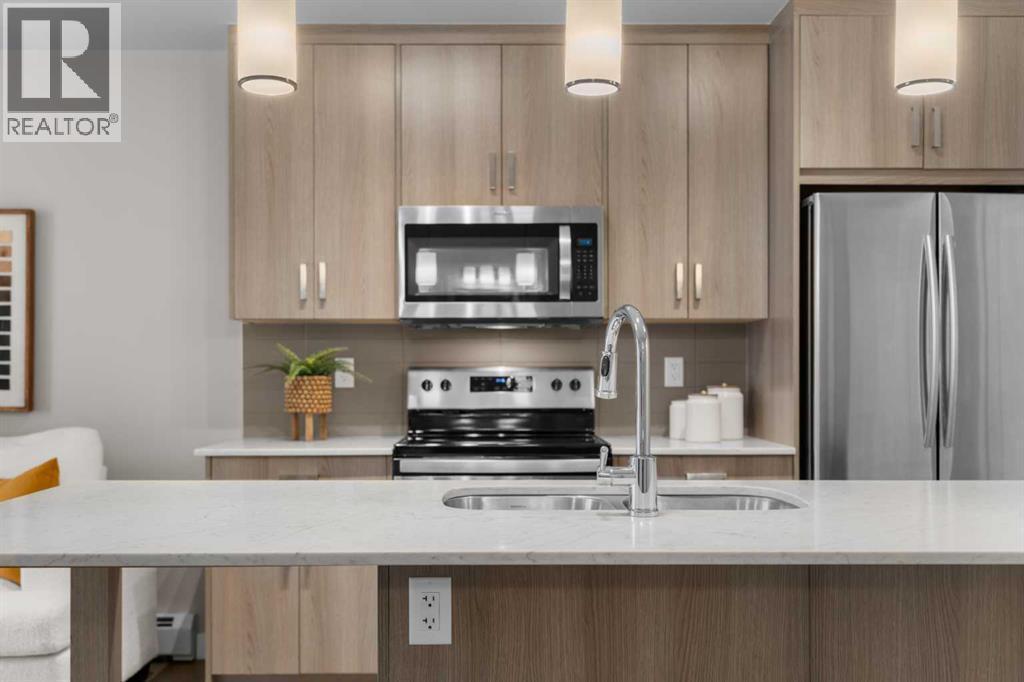 Welcome to lakeside living in the premiere community of Auburn Bay! This beautifully maintained 2-bedroom, 2-bathroom condo combines modern comfort with an unbeatable location just steps from the lake, parks, and vibrant amenities. Step inside and enjoy an open-concept layout designed for everyday living and entertaining. The kitchen features sleek cabinetry, stone countertops, stainless steel appliances, and a breakfast bar that flows seamlessly into the bright living area. Large windows fill the space with natural light, and the private balcony offers a perfect spot to relax or enjoy your morning coffee. The primary suite includes a large closet and a private ensuite with walk-in shower, while the second bedroom and full bath provide ideal space for guests, family, or a home office. In-suite laundry adds convenience, and the unit includes a titled underground heated parking stall with a secure storage cage — perfect for keeping your car and gear protected year-round. Living in Auburn Bay means access to a 43-acre freshwater lake, beach, skating rinks, parks, and walking trails, plus proximity to schools, shopping, restaurants, and the South Health Campus. With quick access to major routes like Deerfoot and Stoney Trail, this home truly offers the best of comfort, lifestyle, and location. Experience the perfect blend of modern living and resort-style amenities — welcome home to Auburn Bay! (id:6769)