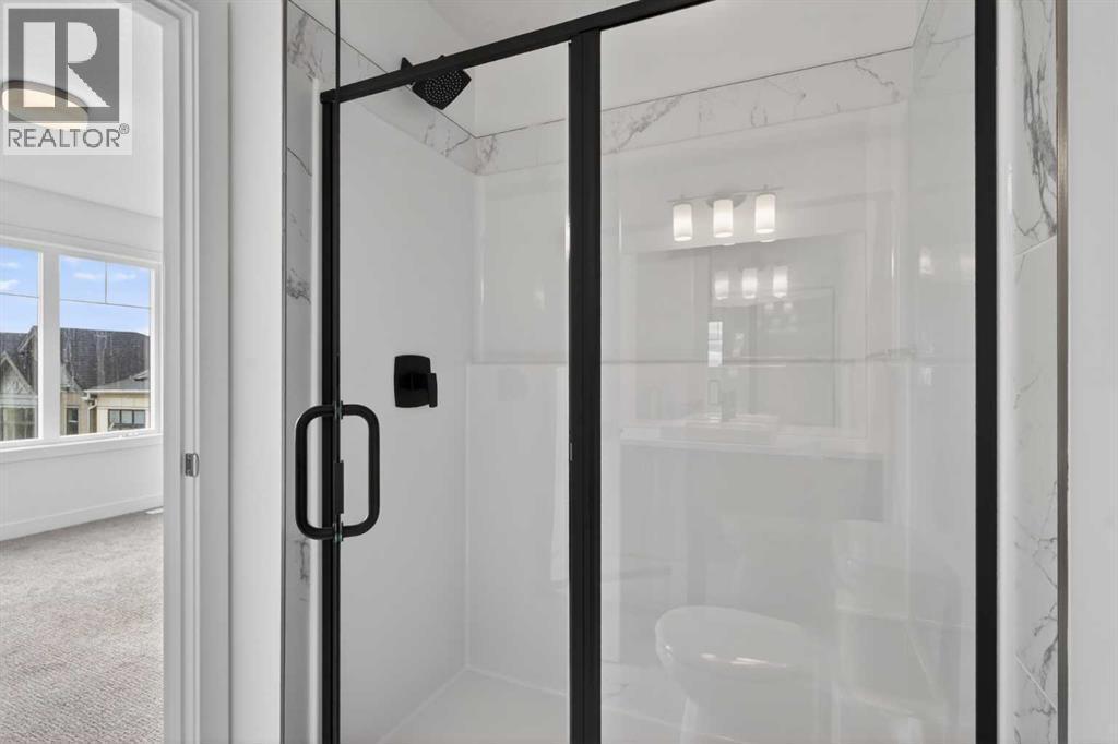 **Immediate Occupancy** Discover the charm and convenience of our Juniper Townhomes — a collection of stylish heritage-style row townhouses near the heart of our beautiful Environment Reserve Park!This Heritage model B (Corner unit) offers the perfect blend of comfortand function, ideal for families and professionals alike. With 3 bedrooms, 2.5 bathrooms, and a versatile main-floor den, this spacious home isdesigned for modern living. Upon entry, you'll find a bright, ground-floor den/home office featuring a large window, closet, and a convenient powderroom. Enjoy a professionally landscaped front yard, a single attached garage, and additional driveway parking. The open-concept main floor boasts 9'ceilings and is filled with natural light, creating a warm and inviting space for everyday living or entertaining. The modern kitchen features quartzcountertops, a breakfast bar, professional stainless steel appliances, and a chimney-style hood fan. Sliding doors open to a full-sized balcony — idealfor relaxing or dining outdoors. Upstairs, you'll find two spacious bedrooms, including a primary suite with a double access closet and a privateensuite featuring a stand-up shower and sliding glass door. A second full 3-piece bathroom serves the additional bedroom, which can easily double asa home office. The upper level also includes a conveniently located washer and dryer, a linen closet, and thoughtful storage throughout. This home islocated in vibrant Springbank Hill and offers easy access to Aspen Landing, Rundle College, Griffith Woods, Ambrose University, restaurants, andsenior care facilities. * The GST is included in the price. (id:6769)