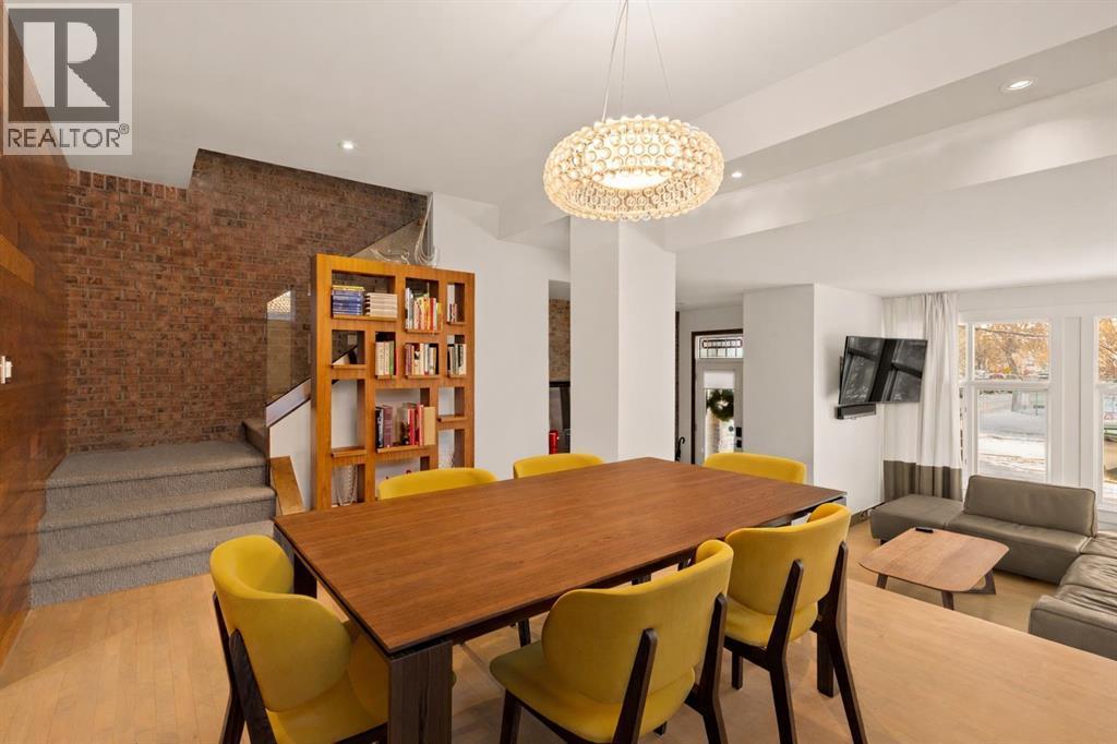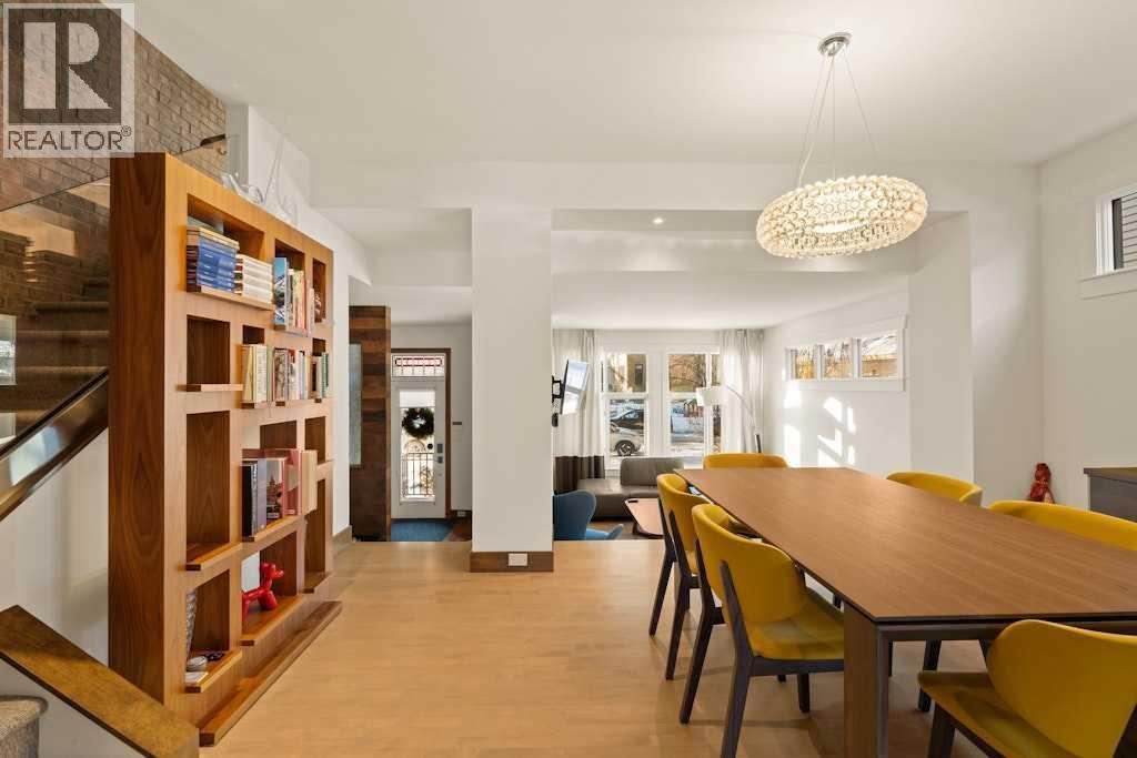 Set in one of Inglewood’s most coveted pockets, backing directly onto the Bow River and the incredible pathway system, this home offers a rare blend of privacy, polish, and effortless access to downtown. From the moment you arrive, the finish is unmistakably elevated: newly refinished hardwood floors, plush wool carpeting, and a bright, spacious living room framed by tall windows and the added luxury of no neighbours in front (or behind), just a quiet streetscape. Entertain with ease in the generous dining room, then unwind in the stylish family room where a European linear wood burning fireplace is anchored by a custom reclaimed-wood mantle. The contemporary kitchen is beautifully appointed with a gas range, premium stainless steel appliances, 2 garburators, granite countertops, and richly stained cabinetry. Step outside onto a large deck overlooking a park-like setting with views that stretch beyond the river and pathways, creating an outdoor space that feels like your own private escape. Step down from the deck into a backyard that’s currently open, with the option to fence it in if you’d like. An underground gas line runs to the yard and presently services the included fire table. A striking glass railing and custom faux brick accents lead you upstairs to a spacious flex space, that's ideal for an office nook, as well as 2 bedrooms, including the primary suite with vaulted ceilings and an expansive walk-in closet. The spa-inspired bathroom delivers true retreat energy with a freestanding soaker tub, separate shower, trough sink and the practicality of a laundry chute that makes everyday living feel seamless. Central A/C keeps the home comfortable through Calgary’s warm summer days. The fully finished lower level adds a third bedroom, full bathroom, and laundry room with sink, along with direct access to the attached heated garage that has a recently epoxied floor with a central vac system. With incredible access to running and biking trails, St. Patrick’s Island Park, and the best of Inglewood’s cafés and restaurants just a stroll away, this is river-adjacent living at its most refined. This portion of Inglewood was protected from the 2013 flood by an existing berm, offering added peace of mind in a location that truly has it all. (id:6769)