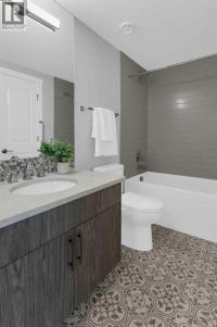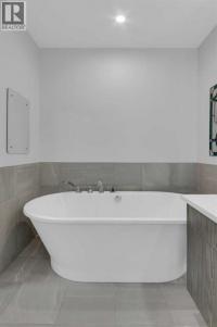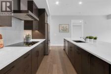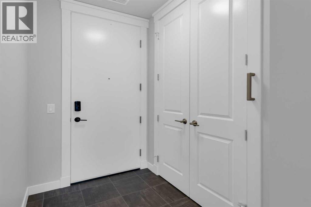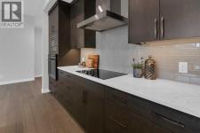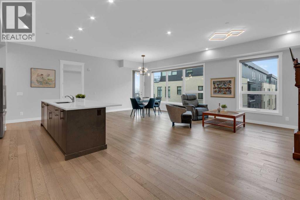 Welcome to Capella in University District, a small condo building with only 8 Estate Style single level luxury homes. This spacious and well laid-out 2 bedroom, 2 bathroom condo with single garage is just steps away from all of the amenities this highly desirable community offers. Located on the third floor is this modern residence with hardwood flooring, 10 foot ceilings, many large windows, central air conditioning, designer bathrooms and well-equipped spacious kitchen. The open concept main living space is flooded with natural light and features a sleek kitchen with expansive island, quartz countertops and full height cabinetry. The kitchen opens directly on to the dining space, the living room with electric fireplace, and a nook that works well for a den/office or as space for additional furniture. The bright primary suite offers enough space for a king size bed, a walk-in closet, and a 5-piece ensuite with heated floors, free standing tub, dual vanity, and fully tiled walk-in shower. The second bedroom has a murphy bed, a full bathroom across the hall, and is located on the other side of the condo from the primary bedroom, providing privacy between the bedrooms. Enjoy the morning sunrise on the spacious east-facing covered balcony that is equipped with a gas line for your BBQ or heater and a water line. The private, heated singe garage is attached to the building has epoxy floors, storage space, and a water softener for the condo unit. This well cared for building is part of a 7 building complex that offers a fitness centre, visitor parking, and courtyard spaces. Conveniently situated within walking distance to a grocery store, restaurants and coffee shops. Steps away from Market Mall, the U of C and the Children's Hospital and a quick commute to downtown and access out to the mountains. (id:6769)