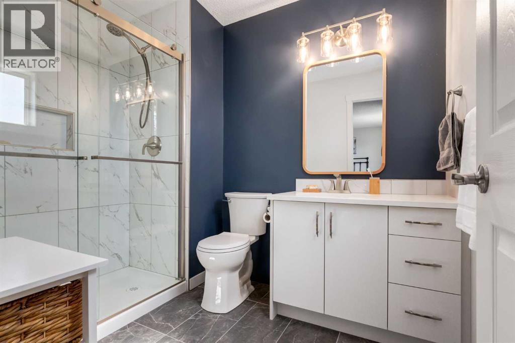 Fully Renovated family home in the heart of Airdrie, showcasing over 2,000 Sq. Ft. of developed living space. Set in a mature, established neighbourhood, this home is within walking distance to schools, grocery stores, and an off-leash dog park, plus it’s just steps from a winter outdoor skating rink, open fields with great walking paths, and only 1.5 km from Genesis Place Recreation Centre. Commuters will also appreciate the easy access to Highway 2. From the moment you arrive, you’ll notice the fresh curb appeal with new exterior paint, a custom wooden front door, and updated siding, shingles, and garage door. The landscaping has been enhanced with trees, fencing improvements, and a private back deck complete with a gazebo, perfect for summer entertaining. Inside, the home has been fully refreshed with new baseboards and trim, designer lighting, fresh paint throughout, and all new flooring on three levels, including luxury vinyl plank and ceramic tile. The chef-inspired kitchen is a showstopper with quartz countertops, stainless steel appliances, and a stylish redesign that makes it the perfect space to gather. The main floor also includes a fully updated half bath and laundry room with a brand-new washer and dryer. Upstairs, you’ll find three bright, functional bedrooms, including a spacious primary retreat complete with a walk-in closet and a fully renovated ensuite featuring a modern stand-up shower. A second full bathroom upstairs has also been redone with fresh finishes. The basement is fully developed, offering a fourth bedroom, a cozy rec room with a built-in shelving unit and an included 85” Smart TV, plus a rough-in for an additional bathroom. Additional updates include a new furnace and central A/C, custom window coverings and blinds, and an updated main floor fireplace feature wall. Every detail has been carefully considered to create a move-in ready home that truly stands out (id:6769)