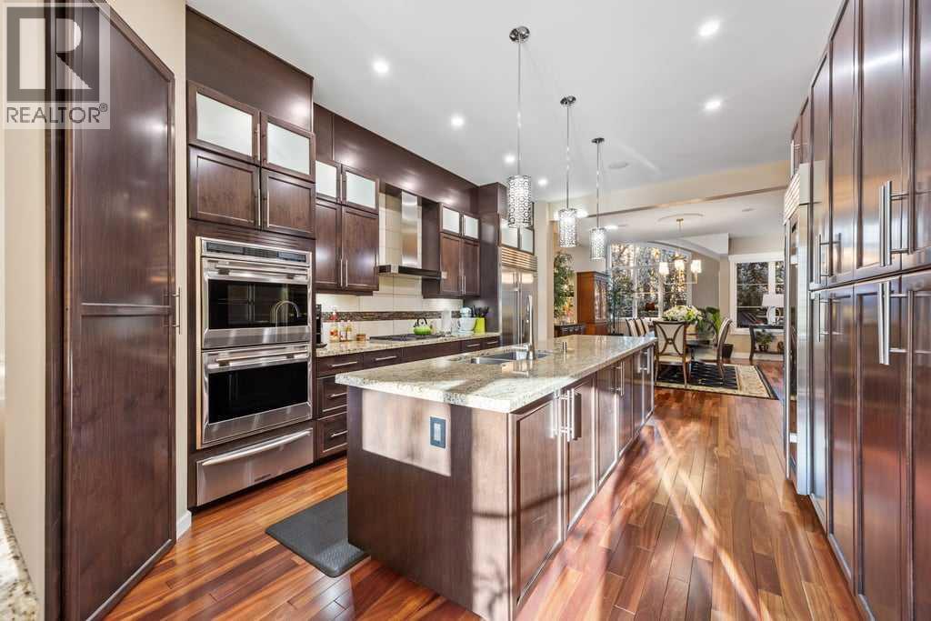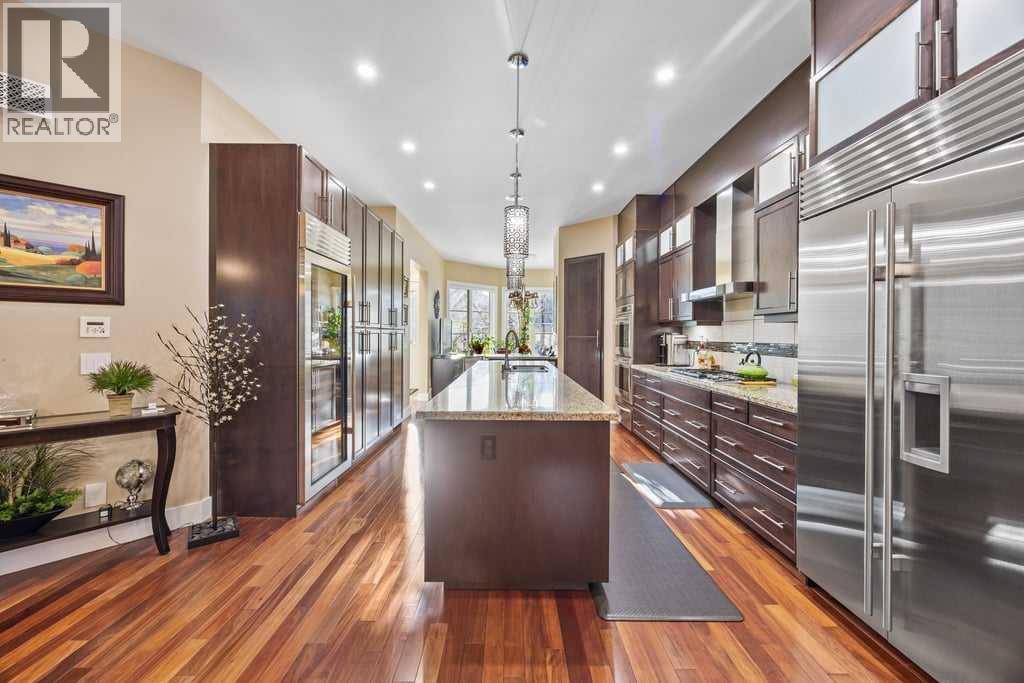 Welcome to an exceptional residence in the prestigious gated community of Sussex Green in Strathcona Park, offering over 5,000 sq ft of total refined living space with 3 bedrooms and 3.5 bathrooms, where luxury, privacy, and an effortless lock-and-leave lifestyle come together.The heart of the home is a luxury, high-end kitchen designed for the discerning chef, complete with premium Sub-Zero, Wolf, and Miele appliances. Highlights include a 48” Sub-Zero refrigerator, 147-bottle dual-zone Sub-Zero wine refrigerator, Wolf double ovens with dual convection, a 36” five-burner gas cooktop (wired for future induction upgrade), 36” hood fan, drawer microwave, Miele dishwasher, and a KitchenAid warming drawer—perfect for entertaining at any scale.The main level showcases 10-foot ceilings, rich tiger wood hardwood floors, and a stunning great room anchored by a fireplace with a Dream Cast surround. Upstairs offers 9-foot ceilings, a spacious media room wired for surround sound, and thoughtfully designed private spaces.The primary suite is a true retreat, featuring a double-sided fireplace, expansive walk-in closet, and a spa-inspired ensuite with upgraded Grohe, Toto, and Kohler fixtures. Enjoy a two-person Bain Ultra thermomasseur tub with heated backs, and a luxurious shower with oversized rain head and handheld fixture.The fully developed basement is designed for relaxation and entertaining, complete with a wet bar, KitchenAid fridge with ice maker, dishwasher, and a dedicated wine cellar with built-in racks. One of three fireplaces adds warmth and ambiance, complemented by hydronic in-floor heating that extends into the heated garage with epoxy floor coating and additional overhead storage.Modern comfort is woven throughout the home with central air conditioning, a new two-stage furnace with UV air filtration, a new combi boiler, whole-home water filtration, and soft water—creating a healthier, more comfortable living environment. A Russound six-zone sound syst em, Hunter Douglas blinds, and Telus PureFibre internet ensure the home is as connected as it is refined.Step outside to a large private patio, ideal for morning coffee, evening wine, or simply enjoying the calm that comes with secure, low-maintenance living.This is more than a home—it’s a place where refined living, everyday comfort, and long-term peace of mind come together beautifully. (id:6769)