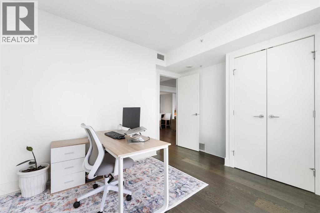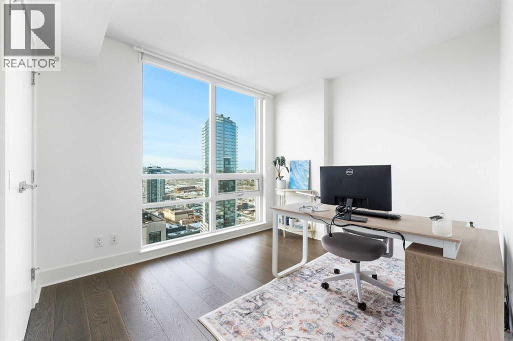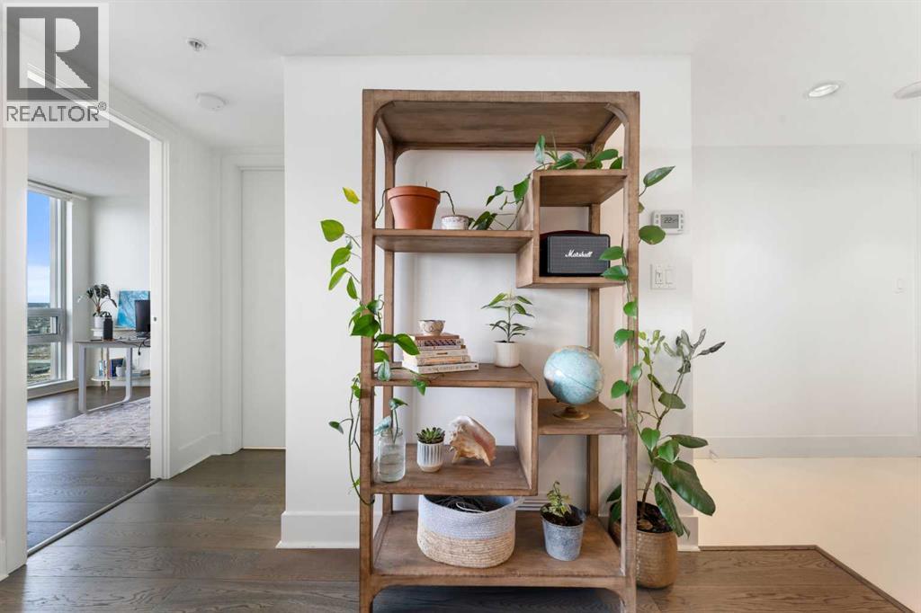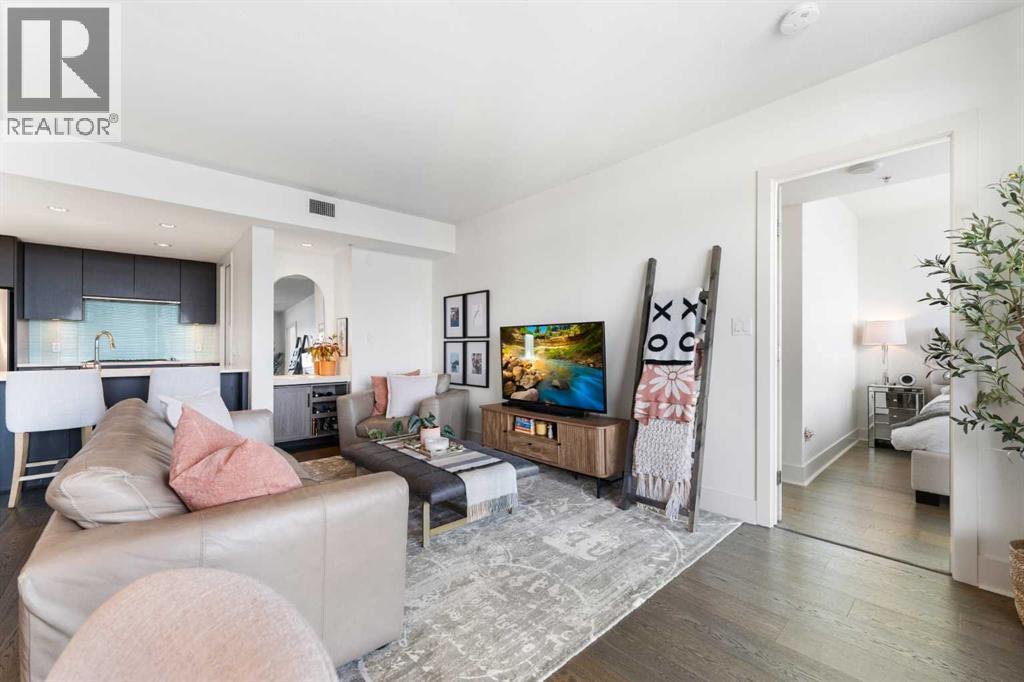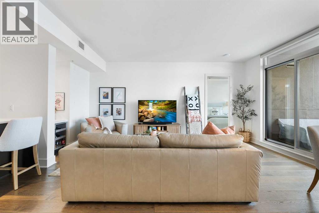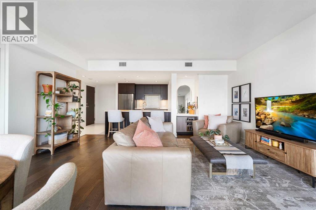 29 storeys above the city, this west-facing sub-penthouse offers a commanding perspective over the Bow River and Rocky Mountains — a front-row seat to Calgary’s most breathtaking sunsets.This bright and beautifully laid-out two-bedroom, two-bathroom residence features a functional split-bedroom design, ideal for professionals, guests, or those working from home. A generous entryway welcomes you into an open-concept living space where the kitchen, dining, and living areas flow seamlessly together — all positioned to fully capture the view.The gourmet kitchen overlooks the main living area and offers excellent storage, a large pantry, and a dining space comfortably seating six. The living room is thoughtfully designed with room for a built-in desk or coffee bar — perfect for modern city living.The primary suite is a private retreat with a walk-in closet and a spa-inspired ensuite featuring dual vanities and a deep soaker tub. The second bedroom is well-proportioned with generous closet space and easy access to the second full bathroom.Floor-to-ceiling windows and hardwood flooring throughout enhance the natural light and elevate the space, while in-suite laundry and air conditioning add everyday comfort. Step outside through double sliding doors to your private patio — the ideal place to unwind and enjoy Calgary’s most dramatic sunsets.Included are a titled parking stall on P1 and a separate storage locker.Residents of Luna enjoy concierge and security services, a state-of-the-art fitness centre, yoga studio, steam rooms, owner’s lounge with fireplace and kitchen, pool table, and an expansive outdoor terrace. (id:6769)