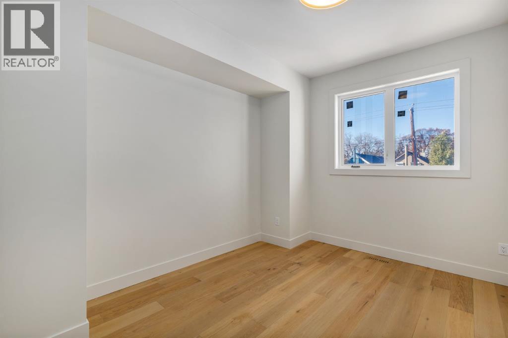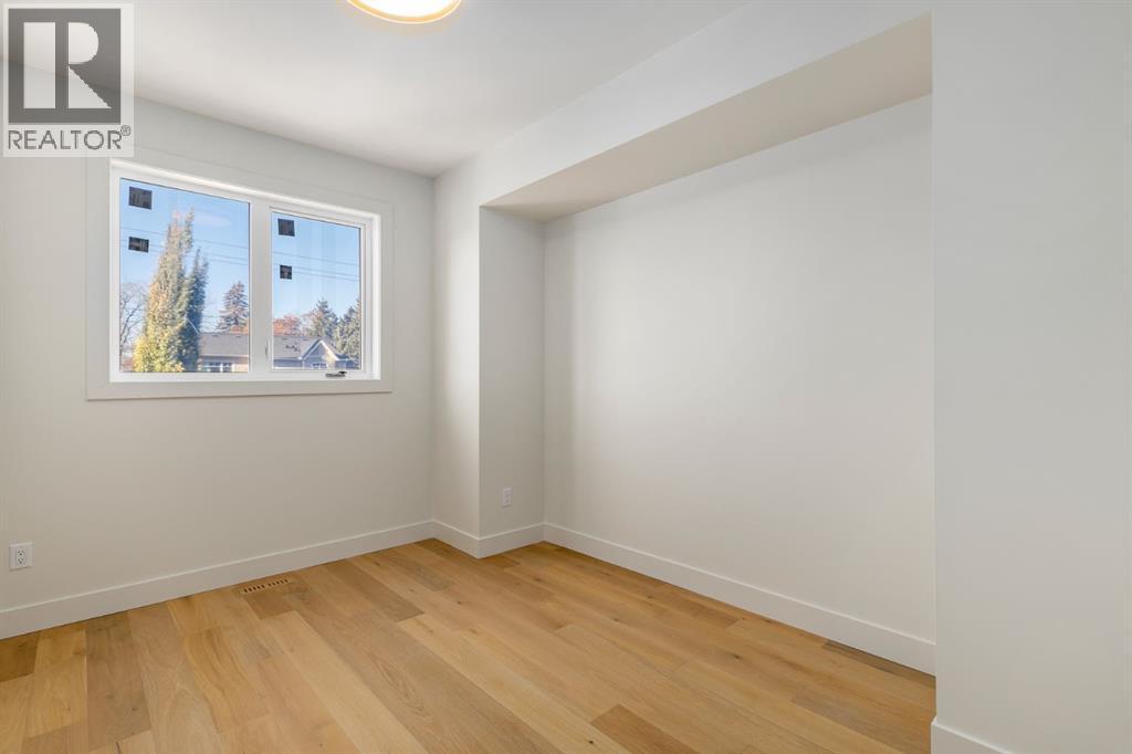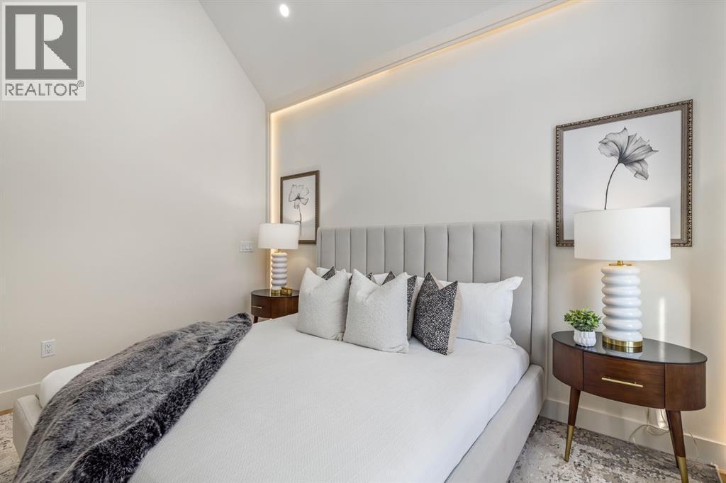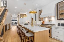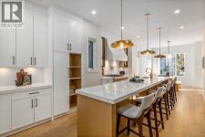 Experience elevated inner-city living with this impeccably designed, brand-new home nestled in one of Calgary’s most sought-after neighbourhoods: Hillhurst. Constructed by a trusted local builder known for craftsmanship, functionality, and aesthetic excellence, this 2-storey residence offers 2,224 SF above grade, with a fully developed basement, 4 bedrooms, and 4.5 bathrooms—a perfect blend of modern luxury and thoughtful detail. From the striking brick facade to the high-end engineered wide plank oak hardwood, every inch of this home exudes quality. The main floor welcomes you with a built-in entry feature and a front formal dining area, accented by elegant wall mouldings, white and gold sconces, and a designer chandelier. At the other end, an open-concept living room is a showstopper, featuring a large-format textured tile fireplace, custom built-ins with display lighting, and massive patio sliders leading to a west-facing, 135-ft deep backyard with a raised patio and gas line—ideal for indoor-outdoor entertaining. The chef’s kitchen is nothing short of stunning, complete with a 2.5" thick quartz island, panel-ready fridge/freezer with knurled handles, sleek quartz countertops, a gas range with pot filler, and backlit display cabinets framing the custom hood fan. You’ll also find a farmhouse sink, full slab backsplash, hidden coffee/appliance nook, built-in pantry, and a drawer-style microwave—each designed to inspire culinary creativity. Tucked behind a barn-style sliding door, the den offers a quiet workspace with a built-in desk, shelving, and bright window. The mudroom, also with a barn door, features tiled flooring, a built-in bench, and a large closet for seamless organization. Upstairs, each of the three spacious bedrooms come with walk-in closets and custom built-ins, along with private ensuites. The primary is sure to impress with vaulted ceilings, a LED-lit feature wall, statement gold light fixture, and a spa-inspired ensuite that boasts a steam shower, dual vanities, and a standalone soaker tub with dramatic black and white tile wall backdrop. A nearby laundry room offers convenience with a sink, folding station, shelving, and tile backsplash. The fully finished, carpeted basement, with 9-ft ceilings, is roughed in for in-floor heating and designed for comfort and versatility—featuring a spacious rec area, a TV wall with built-in components, a wet bar with lit display shelves and tile flooring, a full bath, and a large fourth bedroom with built-ins including a desk. An efficient mechanical room completes the lower level, with additional upgrades including solid core doors and built-in speakers throughout the entire home. Perfectly situated just steps from shops along 14 St NW and walking distance to Kensington Village, Calgary’s extensive river pathways, and the Downtown Core—this is urban luxury at its finest. Act now and make this exceptional Hillhurst property your forever home. (id:6769)