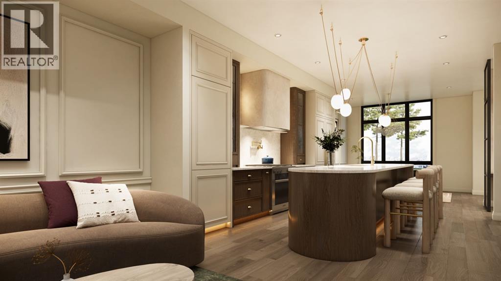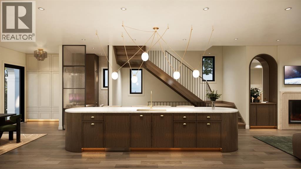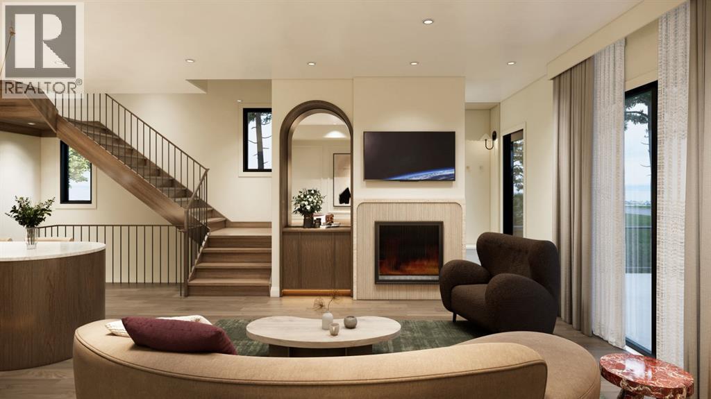 Unit 2 is sold, Unit 1 remaining. Experience elevated inner city living in this exquisite 3 storey infill, offering over 3,580 sq ft of thoughtfully designed space across four levels. Every detail of this semi-detached home reflects exceptional craftsmanship and contemporary elegance, from the wide plank hardwood flooring to the striking custom limewash feature wall in the main-floor office. The open concept main floor features 10 foot ceilings, a formal dining room with custom wainscoting and expansive windows, and a show stopping kitchen with a 12’ island, high-end built-in appliances, quartz countertops, gold and black hardware, and under cabinet lighting. Just off the kitchen, a cleverly tucked away pocket office offers a quiet and functional workspace ideal for remote work or daily planning. The spacious living area is anchored by a designer gas fireplace with full height tile surround and built in millwork, while a generous mudroom with built ins adds practical convenience. Upstairs, discover two luxurious primary suites, each with double vanities, freestanding soaker tubs, and fully tiled showers, along with a bonus room and a full laundry room. Designer details like curated lighting, feature wallpapers, and elegant sconces add elevated character throughout. The third level loft serves as a private retreat, showcasing another expansive primary bedroom with a large walk-in closet, a spa-inspired ensuite, and an additional office with access to a private balcony. The fully developed basement completes the home with a spacious rec room and wet bar, a fourth bedroom, full bath, and a dedicated home gym. Finished with oversized windows, this architectural gem designed by the renowned John Trin, sets a new benchmark for modern luxury in Calgary’s desirable West Hillhurst/Bowness corridor. Situated near parks, schools, the river and amenities. Call today to book your private tour!! (id:6769)