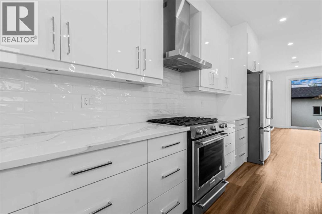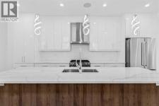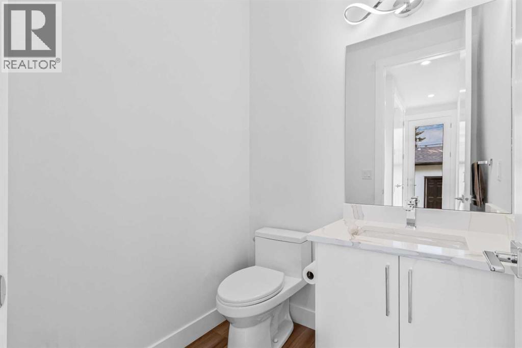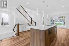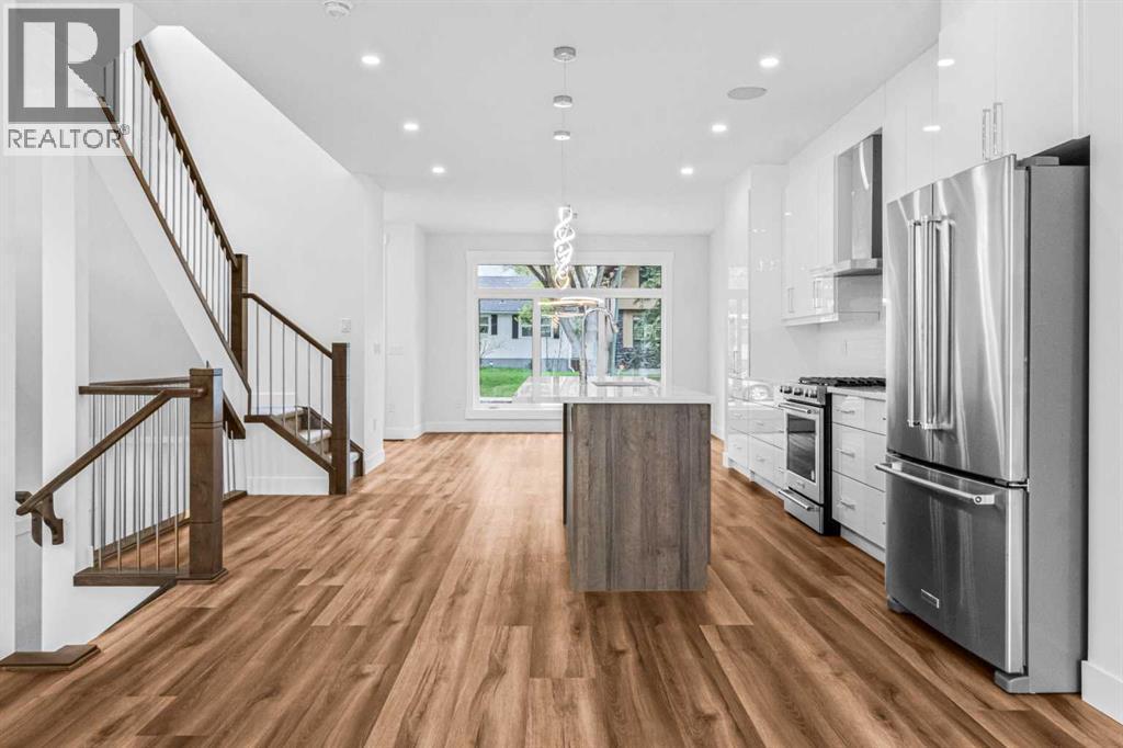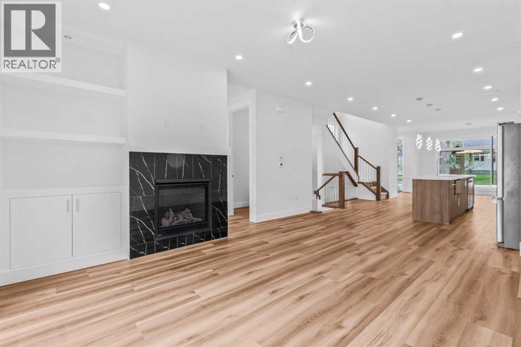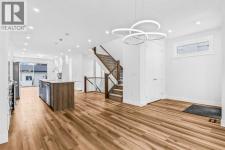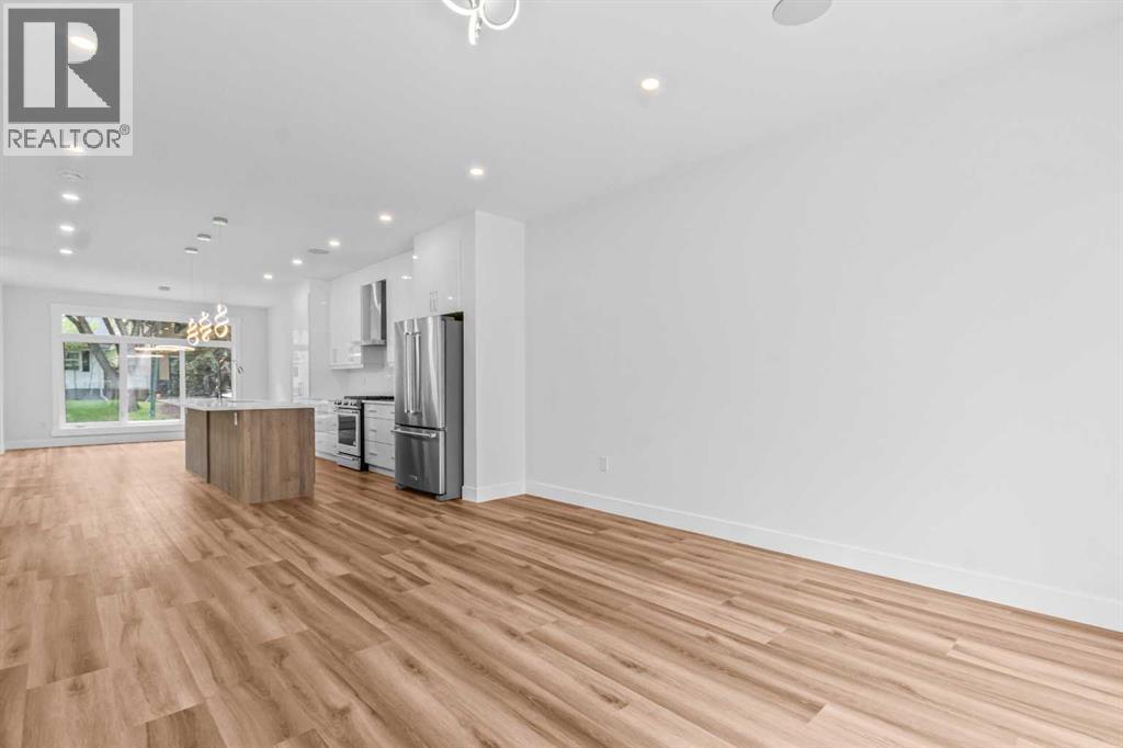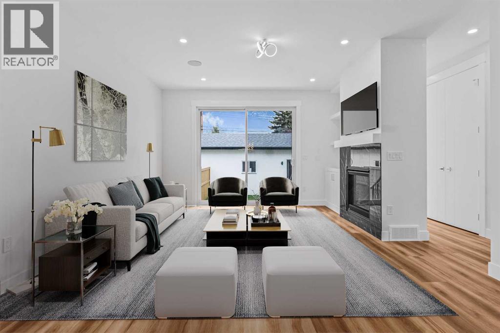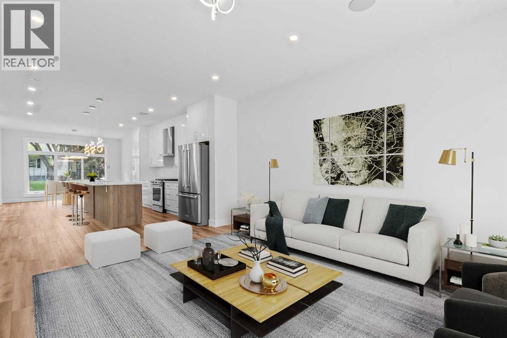 Discover this stunning brand-new semi-detached infill, perfectly blending modern style with classic finishes on a quiet, tree-lined street. With over 2,900 sq ft of living space, this home offers more room than the average semi-detached, making it ideal for a growing family—plus it’s close to top-rated schools & parks. The main floor is flooded with natural light from oversized South facing windows and features an open layout perfect for entertaining. Enjoy the spacious front dining room, a large central kitchen island, and sliding patio doors that connect the rear living room to the backyard. Upstairs, the luxurious primary suite offers vaulted ceilings, beautiful windows, a nearly 100 sq ft walk-in closet, and a spa-like ensuite. Two additional bedrooms, a stylish 4-piece bath, and a convenient laundry room complete the upper level. The finished basement includes a large rec room and a fourth bedroom—ideal as a guest suite, office, or gym. Outside, enjoy a private backyard and double detached garage, all just steps from 4th Street amenities, several parks, schools, and also downtown. Amazing value and quality build! (id:6769)