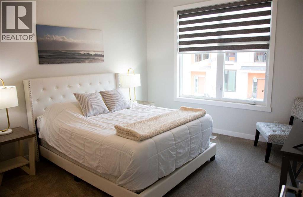 Sun-Filled South-Facing End Unit | Brand-New Furnished 2-Bedroom Townhome (2025 Build)You won’t want to miss this bright, south-facing end-unit townhome, filled with natural sunlight through expansive windows morning and afternoon. Built in 2025 and offered furnished, this exceptional home is ideal for professionals, a small family, or retirees seeking space, comfort, and low-maintenance living.Featuring 9’ ceilings on both floors, this home offers a spacious open-concept layout complemented by modern, upscale finishes. The sunlit main living area showcases quartz countertops, zebra blinds, two generous closets, and a large pantry—perfect for both everyday living and entertaining.Both bedrooms are generously sized, easily accommodating full bedroom furniture with room to spare. The primary bedroom includes a walk-in closet with direct ensuite access, while the second bedroom is equally spacious and flexible—ideal as a guest room/home office, or second bedroom. Second-floor in-suite laundry adds everyday convenience.The modern kitchen is fully equipped with a full-size refrigerator with water and ice dispenser, ideal for contemporary living.Enjoy stress-free living with no exterior maintenance required—snow removal, landscaping, and exterior upkeep are all taken care of, allowing you to simply move in and enjoy.Utilities included:Gas / HeatWaterHigh-Speed InternetParkingParking is conveniently located directly outside the back entrance, with an optional second underground parking stall available.Located in a prime, family-friendly community, this home is directly across from a large park, close to schools, shopping, and transit, and within walking distance to a new plaza currently under construction, including Tim Hortons and additional amenities. Commuters will appreciate the approximately 7-minute bus ride to the train station, offering quick and easy access to the rest of the city.One well-behaved pet permittedA rare opportunity to lease a brand-new, south-facing, furnished townhome with spacious bedrooms, no exterior maintenance, exceptional inclusions, and an unbeatable location.Contact today to arrange your private viewing. (id:6769)