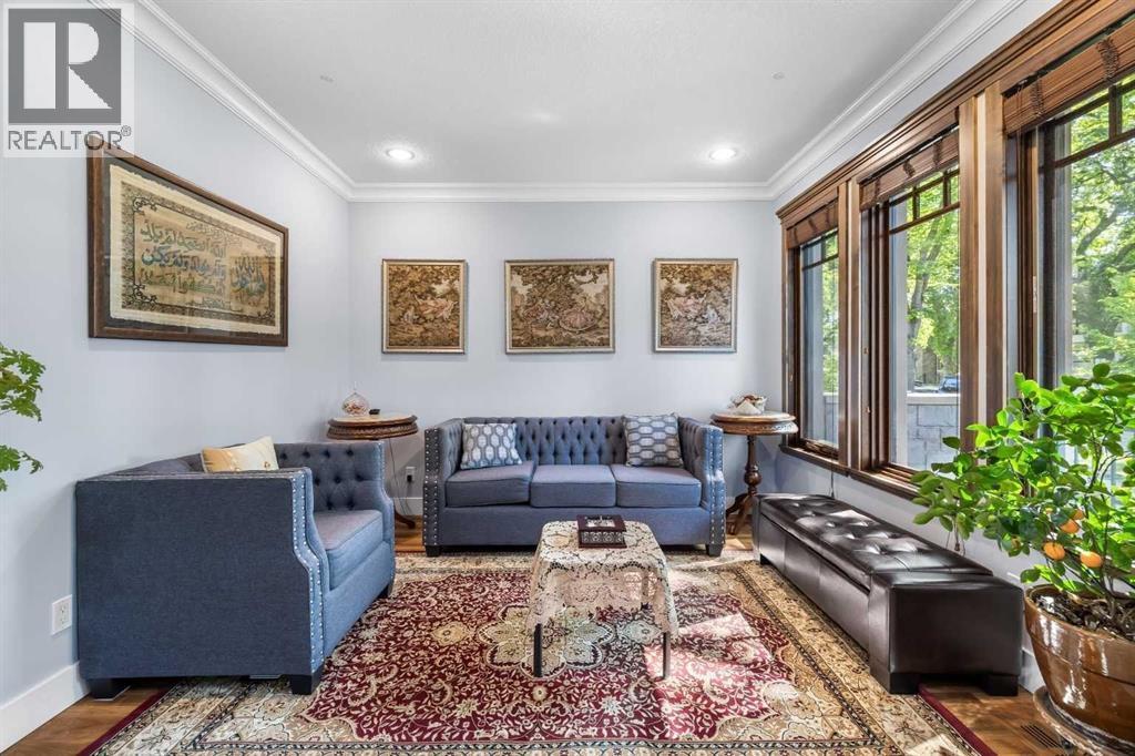 Welcome to the vibrant inner-city community of Crescent Heights! This stunning modern-style home spans nearly 3,000 square feet, seamlessly blending luxurious living with the convenience of urban amenities and nature at your doorstep. Custom-built by a renowned builder in Calgary with over 50 years of experience, this residence is a testament to meticulous craftsmanship and attention to detail. Nestled on a charming tree-lined street, the home is conveniently close to Rotary Park, Princess Island Park, and downtown. This exquisite property features high-end finishes across three levels. The main floor boasts a spacious living room and a gourmet kitchen, complete with maple cabinets, granite countertops, and elegant walnut flooring. Turkish Travertine stone flooring with in-floor heating enhances both the main and upper floors, while solid core Brazilian wood interior doors add an extra touch of sophistication. The oversized kitchen overlooks a large dining area and a cozy family room, separated by a three-way stone-facing fireplace and large Coussin windows that flood the home with natural light. Upstairs, the master suite includes a generous walk-in closet with organizers and a luxurious five-piece ensuite. This ensuite features Turkish Travertine stone flooring, in-floor heating with its own thermostat, his and her sinks, a stand-up shower with a concrete and tile base, and a jet tub. Additionally, two spacious bedrooms and a convenient laundry room are located on this level. The spacious basement offers a massive recreation room with a built-in wall unit and a wet bar, perfect for entertaining. It also features in-floor heating, an additional bedroom, and a full bath with a five-foot poured concrete and tiled shower base and surround. Designed for low maintenance, the exterior showcases attractive acrylic stucco, sandstone pillars, stamped concrete walkways and patio, and a double garage. Don't miss the opportunity to experience this incredible home – book your a ppointment today! (id:6769)