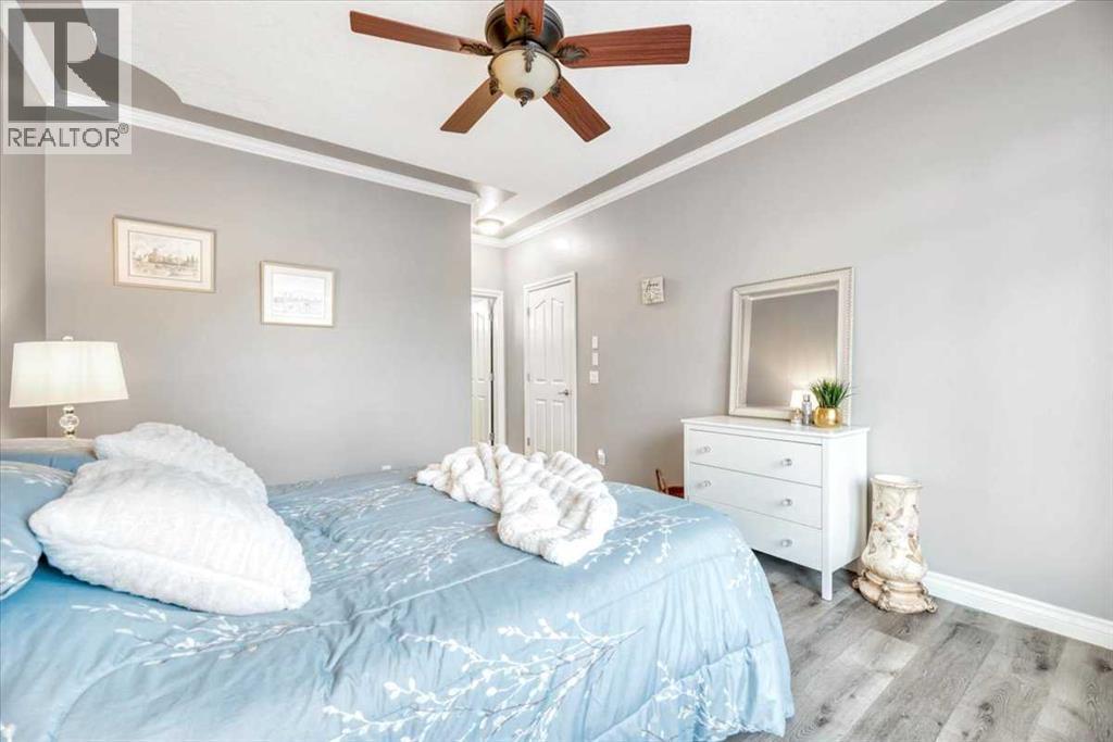 Welcome to Discovery Woods Villas! The peaceful and serene community that is surrounded by trees, walking paths and just minutes from Griffith Woods Park. This beautifully and tastefully updated and air-conditioned home is sure to impress any discerning buyer. As you enter the foyer, notice the high ceilings, vinyl plank flooring and spacious kitchen and dining area. The kitchen has ALL NEW APPLIANCES, granite countertops, tile flooring, updated and modern lighting above the breakfast bar, a pantry, and a patio to enjoy your morning coffee. Through the hallway is your main floor laundry and a nice size office with French doors. The living room has a cozy gas fireplace with a stylish mantel and allows for access to a second balcony on the main floor equipped with a gas hook-up. Make your way past the powder room (don’t miss the stylish wall treatment!) to the large primary bedroom with a walk-in closet, and updated ensuite with a walk-in shower. The fully finished lower level provides access to your double car garage and utility room with a newer hot water tank. There is also a family room with a second gas fireplace and WALK-OUT access to the patio and grass area. Down the hall is a full bathroom and second, generously sized bedroom. The added benefit of the walk-out lot is the huge windows in the family room and the bedroom. The location of this unit is truly perfect as the back patios face the green space where you are sheltered from any traffic noise. Discovery Woods Villas is a well-managed and well-maintained complex. There is no shortage of adventures to be had through the walking paths to gorgeous Griffith Woods Park and the Elbow River! Shopping and commuting are a breeze with easy access to Stoney Trail and Glenmore Trail. This home is not to be missed! (id:6769)