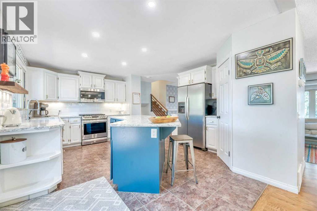 Welcome to this stunning split level home showcasing timeless brick curb appeal and a private, treed backyard that’s beautifully landscaped for both relaxation and entertaining. Step inside and you’ll find modern touches throughout—sleek lighting, contemporary railings, and a perfect mix of hardwood and tile floors. The bright white kitchen is a chef’s dream, featuring an island with granite countertops, a gas stove, and seamless flow into the dining area—perfect for family meals or hosting friends. At the front of the home, the living room offers a warm, welcoming space to gather.Upstairs, you’ll find three spacious bedrooms, including the primary suite with a walk-in closet and a stylishly updated 3-piece ensuite. A 3-piece main bath completes this level. The third level expands your living space with a large family room, a 3-piece bath, and a convenient mudroom. The finished basement adds even more flexibility with an additional bedroom and rec room. With its combination of charm, function, and plenty of room for everyone, this home is ready to welcome its next family. This home is situated an a huge lot with front yard views of a beautiful green space and park- gorgeous sunsets and Mountain Views in the morning! The maintenance free exterior offers peace of mind to a buyer and showcases the thougtfulness put into the design of the home! If you are looking for space to raise a family, enjoy all that Strathmore has to offer Call this one your! Amazing access to schools, shopping, pathways, parks- this one is a MUST SEE! (id:6769)