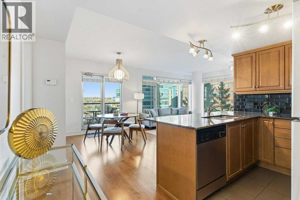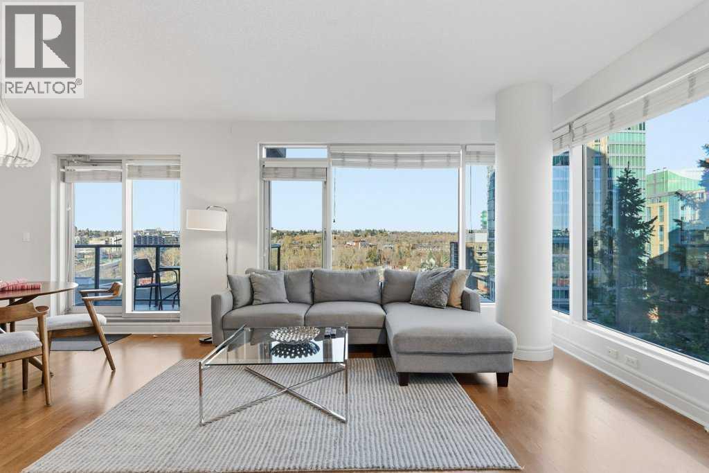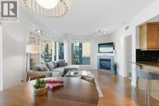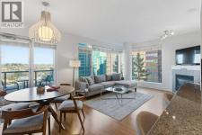 Urban Living at Its Best — Fully Furnished Executive Suite at Five West II. Unit can also be purchased without furniture. Experience luxury downtown living without the luxury price tag. This stylish, fully furnished 8th-floor executive suite in Five West Phase II delivers unbeatable river and city views — including the Bow River, Peace Bridge, and Kensington — by day and by night. The smart open-concept layout is designed for real life in the city. Host friends comfortably, work from home, or enjoy a cozy night in front of the gas fireplace with your favorite wine. Floor-to-ceiling windows flood the living and dining area with natural light, highlighting the sleek kitchen featuring Legacy cabinetry, granite counters, and stainless steel appliances. The spacious primary suite offers room for a king-size bed, a walk-in closet, and a private ensuite with modern finishing. A generous second bedroom with a cheater ensuite is perfect for guests or a home office. You’ll love the thoughtful extras too — front entry work-nook or storage option, in-suite laundry, air conditioning, and laminate flooring throughout. Titled underground heated parking + storage locker. Five West II brings elevated amenities to your doorstep, including a residents’ lounge with billiards and full kitchen, outdoor terrace, car wash bay, and full-time concierge service. Step outside and you’re moments from the Bow River pathways, Prince’s Island Park, top-tier dining, boutique shopping, transit, and downtown energy. This turnkey suite shows beautifully and offers the ultimate downtown lifestyle — views, convenience, comfort, and sophistication. Move in and start living your best city life. (id:6769)