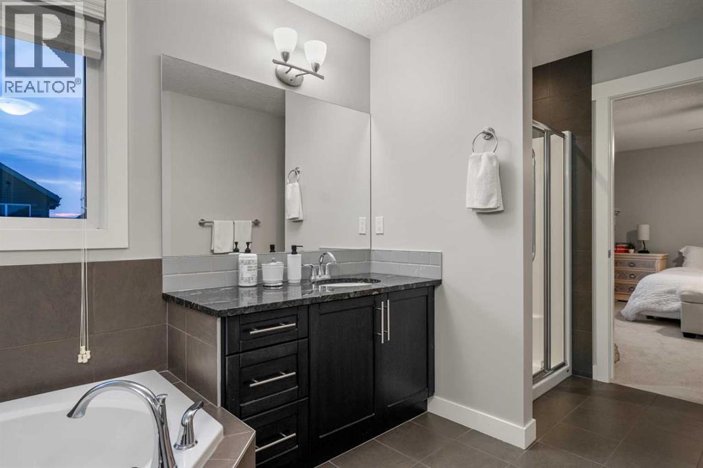 *OPEN HOUSE SAT JAN 17 & SUN JAN 18, 1–3 PM* An exceptional opportunity to live on one of the most coveted streets in Bayside, Airdrie’s premier canal community. This beautifully maintained 2,235 sq ft detached two-storey offers outstanding curb appeal with stone accents, cedar-shingle detailing, a classic covered front porch, exterior smart lighting and a long driveway leading to the extra-wide, double attached garage.Step inside to a grand vaulted foyer with transom windows, a winding staircase with wrought-iron spindles, and a statement chandelier that creates an impressive first impression. A convenient main-floor office with French doors provides a perfect workspace or an easy option for a main-floor bedroom.The open-concept living area is warm and elegant, featuring a massive formal dining space that leads to the outdoor living area and a vaulted-ceiling living room centered around a gas fireplace flanked by built-in shelving and framed by corner picture windows overlooking the sunny south-facing backyard.Come home to enjoy a grand kitchen with rich cabinetry, granite countertops, stainless steel appliances, a large island with sink, undermount lighting, and classic subway tile backsplash. A walk-through pantry connects seamlessly to the laundry and mudroom area, with a well-situated guest bath for excellent daily function.Upstairs, brand-new carpet leads to a spacious bonus room with large windows that overlook the foyer, creating a bright and open feel. The primary suite is a true retreat with a spacious vanity topped in granite, a charming makeup station, a corner soaker tub, and walk-in shower. Two additional king-sized bedrooms share a full bathroom with matching finishes.The basement offers a head start with framing begun, the bathroom started - ideal for future development.Outside, enjoy the oversized lot with a pergola-covered upper deck and a large lower deck perfect for outdoor dining, entertaining, or relaxing in the south sun. Bayside C ircle is surrounded by the community’s renowned canal system, offering pathways, water activities, skating, and hockey right at your doorstep.Additional features include gleaming hardwood floors on the main floor, fresh paint throughout, new carpet upstairs, and smart exterior lighting. This home is close to schools, shopping, and amenities yet perfectly tucked away on a quiet, prestigious street. A true Bayside gem—simply move in and enjoy. Call for a private showing today. (id:6769)