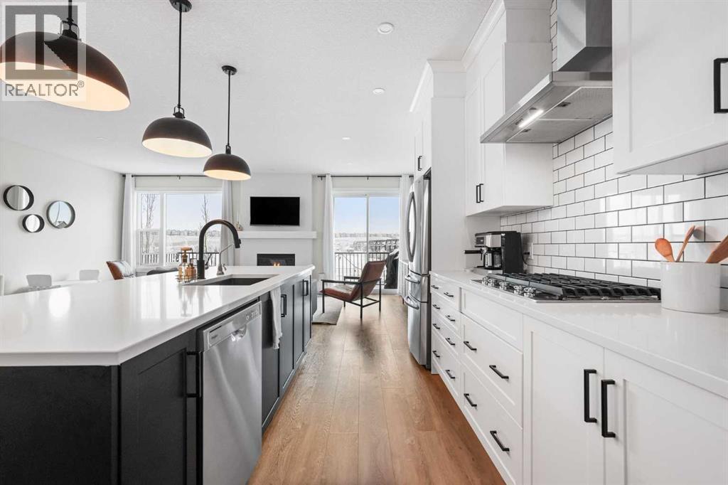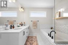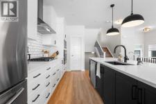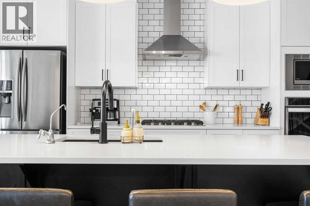 Welcome to this beautifully designed 4-level split offering 2,163 sq. ft. above grade plus a fully developed 710 sq. ft. walkout basement, perfectly located on a quiet half cul-de-sac—an ideal setting for families.The open-concept main floor is bright and inviting, featuring a high-end kitchen with quality finishes and excellent flow for everyday living and entertaining. Just up a level, the stunning bonus room showcases a dramatic vaulted ceiling and an elegant built-in bookshelf, creating a warm and functional space for relaxing or gathering.The upper level hosts three spacious bedrooms, including the primary retreat complete with a walk-in closet and a well-appointed ensuite featuring double sinks. A standout large walk-in laundry room with custom built-ins adds both luxury and convenience to daily living.The walkout basement is fully developed and incredibly versatile, offering a fourth bedroom, full bathroom, private office, and a large recreation room—perfect for guests, a home workspace, or additional family living space.Situated on a quiet, family-friendly street, this home is ideal for children and offers unbeatable access to shopping, amenities, and major routes including the ring road. A rare combination of space, design, and location—this home truly has it all. (id:6769)