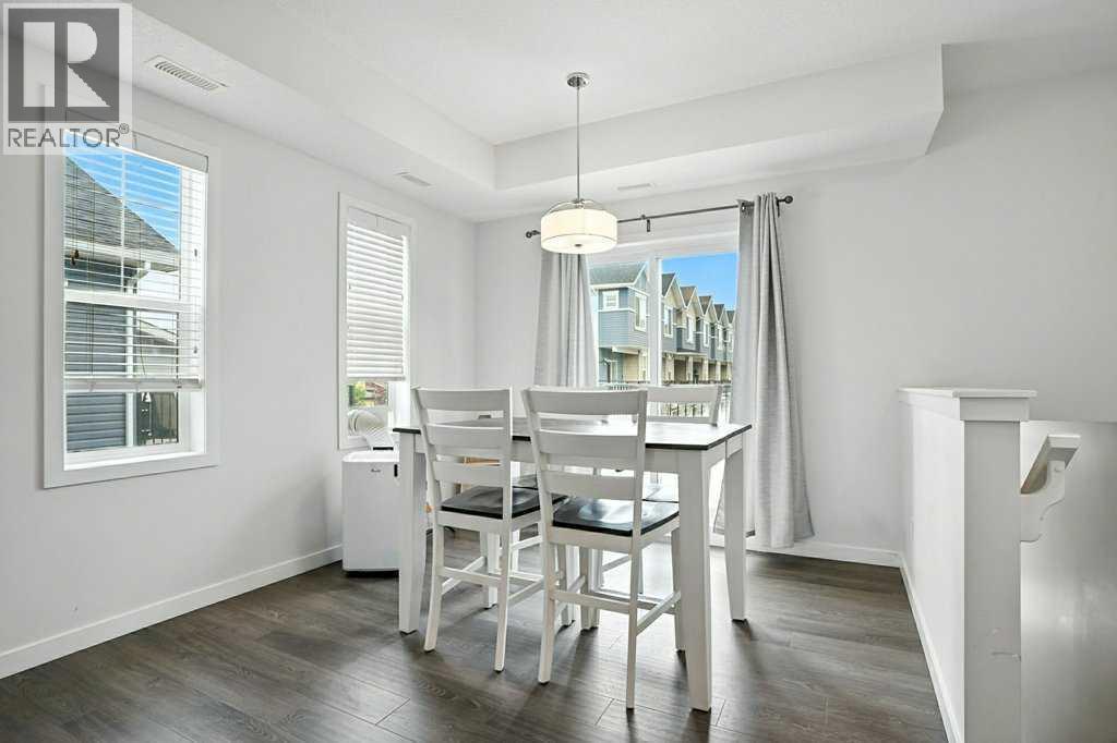 Welcome to this beautifully appointed 2-bedroom, 1-bathroom raised townhome in the vibrant community of the Canals. Offering a thoughtful layout with 9 ft knockdown ceilings and an abundance of natural light, this home feels open and inviting from the moment you step inside. The bright kitchen is designed with both style and function in mind, featuring quartz countertops, stainless steel appliances, ample cabinet space for storage, and modern pendant lighting over the island. The dining area is perfectly positioned beside large windows, creating a warm and welcoming space for everyday meals or entertaining guests. The spacious living and dining areas flow seamlessly onto a huge elevated deck, providing plenty of room for relaxing outdoors, enjoying summer barbecues, or simply taking in the fresh air. Both bedrooms are generously sized with easy access to the well-appointed 4-piece bathroom. Additional highlights include laminate flooring throughout, a modern colour palette, and an overall design that blends comfort with convenience. The ground floor features a welcoming foyer and a single attached garage. Very well maintained condo complex, beautifully maintained grounds & landscaping and visitor parking throughout the complex. Located in one of Airdrie’s most sought-after communities, this property is within walking distance to schools, soccer fields, churches, and picturesque ponds. Whether you’re a first-time buyer, downsizing, or looking for a smart investment, this home offers excellent value in a prime location with easy access to amenities, parks, and pathways. Don’t wait, call your favourite realtor and book a showing today! (id:6769)