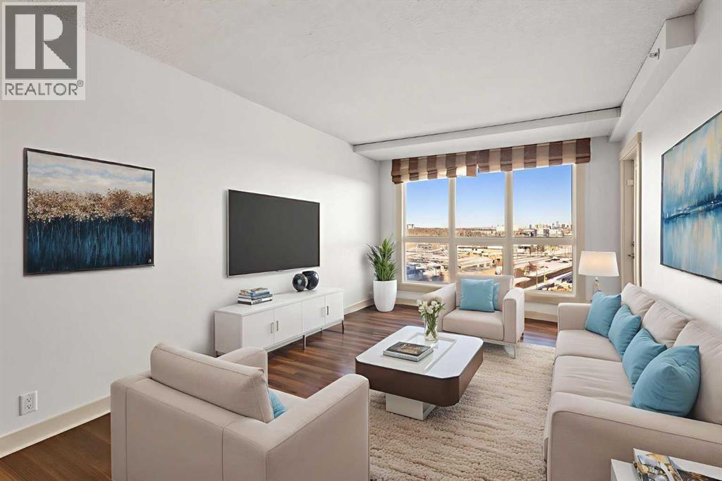 Designed for effortless daily living, this north-facing 10th-floor condo combines skyline views with immediate access to transit and on-site amenities. Featuring 9-foot ceilings, an open-concept layout, freshly painted interiors, and expansive windows, this home feels bright, modern, and move-in ready. The kitchen is designed for both everyday living and entertaining with maple cabinetry, sleek upper storage, black appliances, a brand-new refrigerator (2025), modern fixtures, and a generous breakfast bar anchoring the living space. The bright living room flows seamlessly to a cozy balcony where you can enjoy breathtaking downtown and mountain vistas while grilling on the natural gas hookup, perfect for summer barbecues and year-round enjoyment. The primary bedroom offers comfortable accommodation while the versatile den provides the perfect space for a home office or guest room, plus the convenience of in-suite laundry with a new stacked washer and dryer (2024) simplifies everyday chores. This pet-friendly, professionally managed building offers 24-hour security, heated underground parking, three high-speed elevators, a party room, a modern lobby with updated furniture, a sunroom on the 17th floor, and a serene rooftop garden where panoramic downtown views create the perfect backdrop for relaxation. One of the building’s standout features is direct heated underground access to Save-On-Foods and the Shops at Heritage, along with a pedestrian bridge providing a short walk to the Heritage LRT Station for quick downtown access. For outdoor enthusiasts, nearby bike trails, Glenmore Reservoir, Fish Creek Park, and numerous green spaces offer endless recreation options. Whether you're a first-time buyer, investor, or young professional seeking low-maintenance urban living, this exceptional home delivers comfort, convenience, and style in one of Calgary's most connected neighborhoods. Don't miss this opportunity to make this your new home! (id:6769)