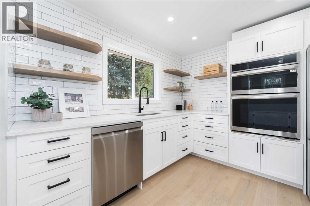 **OPEN HOUSE- SATURDAY NOV 22 - 2-4PM**Welcome to this beautiful, newly renovated 4-bedroom, 3.5-bath bungalow in the heart of Canyon Meadows, where timeless design meets modern luxury. Every inch of this home has been thoughtfully updated inside and out—including the wiring, plumbing, hvac, and the beautiful, low-maintenance landscaping—creating a move-in-ready retreat on a quiet cul-de-sac in one of southwest Calgary’s most established communities. Step inside and immediately feel at home in the bright, open-concept main living area. The foyer features a built-in bench and stylish tile flooring, setting a welcoming tone that flows into the spacious living room, complete with a sleek gas fireplace and rich hardwood flooring throughout the main level. The kitchen is a showstopper, designed for both function and style with an abundance of cabinetry, quartz countertops, wall oven, and a massive central island with a cooktop and separate prep/veggie sink—perfect for entertaining or everyday family life. Two bedrooms on the main level include a luxurious primary suite, featuring a spa-inspired ensuite with a freestanding soaker tub, walk-in shower with rainhead, and custom walk-in closet with built-ins. The second bedroom includes a built-in armoire, making it ideal as a guest room or home office. A main-floor laundry room adds everyday convenience. The fully finished basement expands your living space with a huge open recreation area, a wet bar, and two additional large bedrooms, each with custom closets. This level also features two bathrooms—a convenient 2-piece powder room and a 3-piece bath with a walk-in shower—making it perfect for family and guests alike. Outside, the attention to detail continues. The yard is fully landscaped with easy-care design, built-in planters, and a large deck for outdoor dining and relaxation. The oversized double detached garage provides plenty of room for vehicles, storage, or a workshop, while the shared extra-long driveway offers ad ditional parking space. Canyon Meadows is a sought-after community known for its mature trees, beautiful mountain views, and strong sense of community. You’re close to Canyon Meadows Golf and Country Club, Fish Creek Park, and a wide range of schools, shops, and amenities. With quick access to major routes and public transit, it’s easy to get wherever you need to go—while still enjoying the peaceful charm of this established southwest neighbourhood. Elegant, functional, and move-in ready—this home perfectly combines modern comfort with the warmth of a mature Calgary community. (id:6769)