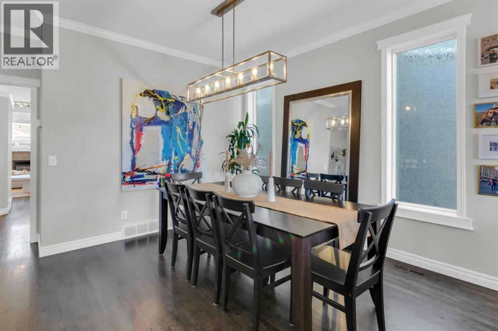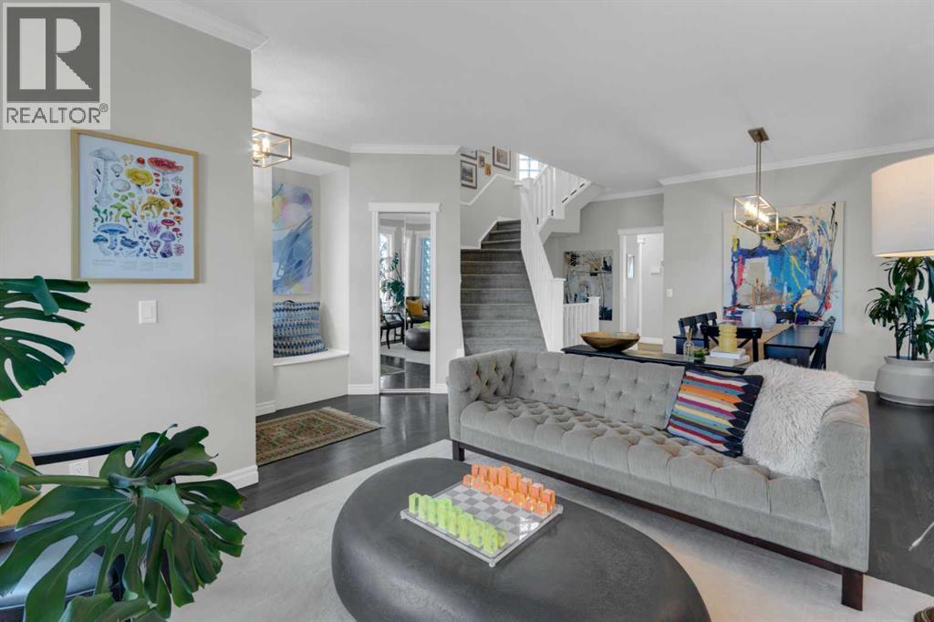 Walking up to the house you'll find a durable composite inviting porch where you can sip your morning coffee, or see view of downtown in the distance and watch the Calgary Stampede, Canada Day and New Year's Eve annual fireworks at night. This unique inner core home is just a 10 minute drive from downtown, 5 minute walk from restaurants and more on 4th street, and a 5 minute walk just two blocks up to a gorgeous ridge with pathways with Elbow river access overlooking Stanley park. Also in walking distance is the off leash Roxboro dog park.Once stepping inside the home, you are greeted by an open-concept living and dining area featuring soaring 9 ft ceilings, elegant crown moldings, and site-finished oak hardwood floors. The timeless chef’s kitchen is a focal point, finished with premium granite countertops, stainless steel appliances and a new Bosch dishwasher. In the kitchen you'll find a custom eating bar perfect for morning coffee or evening entertaining. Underneath the custom bar are six large drawers perfect for concealed but stylish storage. All kitchen handles on cabinets and drawers are new, elevating gold additions from Banbury Lane. Relax in the adjacent family room with a wall of large, bright windows anchored by a cozy fireplace for those chilly Calgary nights. Your upper level is a sanctuary. You ascend to the second floor on a vaulted staircase to find three well-sized bedrooms. Each bedroom has new black-out-blinds put in and two of these rooms feature dramatic vaulted ceilings as you'll find in the beautiful primary bedroom, creating the feelings of airy, expansive peace. The primary ensuite is a true private retreat, with it's expansive arched window bringing the outside in, while also boasting a walk-in-closet, a dual vanity and a deep jetted tub—the perfect place to unwind.The fully finished basement adds significant living space, with a large recreation roomwith baseboard heating and a fireplace making it ideal for home theatre movie nights or gymor home office time. Ithere's a 4th bedroom for guests and a luxurious 3-piece bathroom with a built-in steam shower! Ample storage throughout ensures everything has its place. Outdoor living & extras! Enjoy long summer evenings in your private, West-facing courtyard-style backyard with string lights along the perimeter. The double garage has built in shelves for storage and more strings light for those summer Ping-Pong nights. Modern comforts are fully accounted for, including central air conditioning for peak summer comfort and a humidifier for the dry winters. Simply put, it is rare to find a detached home of this caliber, offering this much square footage and luxury, so close to the river,and so many walkable downtown trendy spots at this price point. (id:6769)