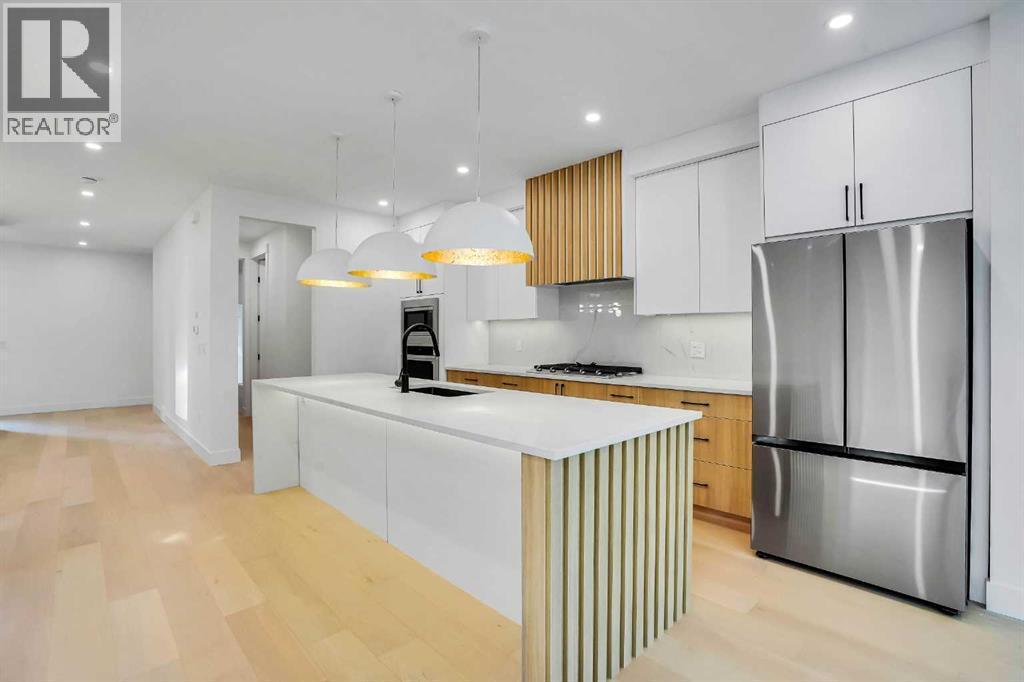 Welcome to this masterfully crafted semi-detached residence in the heart of Winston Heights, offering over 3,300 sq.ft. of sophisticated living space. The main floor immediately impresses with an expansive, sun-drenched open-concept design featuring 10-foot ceilings and wide-plank hardwood floors that lead into a gourmet chef’s kitchen anchored by a massive quartz social island. This sense of scale continues to the second floor, a truly versatile hub featuring a vaulted bonus lounge with a wet bar. The crown jewel is the primary suite, boasting a private south-facing balcony and a cozy deck equipped with a gas line for your fire pit—the perfect spot for evening relaxation. The home’s functionality is rounded out by a fully developed basement, ideal for a theatre or guest wing, providing a total of four spacious bedrooms. Beyond the property line, the location is truly premier: you are just a half-block from the Winston Golf Club, currently undergoing a prestigious "Coming Soon" major course and clubhouse renovation. This vibrant lifestyle is further enhanced by the Winston Heights-Mountview Community Association, located just steps away with its community gardens, winter ice rink, and year-round programming, all while being within easy walking distance to top-tier schools and expansive local parks. (id:6769)