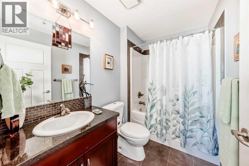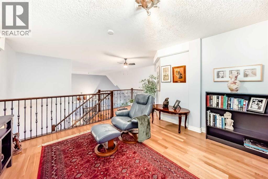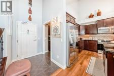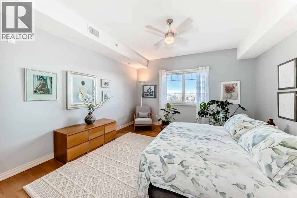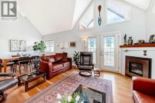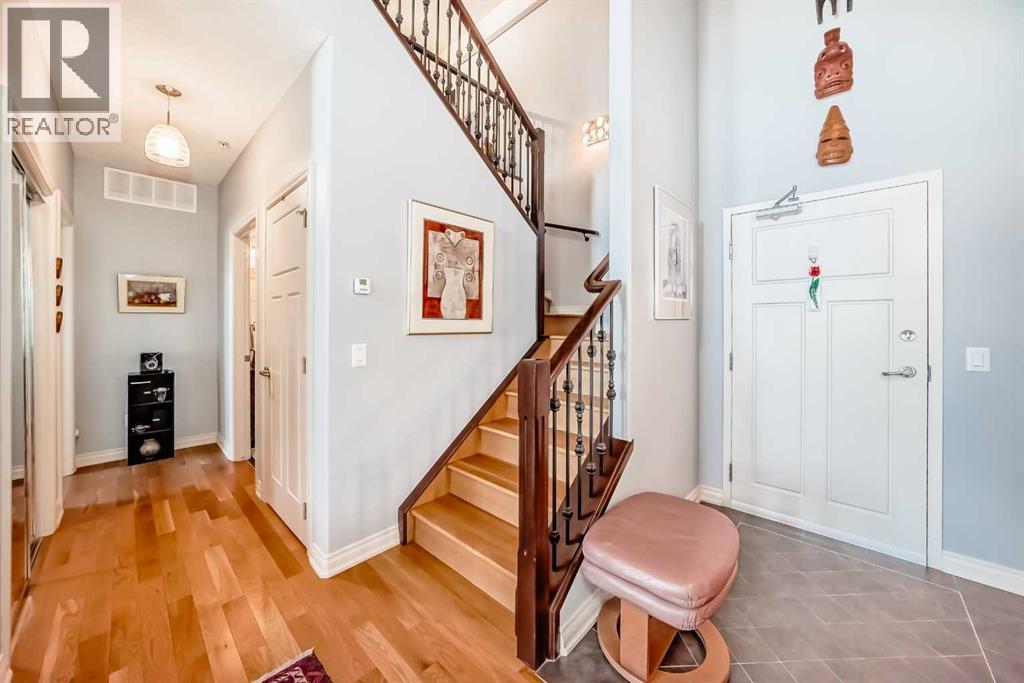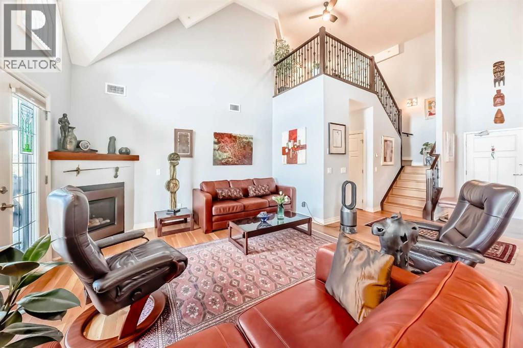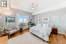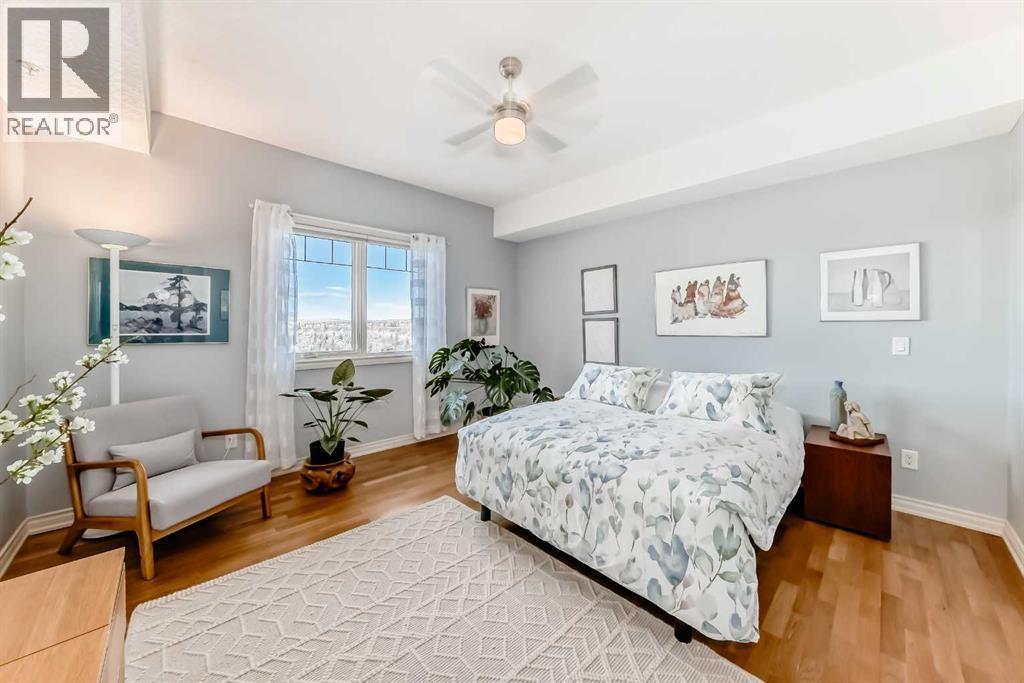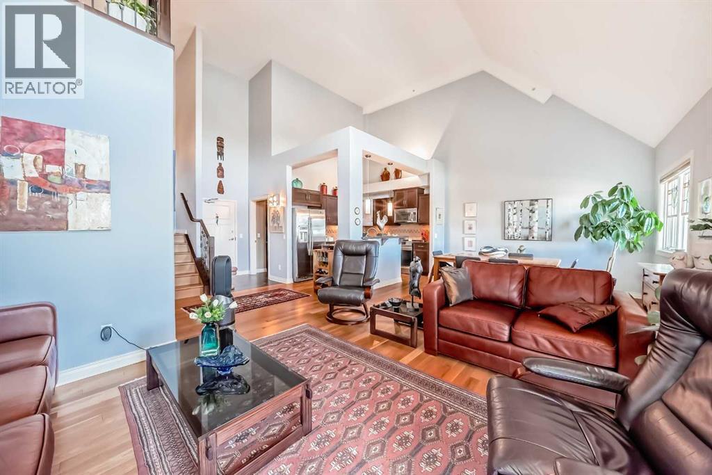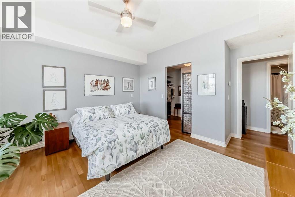TOP FLOOR ~ WEST Facing with Mountain View~ Incredibly well taken care of with classic style. This 1 bedroom 2 bath condo with LOFT is beautiful. The additions added throughout the years make it simply stylish from the Hardwood Flooring throughout, Refaced Gas Fireplace, ( one of only two in the entire building) and classic paint colour. As you enter notice the Soaring Vaulted ceilings with windows that let in so much light, Tastefully designed kitchen with SS appliances, Breakfast Bar and a perfect cooking space. Ample dining area with the sit up breakfast bar makes for a great entertaining space. The living room with gas fireplace, and garden doors to the west facing balcony is a wonderful size. Up the stairs to the LOFT adds more living space for whatever you desire ~ TV room, Office, Guest bedroom, Library...... Back down the hall there is a closet, 4 piece main bath, and the Master Bedroom with walk through closet and 5 piece en suite. Love this tub shower combo. Heading out the garden doors to the deck there is a gas line for a BBQ and storage room which has been drywalled and wired with a light and plug in. Some have added a small chest freezer into this space. Perfect fit! The view from the balcony looks onto a forested area and greenspace and there is a mountain view. Stay warm in the winter months with in floor heating and in the SUMMER you have CENTRAL AIR to keep you COOL! This condo comes with 1 TITLED parking stall and there is unassigned parking outside the building that come with plug ins for winter. LOFTS on the BOW is a beautiful HIGHER end 55+ condo complex in Cochrane with a Mountain feel. There are 13 different common areas throughout the building including, Banquet Room and Kitchen, Pool table area, Fireplace Lounge, 7000 sq ft Courtyard with Fireplace and BBQ, Fitness Room, Library, 2 guest suites and more. Across from Lofts are pathways that lead to the Bow River and over to the shops. Easy access to the 22 and out to the Mountains or he ading into Calgary. Always a sought after building View this property TODAY and live here TOMMORROW! (id:6769)