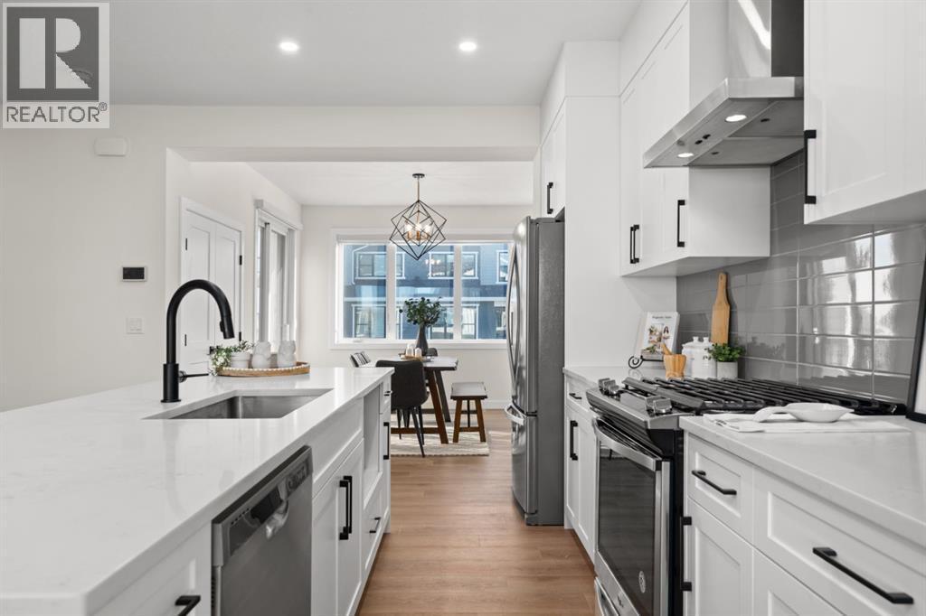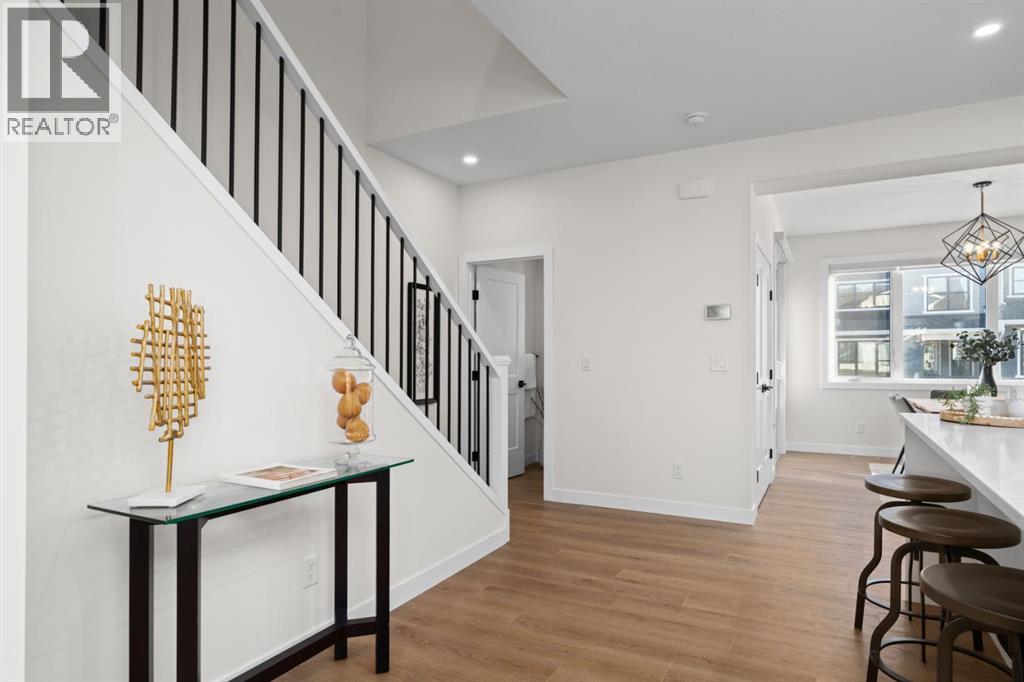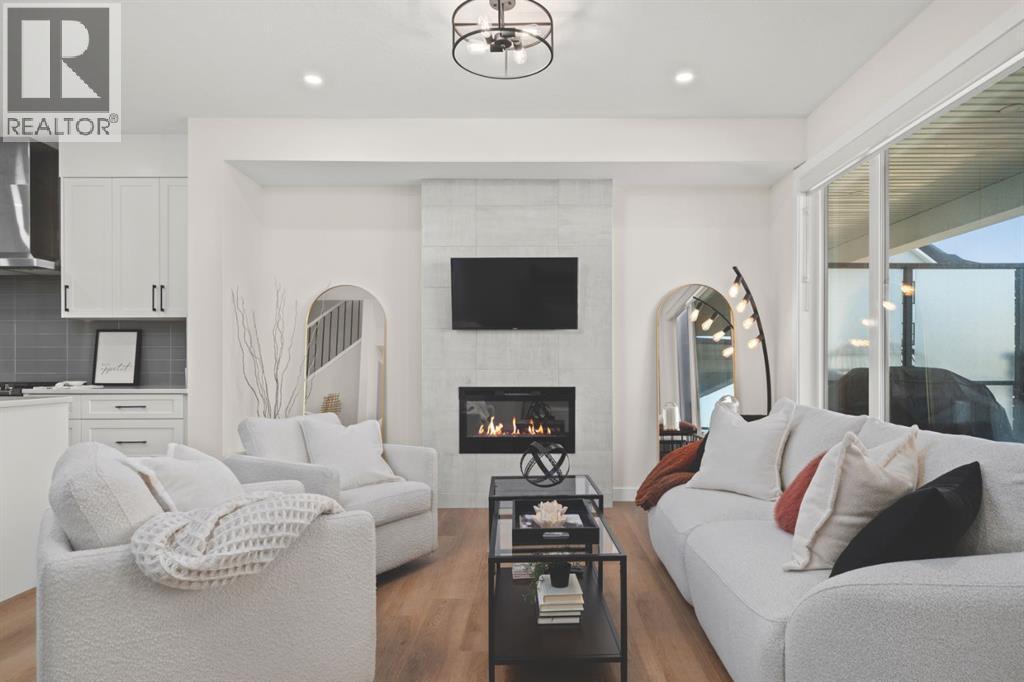 Tucked away in the sought-after community of Crestmont, this exceptional 2,050+sqft townhome with numerous upgrades offers a rare combination of privacy and beautiful views. Looking onto a tranquil pond with uninterrupted mountain views, this home delivers front-row seats to golden prairie sunsets and ever-changing skies. With no unit attached to the back - a rarity within the complex - the sense of openness and connection to nature is truly special. A charming front porch welcomes you home, while 2 balconies allow you to enjoy the views at different times of day - from peaceful morning coffee to evenings spent watching the sun dip behind the Rockies. The oversized single garage offers ample room for storage, bikes, and outdoor gear, supporting an active lifestyle. The entry level features a large and versatile recreation room, ideal for movie nights, a home gym, or a flexible family space. This level also offers direct outdoor access, allowing guests to conveniently park nearby and enter the home with ease. Just steps from your door are parks, pathways, and the pond, perfect for dog owners and nature lovers. The main floor is a standout, designed to maximize both functionality and the spectacular setting. The spacious living room is anchored by a sleek fireplace (upgrade) and opens onto a large covered deck with sweeping mountain and pond views and a gas line for your BBQ - an incredible space for entertaining or simply unwinding as the sunset unfolds. The chef-inspired kitchen features a massive island, quartz countertops, gas stove, black plumbing fixtures , Blanco sink and a generous pantry with double doors. The spacious dining area opens to a 2nd east-facing balcony - the perfect spot to greet the morning sun, while a convenient powder room completes the level. Luxury vinyl plank flooring, central air conditioning, modern upgraded lighting, triple-pane windows, and hard-wired internet connectivity throughout the home elevate both comfort and performance. Upsta irs, the third level offers 3 bedrooms, including a primary retreat with more amazing views. The primary ensuite features double vanities and a spacious shower, complemented by a walk-in closet. Laundry is conveniently located on this level alongside a full 4-pc bathroom, ensuring effortless day-to-day living. This home is in like-new condition and includes a tankless hot water heater, lower monthly utility costs, supported by its efficient EnerGuide rating, and Built Green Canada certification. The location is exceptionally convenient, with quick access to Stoney Trail for easy commuting downtown or seamless escapes to the mountains, and all major city routes close at hand. Shopping and daily amenities are right in the complex, while the Calgary Farmers Market is just a few minutes away. Crestmont is a wonderful place to call home and features a community centre, waterpark and playgrounds. Click on the link for the virtual tour! (id:6769)