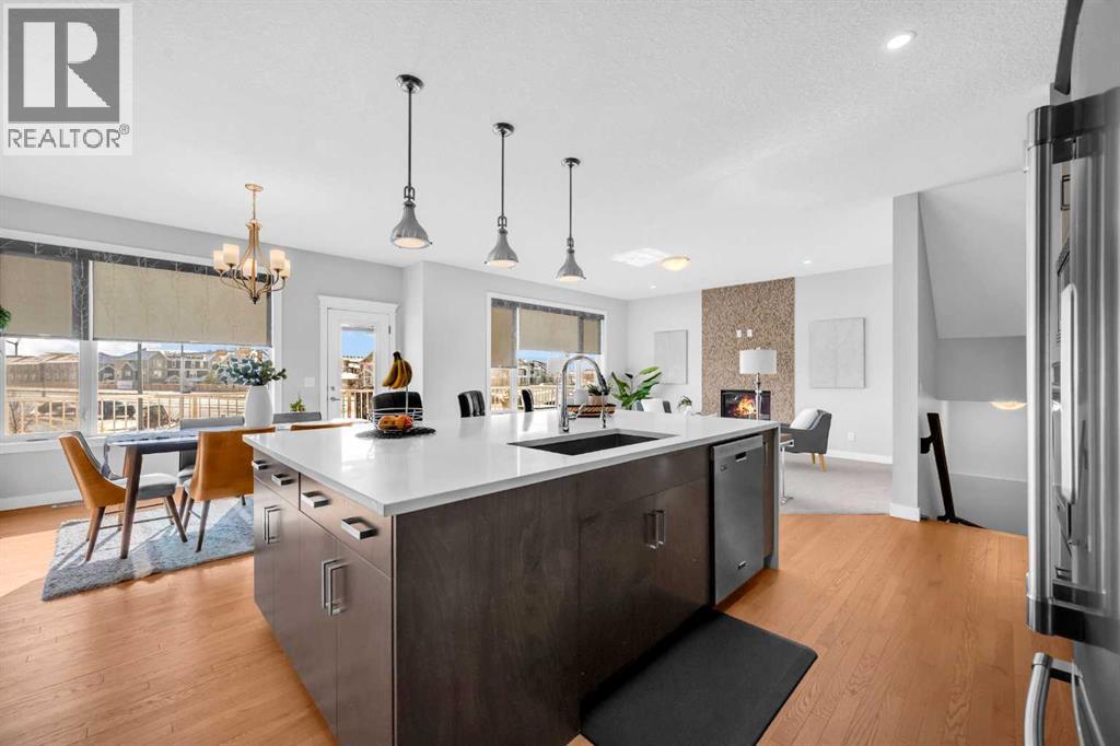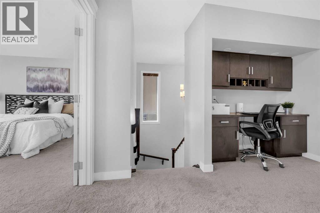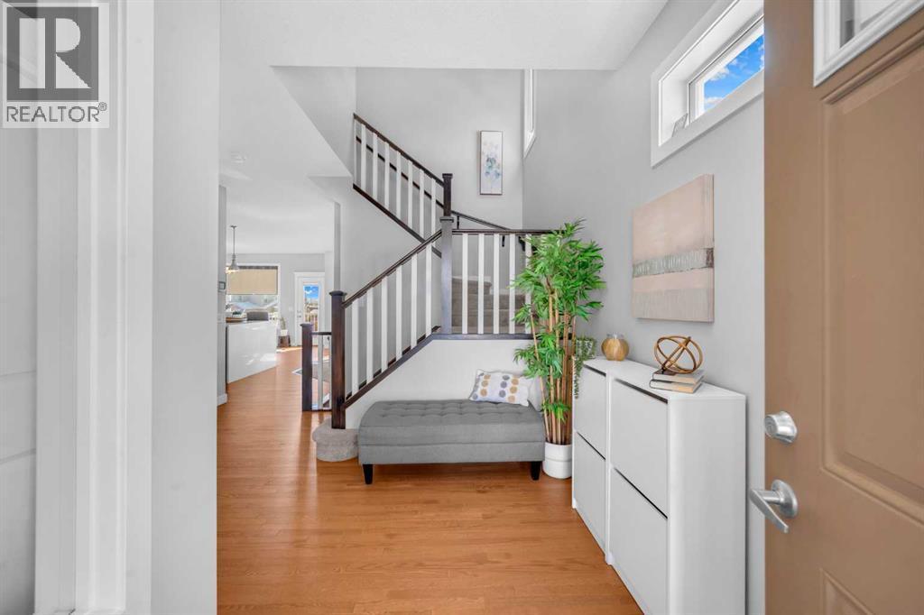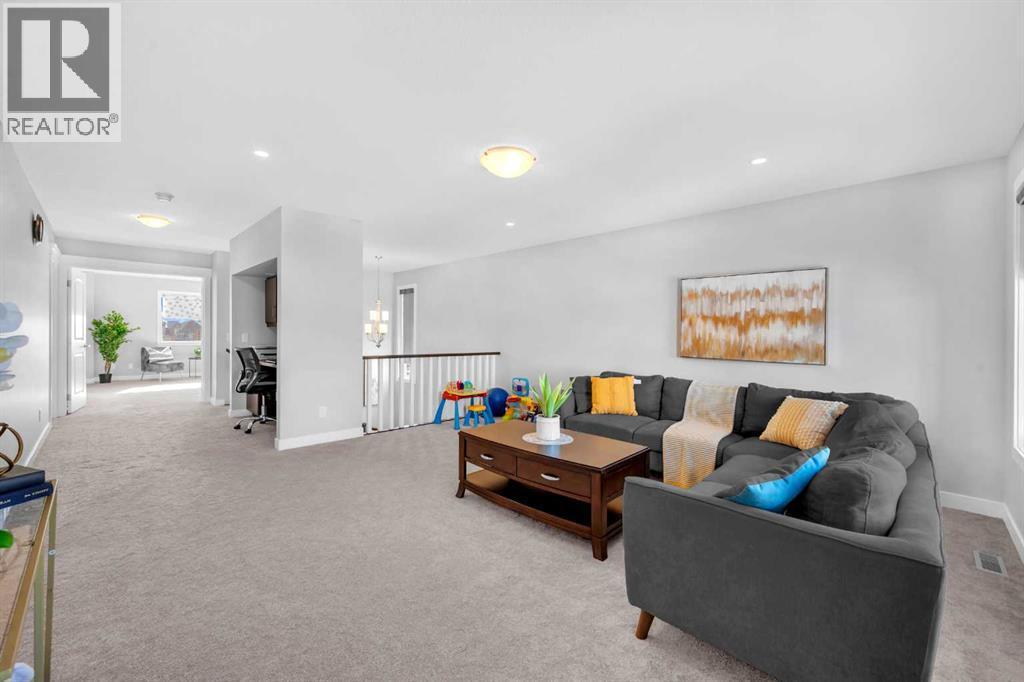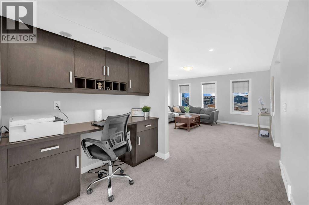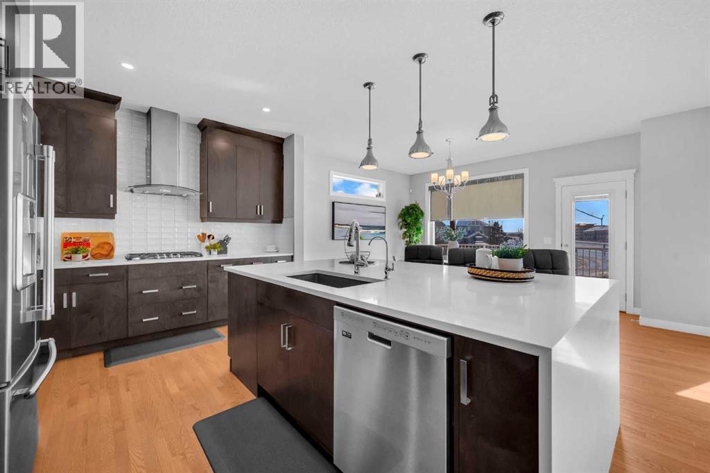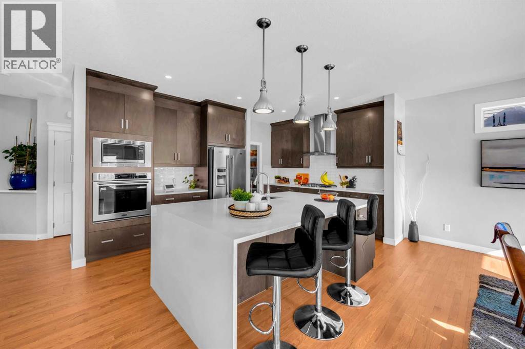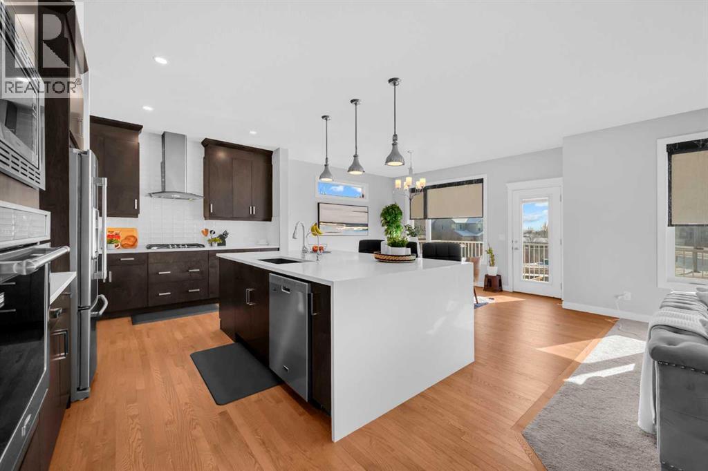 Welcome to this exceptional executive residence located in the prestigious, award-winning community of Coopers Crossing in Airdrie. Perfectly positioned on a massive 7,000+ sq ft pie-shaped lot, this fully developed walk-out home offers over 3,700 sq ft of refined living space, combining luxury finishes, thoughtful upgrades, and outstanding everyday convenience. One of the standout advantages of this property is its exceptional connectivity—providing quick and easy access to Calgary, making it ideal for commuters and professionals. Families will appreciate the three nearby schools and the convenience of a shopping center just minutes away, offering a grocery store, daycare, Shoppers Drug Mart, medical and dental clinics, and more—everything you need within close reach. The main floor is designed for both elegance and functionality, featuring a rare main-level bedroom and full bathroom, ideal for guests, extended family, or multigenerational living. At the heart of the home is the chef-inspired gourmet kitchen, showcasing high-end appliances, upgraded cabinetry, quartz countertops, and a striking waterfall island—perfect for entertaining or daily family life. A built-in workstation on first floor provides a dedicated space for working or studying from home, while custom roller shades add style and privacy throughout.Upstairs, you’ll find a generous bonus room, perfect for family movie nights or a kids’ retreat, along with well-appointed bedrooms and a spacious primary suite designed as a true sanctuary. The primary suite is a luxurious escape, offering expansive space, serene views, and a well-appointed walk-in closet. The ensuite bath feels like a private spa, complete with upscale finishes and a thoughtfully designed layout for ultimate relaxation. The fully finished walk-out basement offers impressive 9-foot ceilings and flexible living space with excellent future suite potentia l, making it ideal for extended family or additional income opportunities. This home is loaded with over $100,000 in premium upgrades, including central air conditioning, water softener, reverse osmosis water system, and 15 solar panels, delivering enhanced comfort, efficiency, and long-term savingsOffering luxury, space, sustainability, and unbeatable convenience, this remarkable home delivers a lifestyle that truly stands out in today’s market.A rare opportunity in Coopers Crossing—book your private showing today. (id:6769)