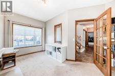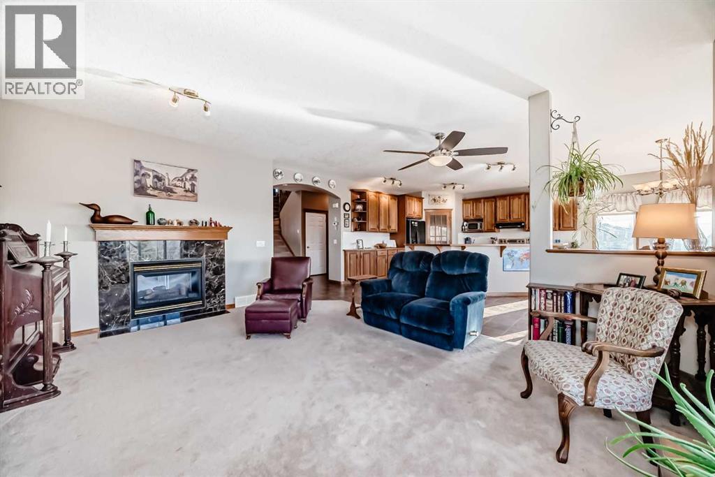 Tucked away on a peaceful cul-de-sac in the highly desirable community of Royal Oak, this beautifully customized home offers a rare ravine-backing location overlooking Royal Oak Natural Ravine Park. Enjoy direct access to walking paths, nearby playgrounds, scenic nature trails, and breathtaking mountain views. No neighbors behind you only nature, trees and peaceful surroundings.With almost 2,700 sq. ft. on the top 2 levels of thoughtfully designed living space, this home features a bright, open-concept layout enhanced by extensive real oak finishes throughout. This home is bigger than average in every aspect and is ready for a big family to call home. The kitchen is ideal for both everyday living and entertaining, highlighted by a generous raised island that comfortably seats six, abundant oak cabinetry with added height, expansive counter space. The dining area easily accommodates large family gatheringsA striking two-way, see-through gas fireplace creates warmth and ambiance between the living room and adjacent den/office. The functional walk-through pantry connects to a well-appointed laundry room with sink and vanity and provides convenient access to the oversized double & 1/2 attached garage. Most garages will barely hold 2 vehicles. This one will do the job and have space left over. Soaring ceilings welcome you at the front entry, complemented by a split oak staircase leading upstairs. One wing hosts three generously (Huge) sized bedrooms, while the opposite side features a spacious bonus room designed as a home theatre with blackout window coverings and built-in speaker wiring. Custom storage systems enhance the primary walk-in closet and an additional bedroom. The primary suite easily accommodates a king-size bed and sitting area and is complete with a luxurious five-piece ensuite featuring a soaker tub and walk-in shower. You should see the view from all 3 sides of the primary bedroom. Outdoor living is equally impressive. Start your day on the northe ast-facing front deck as the sun rises, or unwind in the evening on the oversized southwest-facing back deck while enjoying spectacular sunsets. The pie-shaped lot showcases lush landscaping with fruit trees, perennial gardens, stone accents, underground irrigation, and plenty of open lawn space. A lower patio offers a custom two-sided privacy wall, perfect for relaxing or entertaining.Additional highlights include ample garage space suitable for storage or a workshop, a front driveway accommodating at least three vehicles, and elegant cultured stone detailing on the exterior for a refined, executive appearance.Ideally located near the YMCA, Tuscany LRT station, schools, playgrounds, Royal Oak Shopping Centre, and a wide array of amenities, If your family needs big rooms big, big garage, and privacy this home is just for you. (id:6769)