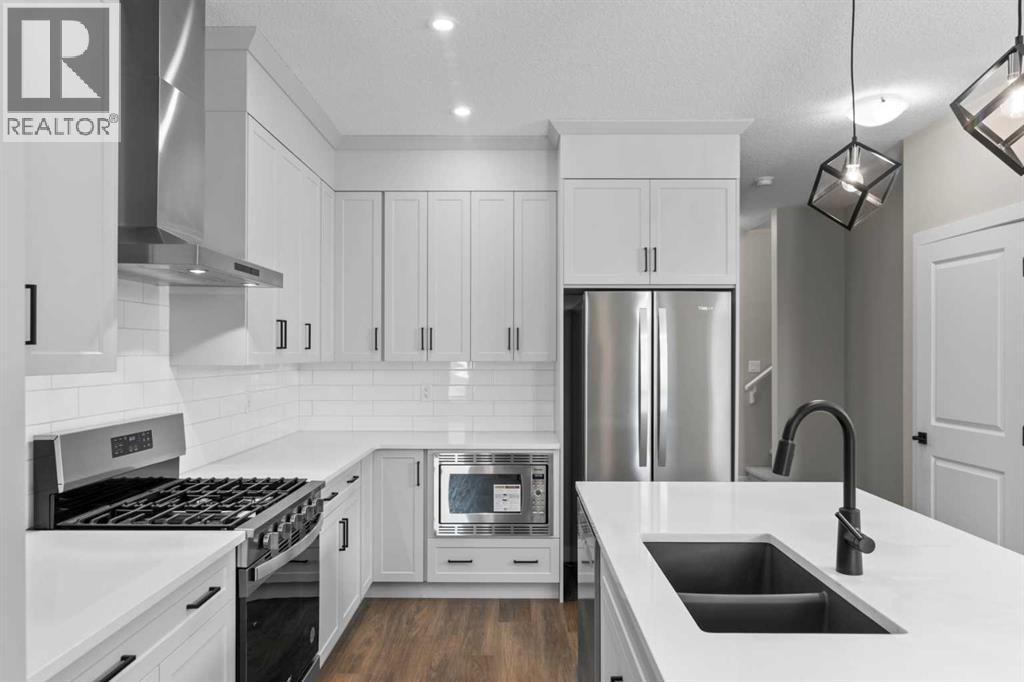 Located within the popular new NW community of Ambleton, this fabulous Brand New Home is sure to impress. 9 Foot Ceilings and Luxurious Vinyl Plank Flooring sprawls through the Front Entrance into the Open Concept Kitchen, Dining and Living Room as well as the west facing main floor bedroom suite. QUARTZ countertops, Stainless Steel Appliances, GAS STOVE, FULL CEILING HEIGHT Cabinetry with Crown Molding and a good size Pantry Closet complete the modern Kitchen. A Spacious Dining Room and Living Room are great for Relaxing or Entertaining in. The upstairs features a center Bonus Room that Separates the Kids Rooms from the Parents' Master Bedroom. Plush Carpets cushion your Toes and Feet on the Upper Floor and Oversized Windows allow Sunshine to Beam into every room. There is a shared 4 Piece Bathroom and a large laundry room on this level as well. The Master/Primary Bedroom is Gigantic and can accommodate a King Size Bed with Night Tables and a Dresser or Two. There is also a walk-in Closet with a large window and a 4 Piece Ensuite Bathroom that completes this suite. Heading downstairs to the undeveloped basement, the Separate Entrance and stairs, 9 foot Ceilings, second Furnace, second Washer & Dryer Rough-ins, Bathroom Rough-Ins, Kitchen Rough-ins are conveniently placed for a future two bedroom basement development. The backyard comes with a double car parking pad, which can accommodate a future double detached garage. This east backyard amazing home is also conveniently located just minutes away from the schools, public transit and amenities, including Carrington Shopping Center, Creekside Shopping Center, Walmart, Beacon Hill Costco, and T&T Asian Supermarket. It also has quick access to the Stoney Trail Highway and the Deerfoot Highway. Whether you want to Live Up and Rent Down, lease out the entire house, or live with multiple generations, this is the perfect home for you. Don't miss out on this gorgeous home! Book your showings today! (id:6769)