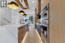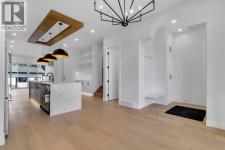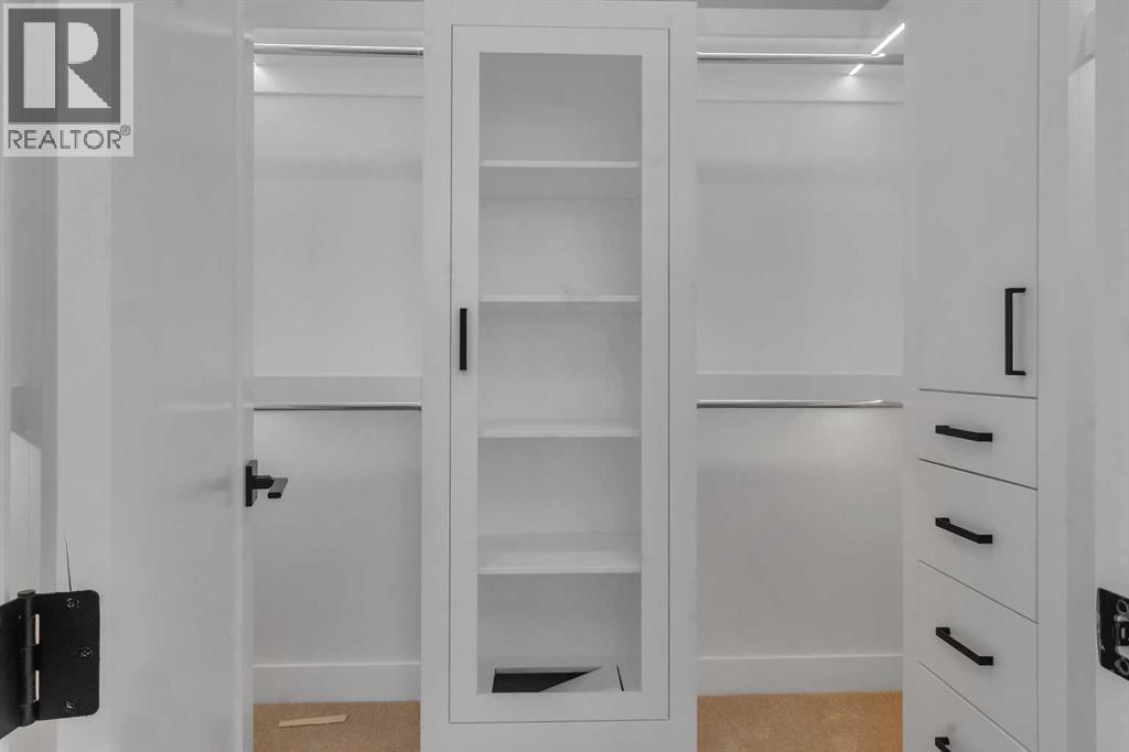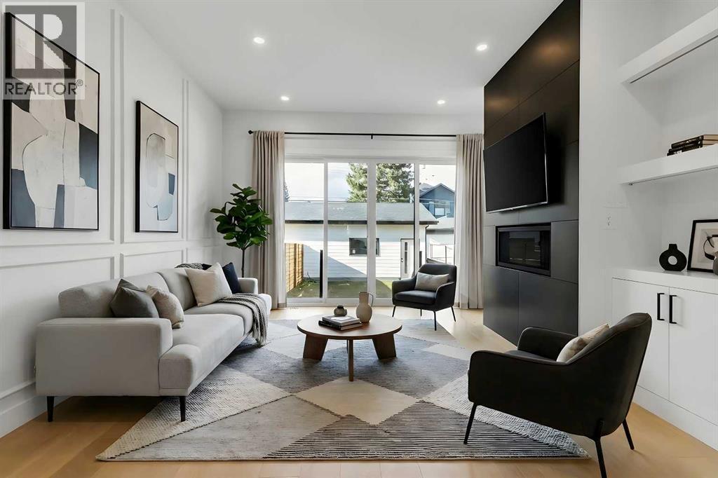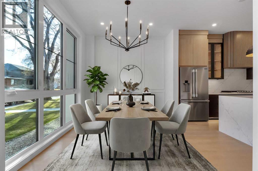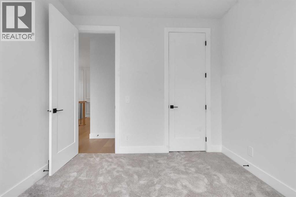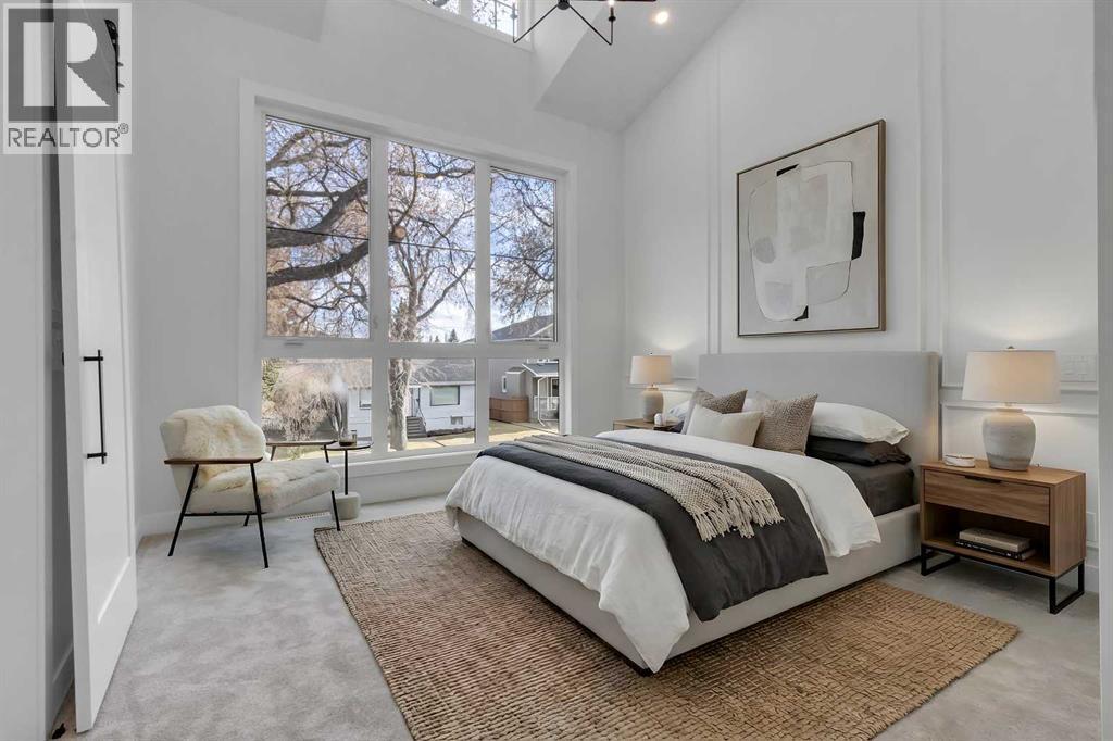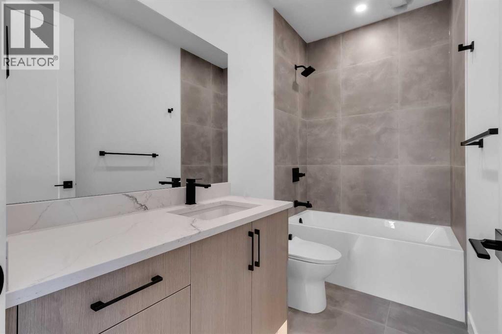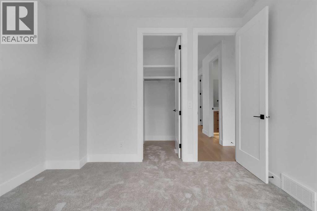 Welcome to this brand new, meticulously crafted luxury infill by Moon Homes, located on a quiet, tree lined street in the heart of Mount Pleasant. Thoughtfully designed across all three levels, this five bedroom residence offers refined craftsmanship, elegant architectural detailing, and exceptional functionality just steps from Confederation Park and minutes to downtown.The main floor features soaring 10 foot ceilings, rich hardwood flooring, oversized windows, and custom millwork throughout. A grand arched front entry opens to a spacious foyer, setting the tone for the timeless interior. The open concept layout blends classic elegance with modern design. The dining area is highlighted by a designer chandelier, while the living room centers around a beautifully tiled gas fireplace. Large sliding patio doors open to a rear concrete patio, creating seamless indoor outdoor living.The chef inspired kitchen is a true showpiece, featuring a massive quartz island, built in Frigidaire Professional Series appliances, a custom slat hood fan, bar fridge, and extensive full height cabinetry with pull out storage. Integrated LED lighting throughout the kitchen, including toe kick, under cabinet, floating shelf, and glass front upper lighting, adds both function and ambiance. A dedicated home office with a built in desk and under lit floating shelves is positioned near the entry. At the rear, a well designed mudroom with bench seating and coat hooks leads to a stylish powder room with a floating vanity and pendant lighting.Upstairs, wainscoting continues along the staircase into a bright hallway filled with natural light. The primary retreat showcases nearly 15 foot vaulted ceilings, plush carpeting, a striking chandelier, a full wainscoted feature wall, and three upper transom windows. The walk in closet includes custom shelving with pull outs and motion sensor LED lighting. The spa inspired ensuite offers heated tile floors, dual vanities, a freestanding soaker tub, a ti led rainfall shower with bench, ambient lighting, and a private toilet area.Two additional bedrooms each feature walk in closets and share a beautifully finished four piece bathroom. The upper laundry room includes LG appliances, folding counter, deep sink, cabinetry, and linen storage conveniently located near the bedrooms. The fully finished two bedroom legal basement suite (pending final inspection), includes a private side entrance and mirrors the quality of the main home. It offers a full kitchen, spacious living area, modern four piece bathroom, and dedicated laundry with a built in sink, making it ideal for extended family, guests, or future rental income. Finished with a detached double garage and paved alley access, this home is surrounded by top rated schools, parks, Mount Pleasant Pool, and everyday amenities, with quick access to major routes and the city core. A rare opportunity to own a truly refined, brand new luxury residence in one of Calgary’s most sought after communities. (id:6769)