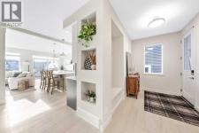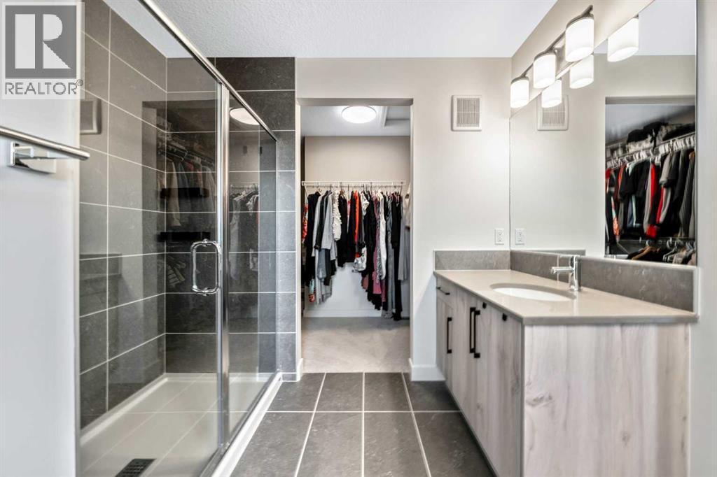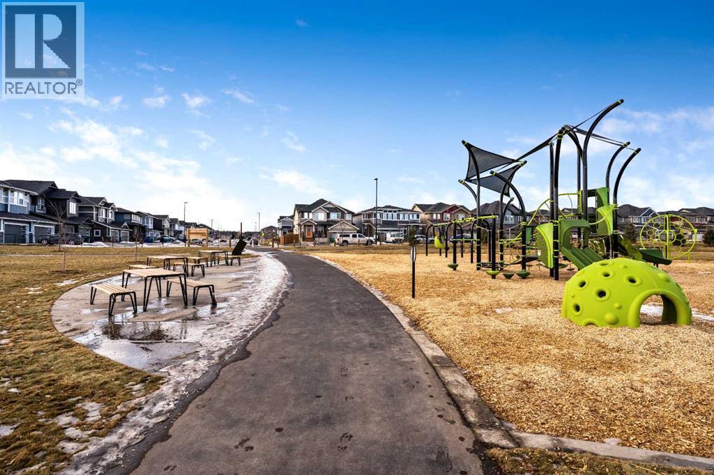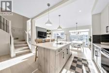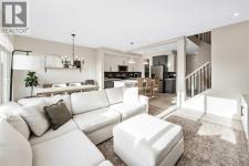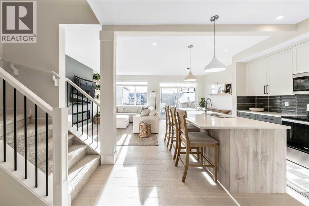 Situated on a quiet street in the centrally located community of Greystone—just steps away from a park and playground—this beautifully upgraded home has show-stopper curb appeal, features a sun-filled, fully fenced south-facing backyard, ideal for both entertaining and everyday living. Thoughtfully designed with an open, modern layout, this 3-bedroom, 2.5-bath home offers over 1,762 sq. ft. of stylish living space and showcases numerous premium upgrades throughout. The main floor makes an immediate impression with an elegant 8’ glazed front door, 9’ ceilings, oversized windows, and refined 8’ interior doors. Engineered hardwood flooring flows seamlessly through the foyer, hallway, great room, kitchen, and dining nook, creating a warm and cohesive atmosphere. The kitchen is a true showpiece, featuring a large single-level 7’ entertainment island with breakfast bar, quartz countertops, and a spacious walk-in pantry with 8’ French doors. Additional highlights include 42” upper cabinetry with dropped bulkhead, soft-close doors and drawers, dedicated pots-and-pans storage, and a full stainless steel appliance package, including a refrigerator, smooth-top electric range, microwave/hood fan, and built-in dishwasher. The bright and inviting great room and dining area are flooded with natural light from oversized windows and an 8’ wide sliding patio door, while the striking Napoleon Entice fireplace adds both style and warmth—perfect for relaxing evenings or hosting guests. Upstairs, the primary suite offers a private retreat complete with a well-appointed 4-piece ensuite featuring dual quartz vanities with undermount sinks, an oversized 5’ x 3’ shower, ceramic tile flooring, and a private water closet with a window. A generous walk-in closet is conveniently accessed through the ensuite. The upper level is completed by a spacious front bonus room, two additional well-sized bedrooms with ample closet space, a full main bathroom with quartz countertops and tile flooring, and a convenient second-floor laundry room finished with tile. The unfinished basement features 9’ ceilings, providing an excellent opportunity for future development and allowing the new owners to create a space perfectly tailored to their needs—a true blank canvas. Bright, modern, and ideally located in a family-friendly community, this home offers exceptional value and versatility and truly checks all the boxes. (id:6769)