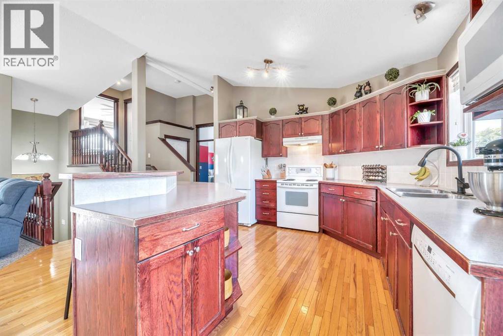 Welcome to this beautifully maintained home, offering space, comfort, and a yard you’ll love to spend time in. The open main floor is bright and airy with vaulted ceilings, featuring a front living room with a cozy gas fireplace, seamlessly connected to the kitchen with an island and eating area. This level also includes two bedrooms and a 4-piece bath. The upper level is a private retreat, boasting a large primary bedroom with a walk-in closet and a 4-piece ensuite. The fully developed lower level adds even more living space with a spacious rec room, an additional bedroom, and another bathroom—perfect for family or guests. Recent upgrades provide peace of mind, including new siding, eaves, soffits, fascia, shingles, resurfaced deck with waterproof under-deck storage, and more. Step outside to your own backyard oasis filled with mature trees, apple trees, cherry trees, and Saskatoon bushes—an incredible setting for entertaining, relaxing, or enjoying nature right at home. This home combines thoughtful updates with a fantastic layout and an amazing outdoor space—truly a must-see! (id:6769)