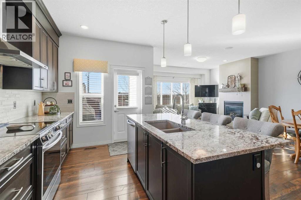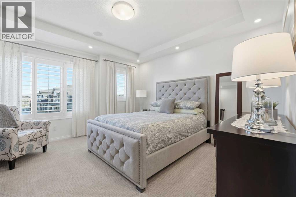 This former Excel showhome has been impeccably maintained, offering a rare blend of elevated design, thoughtful functionality, and family-friendly living. With classic curb appeal, mature trees, irrigation, an extended composite deck, and higher fencing, the exterior is both polished and private. Inside, the home showcases 9’ main-floor ceilings, wide-plank engineered hardwood, ceramic tile, upgraded shutter blinds throughout, and striking wrought-iron railings - details that reflect true quality. The gourmet kitchen anchors the main floor, featuring upgraded cabinetry & mouldings, gorgeous stone countertops, large island w/ undermount sink, stainless steel appliances (newer stove & fridge w/ water/ice), and a walk-through pantry with custom built-ins - perfect for both entertaining and busy family life. The living room is warm and inviting with large windows, and features a stunning fireplace. The main floor is finished with a mudroom (with custom built in), 2pc bath removed from all living spaces, handy closets & a generously sized dining area. Heading upstairs you'll notice a stunning skylight, and how the floorplan is thoughtfully designed with families in mind. A bright bonus room with vaulted ceilings, 2 generously sized bedrooms each with walk-in closets, a full 4-piece bath, and a built-in workspace ideal for homework or working from home. The primary retreat feels like a private escape, with an upgraded tray ceiling, walk-in closet, and a spa-inspired 5-piece ensuite with a separate water closet. Upstairs is complete with a laundry room w/ additional storage. Downstairs, the fully finished basement adds exceptional versatility with a spacious rec room featuring additional baseboard heat, a 4th bedroom, a 3-piece bath, and ample storage. Additional upgrades include air conditioning, heated garage, Vacu-Flo system, recessed lighting, added trees in the backyard, and surround-sound wiring throughout the main and upper floors. Ideally located steps from a larg e park and green space, and offering quick access to Mcleod Trail and Stoney Trail, this home delivers showhome-quality finishes, everyday comfort, and an exceptional setting for growing families who appreciate refined living. (id:6769)