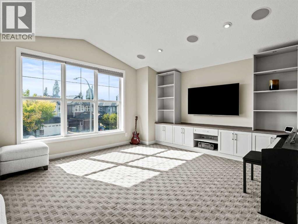 Lake lifestyle! Nestled in a quiet cul-de-sac just steps from the lake and Auburn Bay Schools, this stunning home sits on a massive, professionally landscaped pie lot. The open-concept main floor makes a grand statement with 18-ft floor-to-ceiling windows, custom built-ins, and a cozy gas fireplace. The chef-inspired kitchen boasts quartz countertops, white cabinetry, a gas range, and a walk-in pantry. Upstairs, the primary retreat features a 5-piece ensuite with a deep soaker tub and glass shower. Two additional bedrooms share a full bath, plus a huge vaulted bonus room with surround sound. The fully finished basement (9ft ceilings) is an entertainer’s dream, featuring a private theatre room with a projector, screen, and surround sound, plus a 4th bedroom and full bath. The backyard oasis is unrivaled: a custom pergola, stamped concrete, built-in fire pit. Enjoy year-round lake access in Calgary’s premier community. OPEN HOUSE: Sunday, Jan. 18 from 1-3 PM. (id:6769)