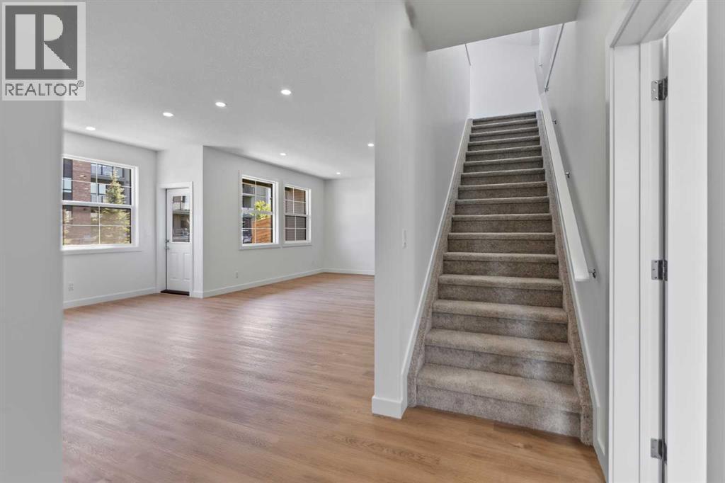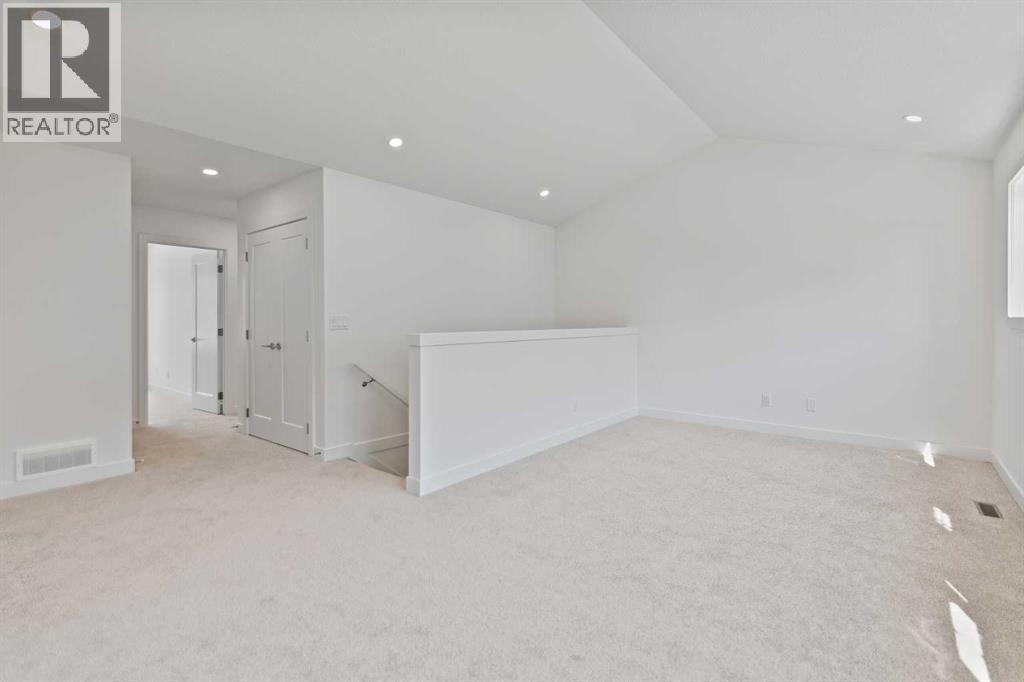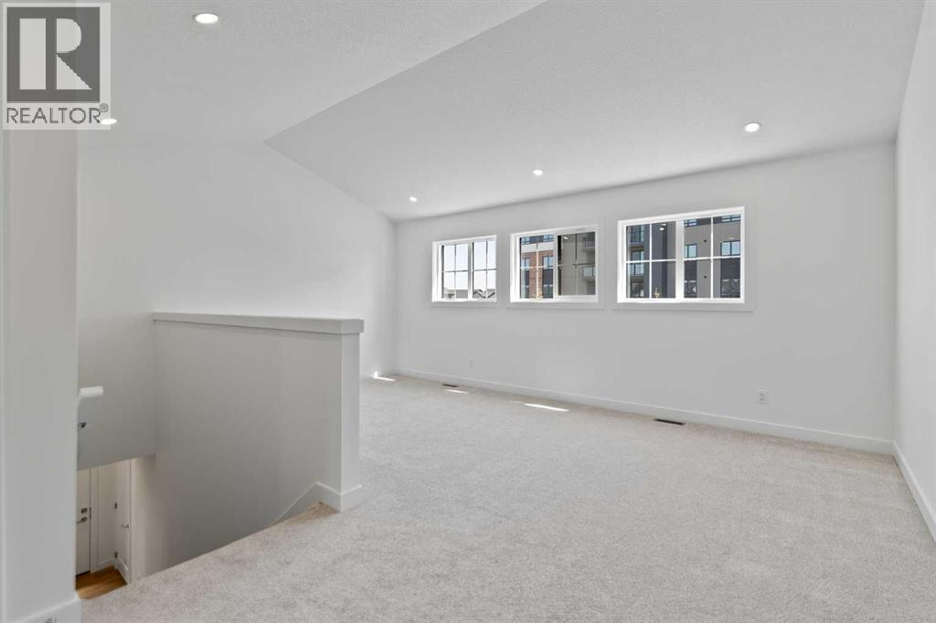 Welcome to luxury and convenience in the heart of Airdrie’s award-winning community of Cooper’s Crossing. This beautifully crafted corner-unit duplex townhome is one-of-a-kind—featuring the highly sought-after primary bedroom on the main floor, perfectly blending everyday comfort with smart design.Step inside to discover a bright, functional main level that boasts: A stylish gourmet kitchen with an oversized island and stainless steel appliances. A cozy family room designed for gathering and relaxation.nYour private main-floor retreat with vaulted ceilings and a spa-inspired ensuiteUpstairs, a sun-soaked bonus room offers the perfect space to unwind, work from home, or enjoy family time. Just off the bonus area, you’ll find two additional bedrooms, a full bathroom, and a convenient upstairs laundry space (note: no in-unit washer and dryer).Enjoy the added luxury of 9-foot ceilings on both the main floor and the basement, creating a spacious and airy atmosphere throughout. The basement also includes two bathroom rough-ins, offering the opportunity to design a future layout with two additional bedrooms.Summer evenings are best spent on your covered west-facing balcony—with a gas line for your BBQ and peaceful views of landscaped green space.Additional highlights include:Front Double attached garageModern, contemporary exteriors with fully landscaped yardsEnjoy a true Lock & Leave lifestyle—with condo fees of just $347/month that cover exterior home insurance, snow removal, lawn care, landscaping, irrigation, reserve fund contributions, and even city garbage and waste removalAnd here’s what makes this home truly special: This is the only duplex unit available among the triplex townhomes in the community—an exclusive opportunity you won’t find again.No stress. No fuss. Just effortless, carefree living in one of Airdrie’s most desirable neighborhoods.Book your exclusive tour today. (id:6769)