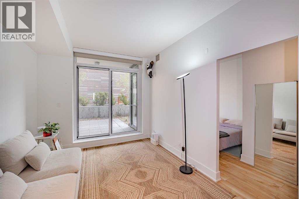Welcome to the First, a modern condo in the heart of Calgary’s EastVillage. This one-bedroom, one-and-a-half-bath home offers a smartlayout with beautiful finishes and plenty of natural light. Largewindows fill the space with sunshine, and the private balconyoverlooks a quiet courtyard, giving you a peaceful spot to enjoy yourmorning coffee or relax in the evening. The entryway opens into apractical foyer with a half bath for guests and a tucked-away laundryarea. The kitchen stands out with stainless steel appliances, quartzcountertops, a built-in oven, and soft-close cabinets. The island addsextra prep space and makes it easy to entertain or enjoy casual meals.The living area feels bright and open, flowing nicely into thebedroom. Behind a sliding barn door, you will find a large walk-incloset and a stylish ensuite with a glass rainfall shower that feelslike your own private spa. You will also have central airconditioning, a titled underground parking stall, and a large storagelocker for convenience. The building offers great amenities, includinga fitness center, yoga room, party lounge with a kitchen and bar, skyclub with a pool table, business meeting room, and a rooftop patiowith BBQs. Located steps from the Bow River pathways, the SimmonsBuilding, the Central Library, and plenty of shops and restaurants,this is a perfect spot for anyone who wants to enjoy city living withcomfort and style. Whether you are an investor, professional, orstudent, this home offers the ideal mix of convenience, design, andlocation. (id:6769)