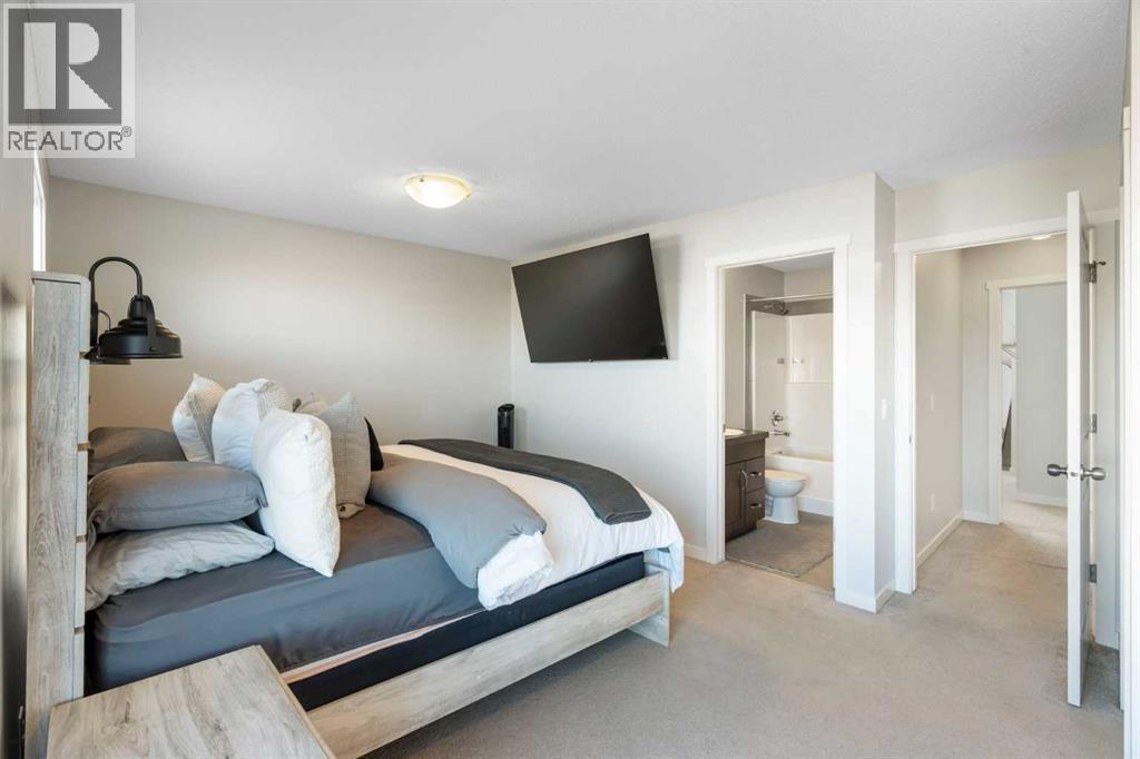 Experience maintenance-free living at its finest in this beautiful walk-out end unit townhome at Aura Copperfield. This home is smoke free and pet free. Sharing only one neighbor, this home offers a sense of privacy and extra windows for a bright, airy feel that only an end unit can provide. The main floor features an open-concept layout with durable laminate flooring, sleek quartz countertops, and stainless steel appliances. On winter evenings, you can retreat to the cozy living room and enjoy the warmth of the natural gas fireplace, or step out onto one of TWO private balconies to enjoy the fresh air. Upstairs, the dual primary suite design ensures maximum comfort, with both bedrooms featuring their own walk-in closets and private ensuites. The lower level adds even more functionality with a large laundry room and a versatile flex space ideal for a home office, gym, or media room. Complete with an attached garage, an additional driveway stall, and visitors parking steps away. Recent upgrades include new AC Unit (2022), new HWT (Jul 2025). This lovely home offers a perfect blend of style and convenience. Close to shopping, schools, walking paths and dining of 130th Avenue. Call your favorite realtor for a tour before its gone. (id:6769)