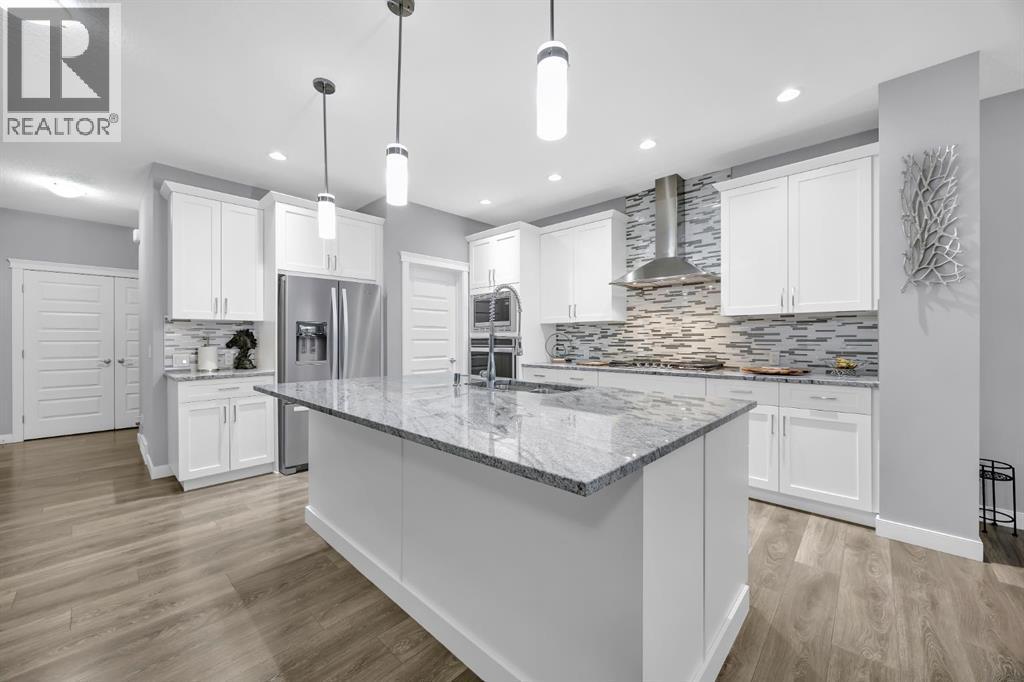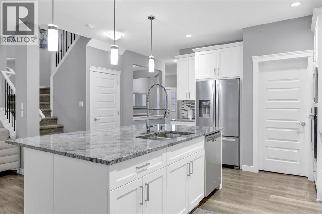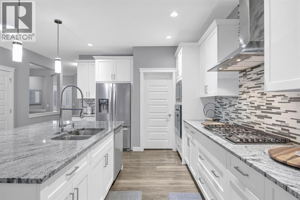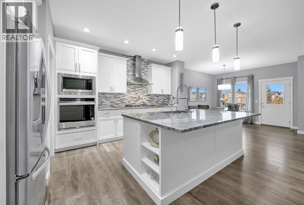 Welcome to 161 Ravenstern Crescent, a stunning 2-storey walkout home located in the highly desirable community of Ravenswood in Airdrie. Offering 2,449 sq. ft. of thoughtfully designed living space, this home features 4 bedrooms, 2.5 bathrooms, and a layout perfect for growing families.The main floor is both functional and stylish, showcasing durable vinyl plank flooring throughout. A versatile front office/den provides the ideal space for a home office, library, or study. The open-concept design flows seamlessly into the heart of the home — the chef’s kitchen, complete with stainless steel appliances, quartz countertops, a gas cooktop, built-in oven and microwave, and a large central island perfect for entertaining. A convenient walkthrough pantry connects directly to the kitchen, and a 2-piece bathroom completes the main level. The inviting living room is anchored by a cozy gas fireplace, creating the perfect gathering space.Upstairs, you’ll find a spacious bonus room, ideal for family movie nights or a play area. The upper level also includes three generously sized bedrooms, a shared 5-piece bathroom, and a convenient laundry room. The primary retreat is impressively sized and features a large walk-in closet and a luxurious 5-piece ensuite, offering a private space to unwind.The walkout basement is undeveloped and ready for your personal touch — whether you envision additional living space, a home gym, or a guest suite.Ideally located close to schools, shopping, parks, and offering easy access to major highways, this home combines comfort, convenience, and future potential.Book your private showing today and experience everything this exceptional home has to offer! (id:6769)