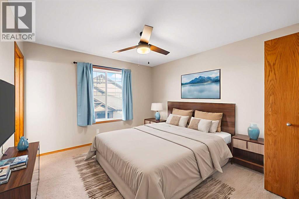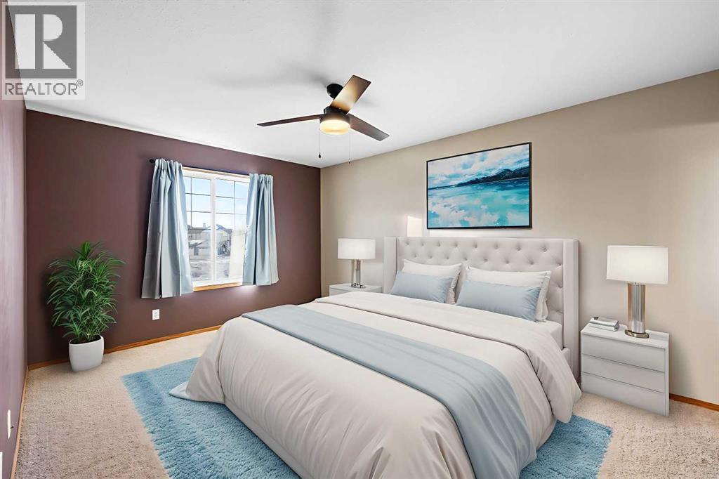 Welcome to Cooper’s Gardens- this beautifully maintained, spacious end-unit townhome offers 2 bedrooms, 2.5 bathrooms, and over 1,450 sq ft of living space, complete with a double attached garage and additional driveway parking. Perfectly positioned on a large corner pie lot in the award-winning community of Coopers Crossing, this home offers a low-maintenance lifestyle with no yard work or snow removal to worry about. Step inside to an inviting open-concept layout featuring 9’ ceilings and an abundance of natural light pouring in through expansive windows. The corner location allows sunshine to fill the home throughout the day, creating a bright and welcoming atmosphere. The chef-inspired kitchen is both stylish and functional, showcasing stainless steel appliances, a breakfast bar island, and a spacious corner pantry, all seamlessly connected to the dining and living areas-ideal for entertaining family and friends. The living room is warm and inviting, centered around a cozy fireplace, with a tasteful blend of hardwood and carpet flooring throughout. Upstairs, you’ll find two generous primary suites, each complete with its own spacious 4-piece ensuite and large walk-in closet-perfect for guests, family, or a shared living arrangement. The unfinished basement features high ceilings, rough-in plumbing, and two large windows, offering excellent potential for future development and your own design ideas. Additional highlights include central air conditioning, a central vacuum system, and a well-managed, pet-friendly complex (with board approval). Enjoy the convenience of being within walking distance to schools, parks, ponds, pathways, and local amenities. With low condo fees, pride of ownership throughout, and an unbeatable location, this home offers exceptional value in one of Airdrie’s most desirable award winning communities .Check it out! (id:6769)