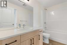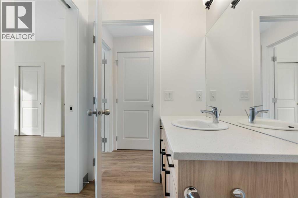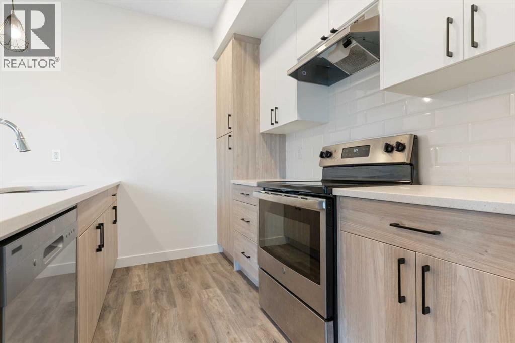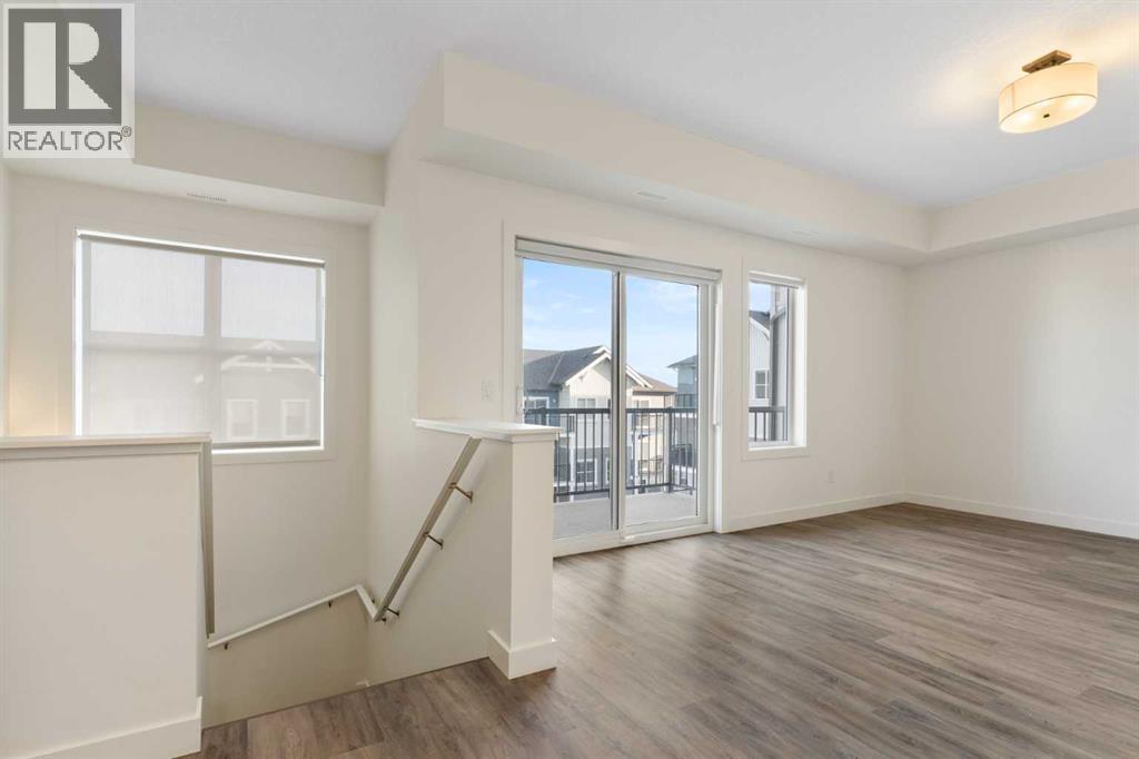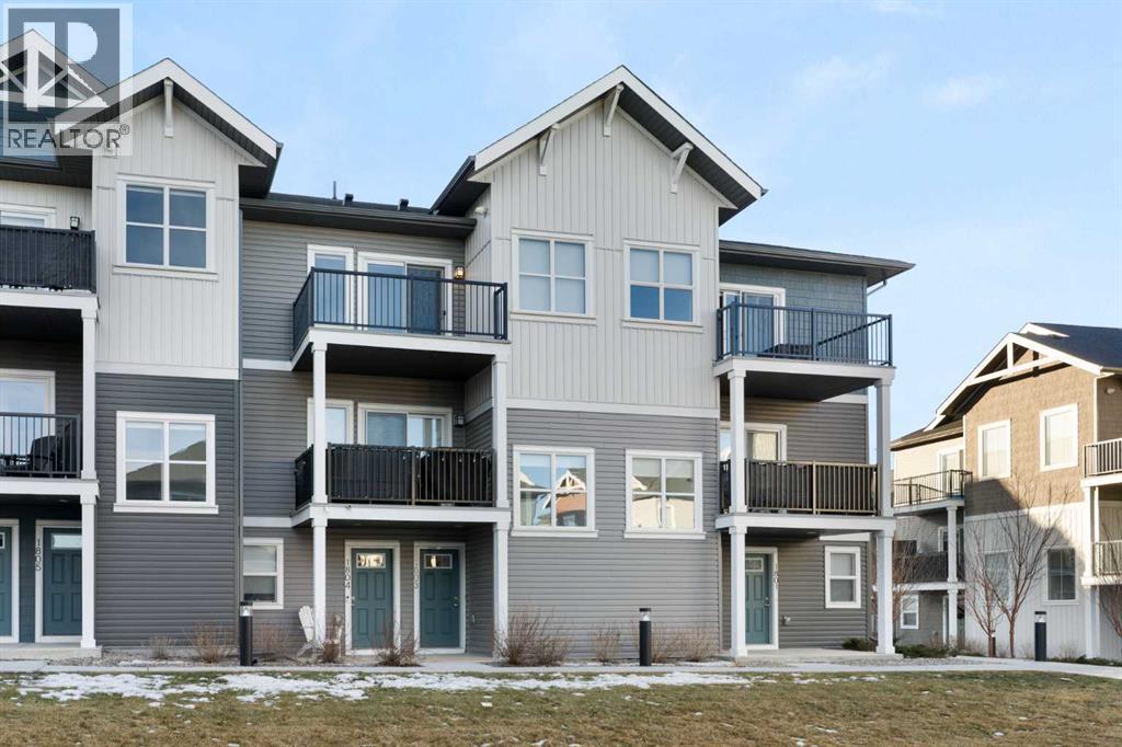 Check out this stunning top-floor stacked townhome that offers the perfect blend of style and function. Ready for immediate occupancy; this 1 bedroom 1 bath unit features over 1200 sq ft of thoughtfully designed living space, with most of the layout conveniently situated on a single level. Step inside and up to the main floor and you will discover an open-concept living area with a full kitchen that's a home chef's dream. The kitchen boasts elegant quartz countertops, soft-close drawers, and stylish two-tone cabinets highlighted by pendant lighting. An adjacent, flexible space is perfect for a spacious dining area or a home office. This home has an oversized bedroom and a full 4pc bathroom that doubles as an ensuite with its second access. A spacious laundry room adds to the convenience. This unique floorplan is designed to feel like a modern apartment but with the added benefits of a main floor storage/flex area and direct access to an oversized, extended single car GARAGE. This home is perfectly situated to offer the best of both convenience and community. It's located right next to a future school site, with transit options directly at your doorstep for effortless commuting. Enjoy a short two-minute walk to Bow Valley High School, and a quick five-minute trip to the Spray Lakes Sports Centre for all your recreational needs. For bigger city amenities, you're only 20 minutes from South Calgary, and the mountains are within easy reach, with Canmore just a 40-minute drive away. (id:6769)