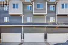StreetSide proudly presents this exceptionally popular interior-unit townhome, where expansive living areas meet modern comforts and sophisticated finishes. The thoughtfully designed floorplan features three spacious upper-level bedrooms and two and a half well appointed bathrooms, complemented by a versatile lower-level den perfect for a home office or quiet retreat. The heart of the home is an inviting open-concept main floor, anchored by a large gourmet kitchen featuring a functional breakfast bar for casual dining. This bright living space transitions seamlessly to a private balcony, offering a perfect setting for outdoor relaxation.The interior showcases high end craftsmanship, including modern white slab-style cabinetry with a full bank of drawers for maximum storage. The kitchen is further elevated by polished white quartz countertops and a full suite of premium stainless steel appliances. Durable luxury vinyl flooring runs throughout the primary living areas, while the stairs and upper level are finished with plush carpet over an 8lb underlay for superior comfort. This residence is a water meter unit, allowing for precise and efficient utility management. Additional conveniences include an attached double car garage, professionally maintained landscaping, and a lifestyle defined by maintenance free living.Located within Red Embers Point East, this home places you at the heart of the dynamic Redstone neighborhood. Enjoy the ease of a convenient location with quick access to major routes, including Stoney Trail, ensuring you are never far from the city's best. The community is strategically positioned near future commercial developments, promising shops, services, dining, and entertainment options just moments from your doorstep. (id:6769)