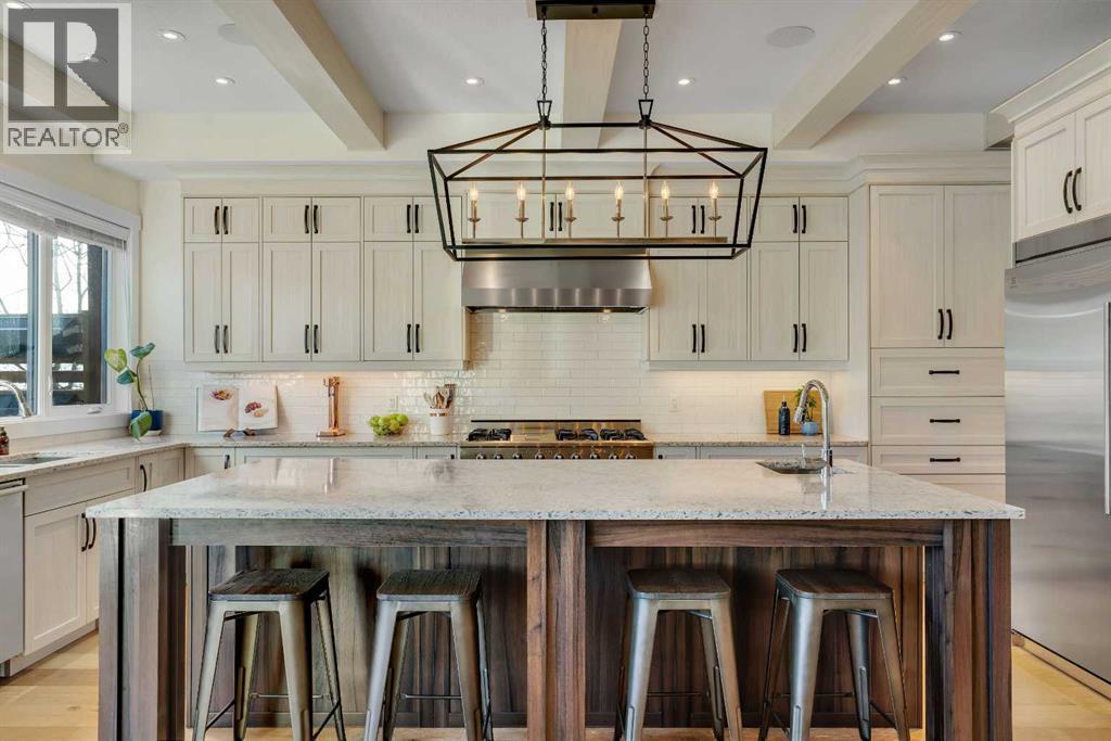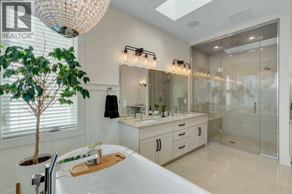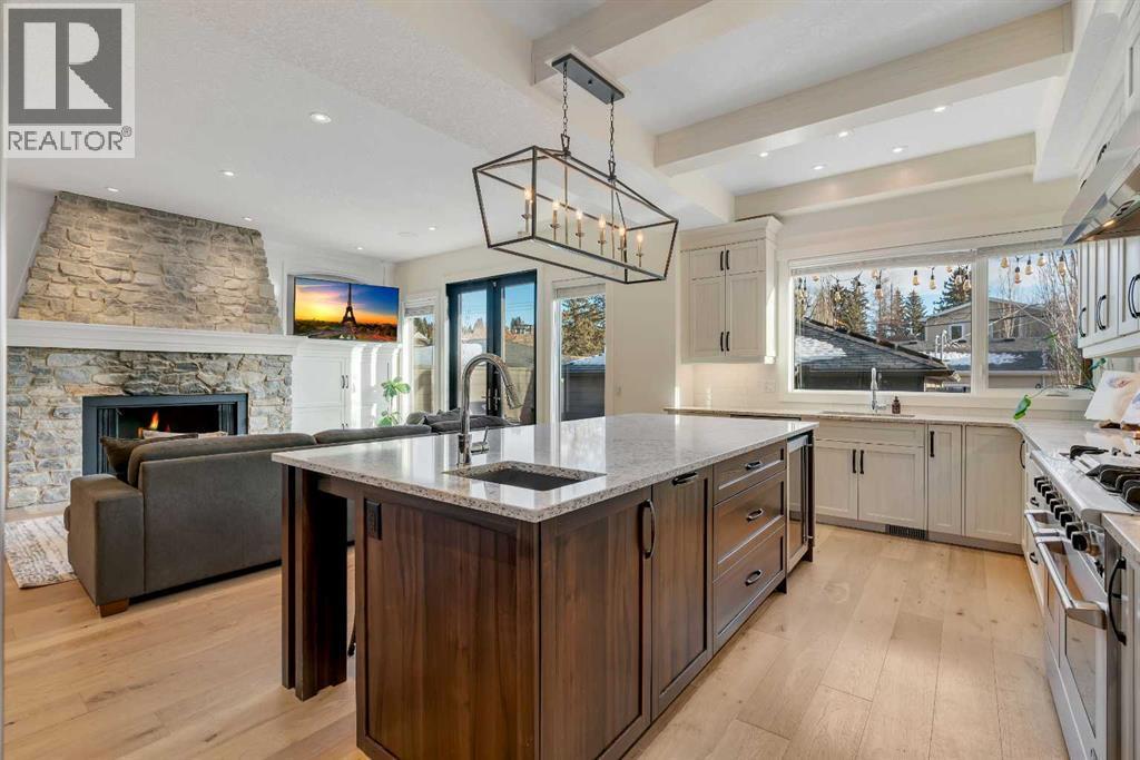 An exceptional craftsman home that masterfully blends timeless design with one of Calgary’s most sought-after NW enclaves in Bowness. A welcoming front porch sets the tone, leading into a home finished with engineered hardwood flooring throughout the main and upper levels. Just off the entry, a private office provides an ideal workspace. The heart of the home is the expansive living room, anchored by a striking stone fireplace that invites both quiet evenings and elegant entertaining.The chef’s kitchen is nothing short of spectacular, featuring a massive centre island, commercial-grade appliances, and a butler’s pantry with a second dishwasher that seamlessly connects to the dining room, making hosting effortless and refined.Upstairs, retreat to a stunning primary bedroom with dual walk-in closets and a serene ensuite complete with a freestanding tub and luxurious steam shower. The upper laundry room is thoughtfully designed for busy families with two sets of washers and dryers. Two additional generously sized bedrooms, each with its own ensuite and walk-in closet, complete this level.The basement is an entertainer’s dream, offering a large family room with projector, wet bar, a games area, and eye catching wine storage feature. Comfort is enhanced with in-slab hydronic heating. Two additional bedrooms provide flexibility as guest rooms, flex space or as a home gym. Outdoor living is just as impressive, with a deck off the living room and a low-maintenance landscaped backyard with raised gardens and irrigation. The oversized, heated detached garage is equipped for EV charging, while the home’s 8kW solar array and dual Tesla Powerwall batteries underscore its commitment to energy efficiency and modern living.This is a rare opportunity to own a meticulously crafted, thoughtfully upgraded home where elegance, comfort, and sustainability come together, just moments from parks, pathways, and the Bow River. (id:6769)