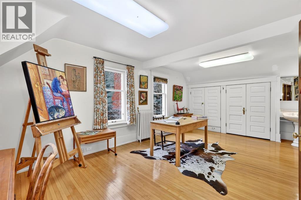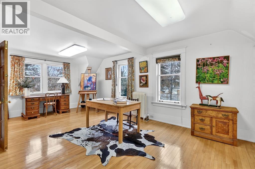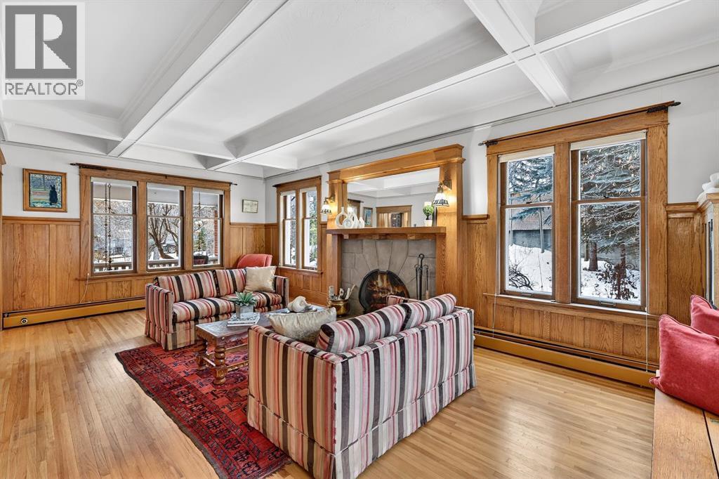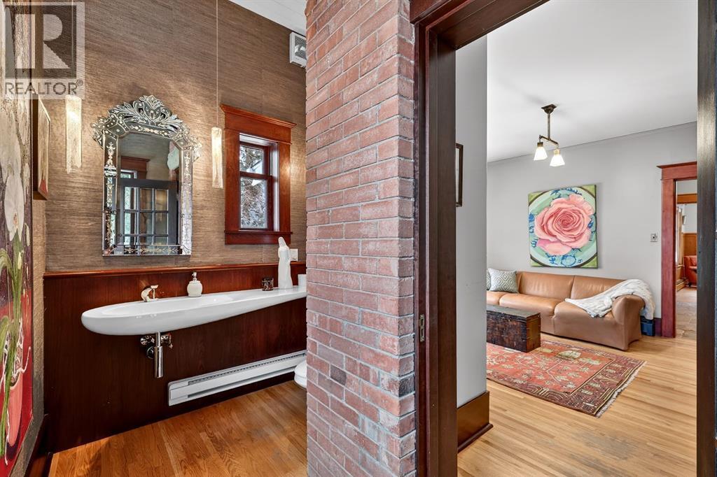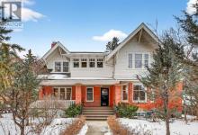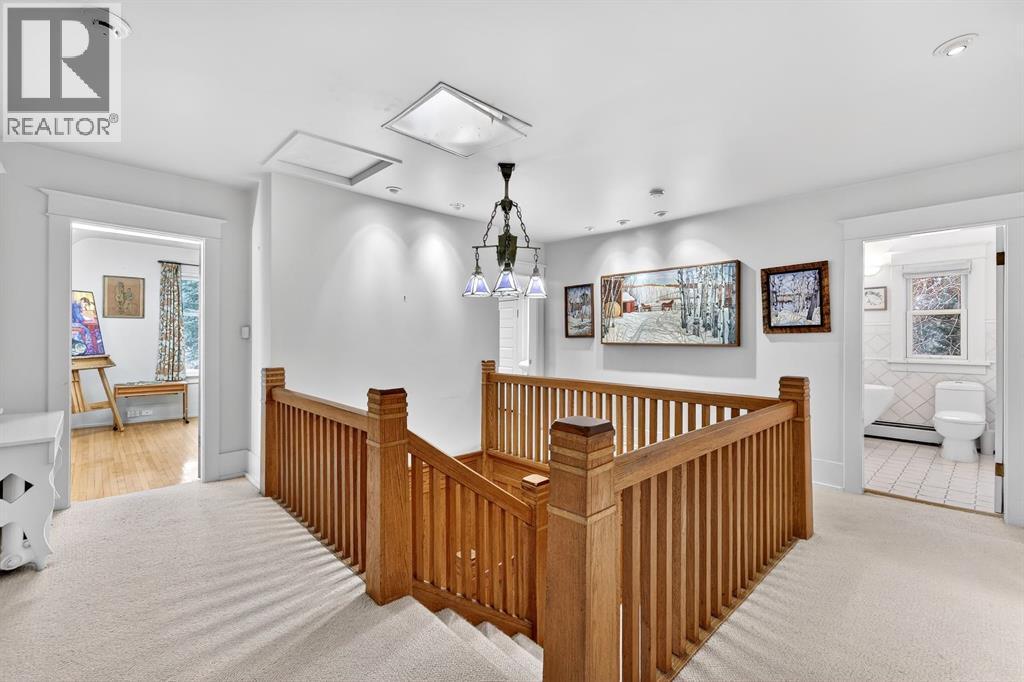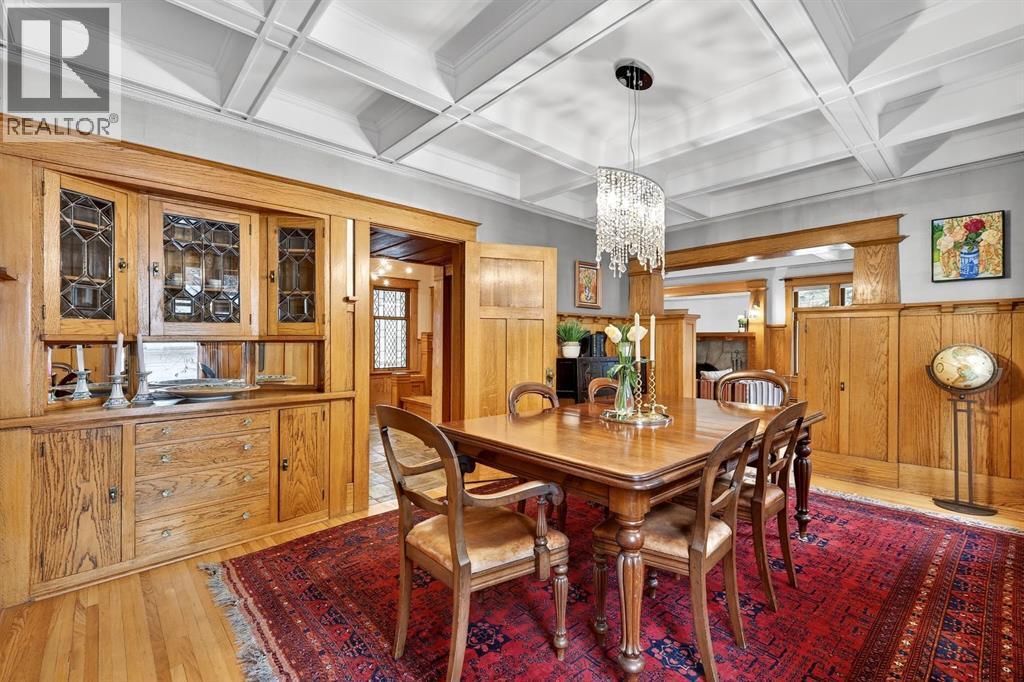 Carlton Street. This isn’t just a home—it’s a rare and protected piece of Calgary’s architectural history, set on over 1/3 of an acre, thoughtfully modernized while lovingly preserved and ready for its next chapter.As a registered historical property, its character is safeguarded—original millwork, craftsmanship, and one-of-a-kind details remain intact, creating a sense of presence and story from the moment you arrive, no explanation required.Inside, heritage details shine: leaded glass windows, restored quarter-sawn oak millwork, intricate craftsmanship, and even a hidden Prohibition-era liquor cabinet—all seamlessly paired with considered modern upgrades that enhance comfort without compromising authenticity.The home offers three spacious bedrooms, a cozy library or entertainment lounge, and a charming wine and root cellar tucked beneath a powder room added in 2015. A significant renovation in the 1990s introduced radiant heated stone floors, oak hardwood, and custom finishes, carefully chosen to respect the home’s architectural roots while elevating everyday living.The kitchen and views are true standouts—updated by Empire Kitchen & Bath, featuring Downsview cabinetry, a Sub-Zero refrigerator, and city-facing windows that flood the space with natural light. Empire remains on standby should the next owner wish to further enhance the space with one of Calgary’s premier renovation teams.Step outside to a garden cultivated with care for nearly eight decades—now a private arboretum with larch trees, a tranquil pond, and multiple outdoor dining and entertaining areas that feel both peaceful and purposeful.Comfort is ensured year-round with a combination of radiant in-floor heating and hot-water baseboards, while a wood-burning fireplace anchors the living area with warmth and character.Adding further flexibility, concept plans have already been initiated with Robert Pashuk of Pashuk Architecture, offering the opportunity to reimagine the upper level into a grand primary suite, expand living space, or explore garage enhancements—if desired.Contact our team at Plintz Real Estate for additional details, a private viewing, and the right professional connections to bring your vision to life. This is your opportunity to secure a truly irreplaceable piece of Calgary’s architectural heritage—with all the privileges of contemporary inner-city living. (id:6769)