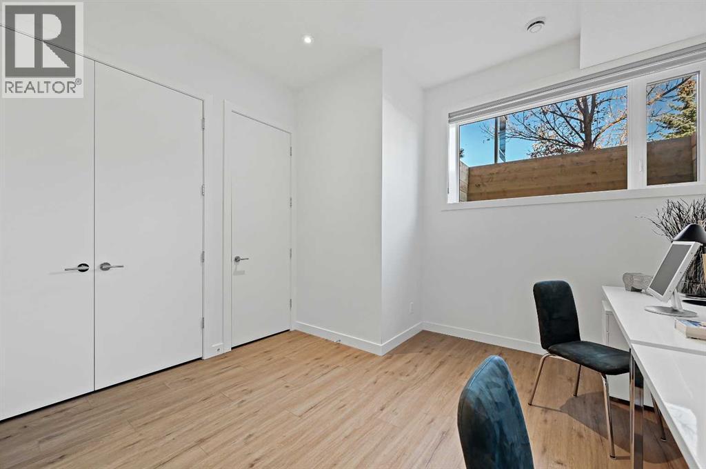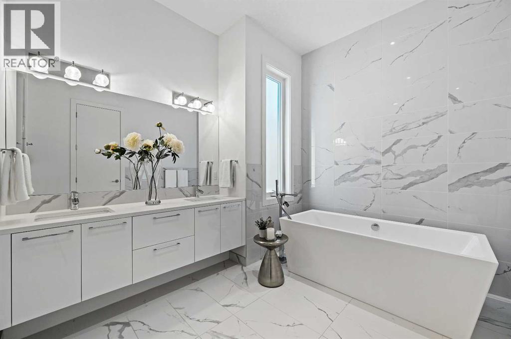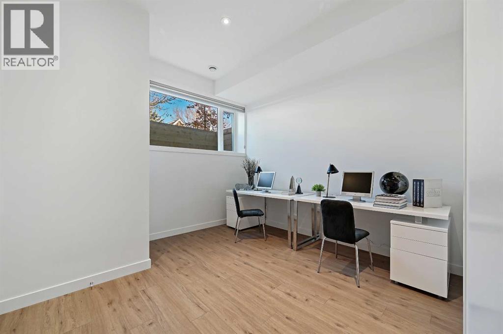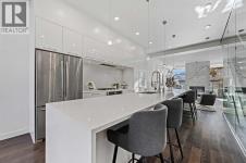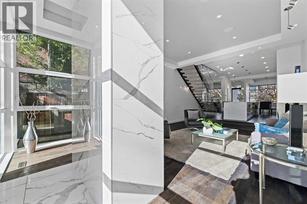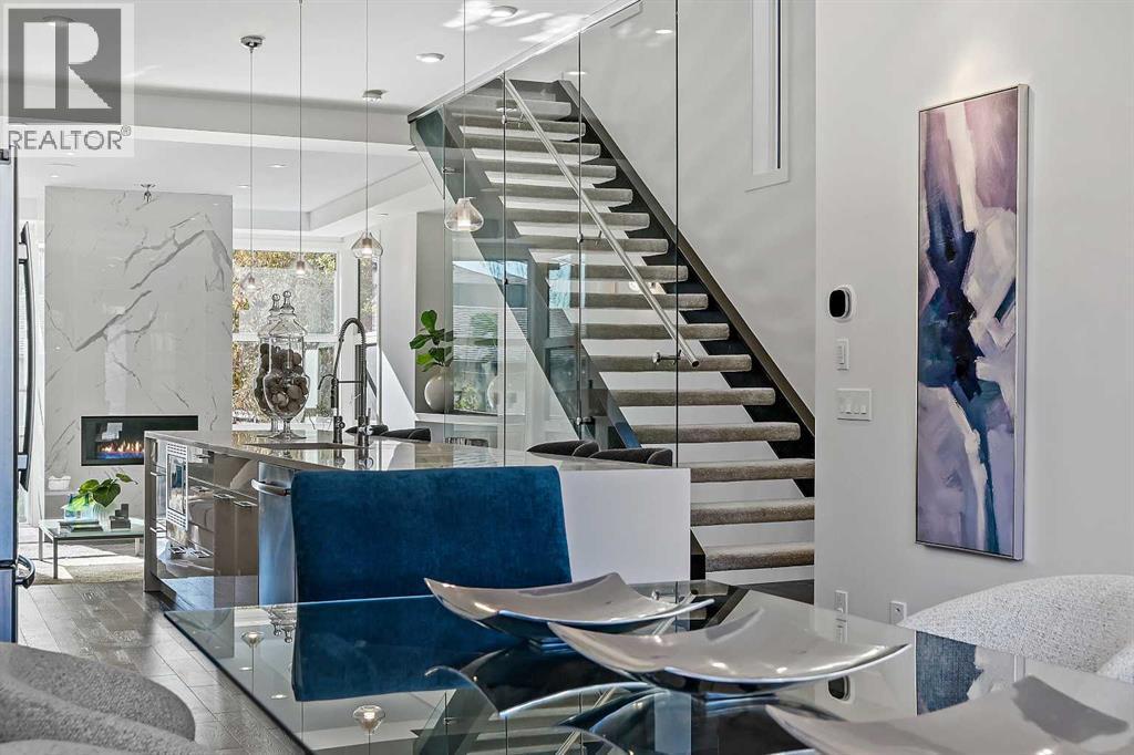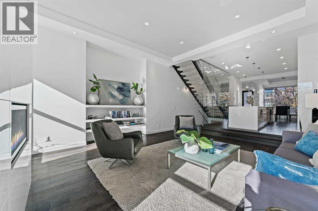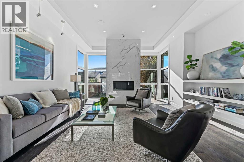 This stunning modern home in West Hillhurst, designed and built by Deanmark Custom Homes, blends European-inspired architecture with the comforts of luxurious urban living. Every detail reflects quality, comfort, and thoughtful design — from the creative open-concept layout that maximizes space and natural light, to the oversized ceiling heights and use of modern, natural, and durable finishes throughout. The main floor features gleaming hardwood and a centerpiece kitchen with a gas cooktop, built-in convection oven, quartz countertops, custom cabinetry, and a large island perfect for hosting. The kitchen opens into a bright, south-facing family room with a tile-wrapped gas fireplace and flows effortlessly to the low-maintenance south backyard. A detached garage includes an EV fast charger, ideal for eco-conscious city living. Upstairs, the spacious primary suite is a serene escape with a walk-in closet and luxurious 5-piece ensuite featuring in-floor heating. Two more bedrooms, a 4-piece bath, and a laundry room with a sink complete the upper level. The fully finished basement is great for guests and entertaining — enjoy the wet bar with fridge and microwave, a 4th bedroom, and a spa-style bathroom with steam shower. Additional features include A/C, vacuflo, water softener, filtration system, and roughed-in basement in-floor heat. Energy-efficient 9.8 kW solar panels make this home future-ready. All of this in a prime location just minutes to downtown, the Bow River, and endless walking and biking paths. This home is a must see to appreciate the quality of the home. (id:6769)
