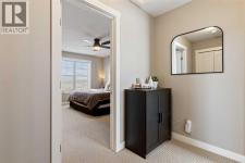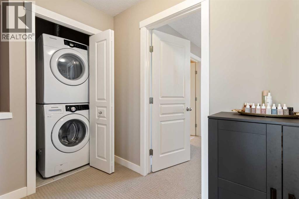 NOW is the TIME - RARE Double WIDE Attached-Garage, upgraded 1235 sq ft double-Primary Townhome in beautiful condition for $400k - additional Parking and THIS home is perfect for those who love seeing NO ONE and NOTHING but Views all around! SEE Detailed Floor Plans, and 3D iGuide Virtual Tour for best experience! Prime location - sole end unit with one neighbour, close to pathways in quietest highest corner of Harvest Mosaic - your personal Patio is quiet, by the community screening fence. The Main Foyer and Living Room is vaulted, with HUGE 2-sided Windows. Up half a flight is the full-sized Dining Room and Kitchen, brilliantly split into a Coffee Bar/Pantry, with the stainless Fridge outside of the main cooking area, where the existing raised 3 to 4 person Eating Bar can be enhanced by a floating chop-block island for utility. Granite counters, unique splash tile, and dark Cabinets are contemporary styled, and the glass top Range, over-the-range Microwave Hood and Dishwasher are also in stainless steel. Hard plank floors and tiles enhance the vibe. Upstairs, double Primary Bedrooms both hold King-sized furnishing (one is current-use Office/Guest/Pup) each has a private Ensuite, Granite vanities, a walk-in shower or tub/shower unit AND both have large Walk-in Closets, with organiser shelves in addition to hanging. The wide landing at the top of the stair gives room for in-suite Laundry days, or, use as a reading Loft! As a bonus, the lowest level is partially developed with drywall, with room for Games AND Storage - just enclose the recently cleaned/serviced Furnace and 60 Gallon Hot Water Tank. Enjoy BBQ year round on the concrete patio, with hedge surroundings, perfect for you, friends, family, or your closest canine friend (one)! Harvest Mosaic in Cranston uses solar panels, micro inverters and motion security lights at the pathways, composite siding, masonry, iron railings, all for highest value and longevity - great reserve plan and maintenance (new RFSR is i n the works). Don't wait to experience 199 Cranford Walk SE today - agents can see documents immediately in supplements. (id:6769)