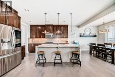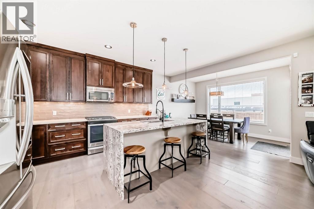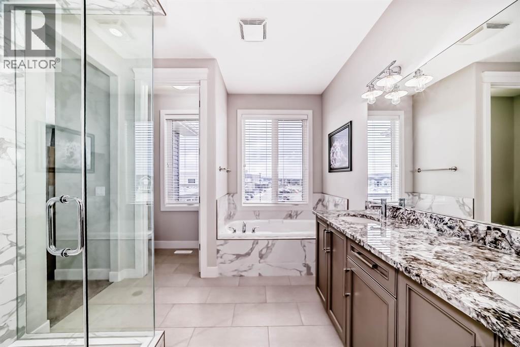 **OPEN HOUSE SUNDAY JAN 25th: 12:00-2:00p**This home is a true 10/10—pride of ownership is evident throughout!**Originally a Janssen Showhome and still with the original owners, this impeccably maintained property was built in 2015 but not occupied until 2018. Step into the spacious foyer and immediately notice the soaring 9-foot ceilings and impressive 8-foot doors on both the main and upper levels. Rich hardwood flooring flows seamlessly into the open-concept living and kitchen areas. The kitchen features custom wood cabinetry with under-cabinet lighting, a brand-new stainless steel appliance package including a gas stove, and a stunning granite waterfall island. The large dining nook leads out to a beautifully landscaped backyard. Enjoy outdoor living with a new composite deck, privacy fencing, a stamped concrete patio, and a hot tub—perfect for entertaining or relaxing. A 6-foot wooden fence provides exceptional privacy all around. Back inside, the walk-through pantry conveniently connects to the oversized, heated garage, which offers ample storage options. Upstairs, the central bonus room—with peak-a-boo mountain views—creates a great separation between two spacious front bedrooms, a 4-piece bathroom, a 3rd bedroom currently used as a home office, and the impressive primary retreat at the rear. The luxurious 5-piece ensuite includes a glass-enclosed, heated shower and a walk-in closet outfitted with custom built-ins.The fully finished lower level offers a 5th bedroom, another full 4-piece bath, and a spacious family room with additional flex space—perfect for a home gym, media room, or play area.Additional upgrades and features include: Gemstone exterior lighting, Central A/C, Full irrigation system (front & back), Extended driveway, Custom Hunter Douglas blinds throughoutThis home is move-in ready with nothing left to do—just unpack and enjoy! (id:6769)