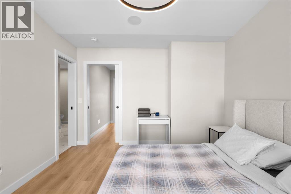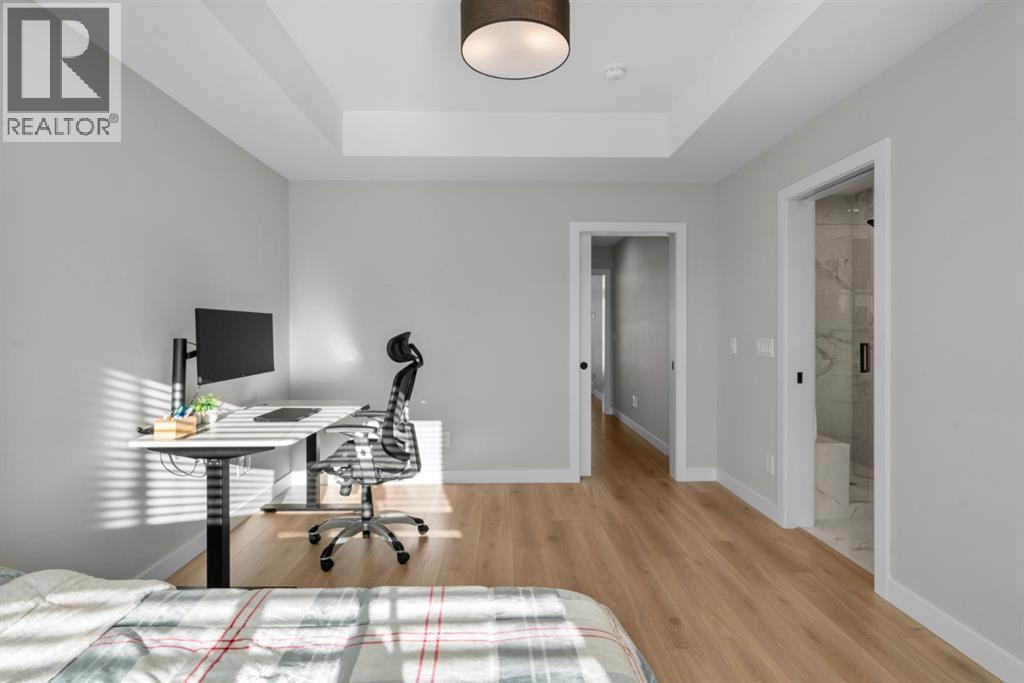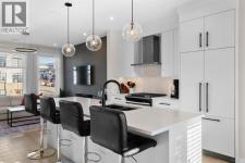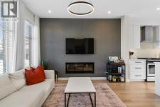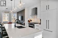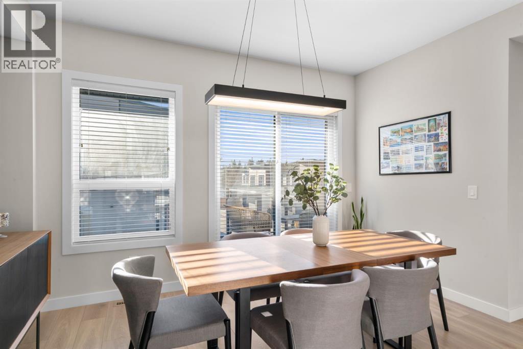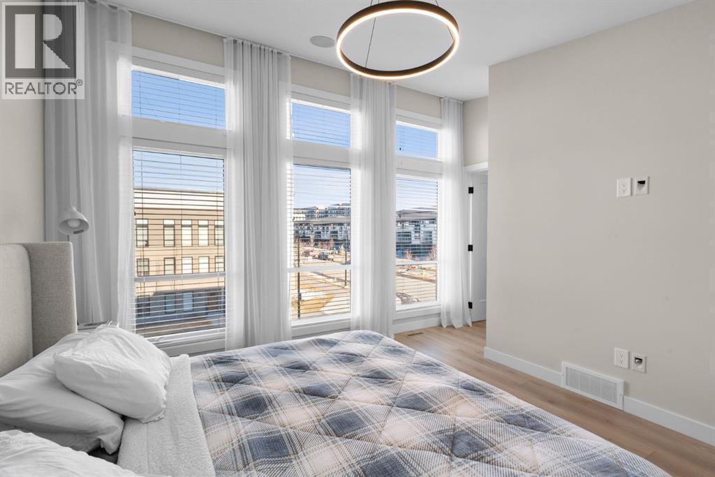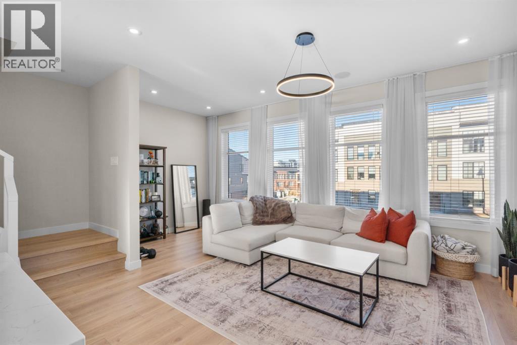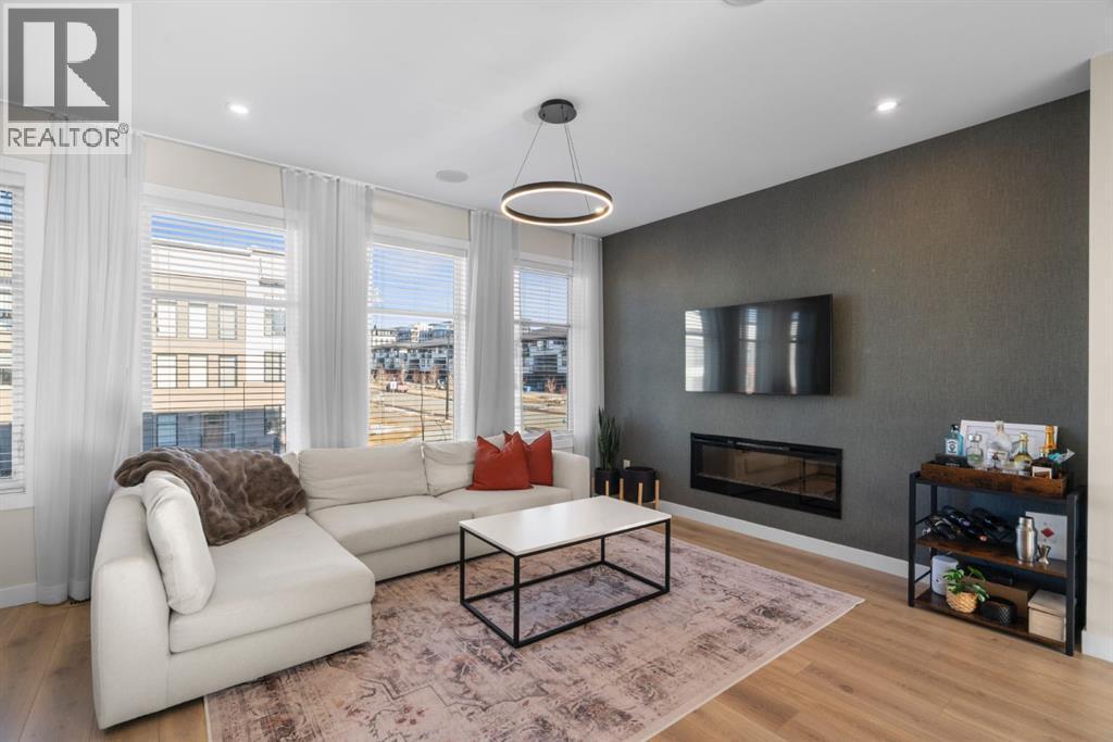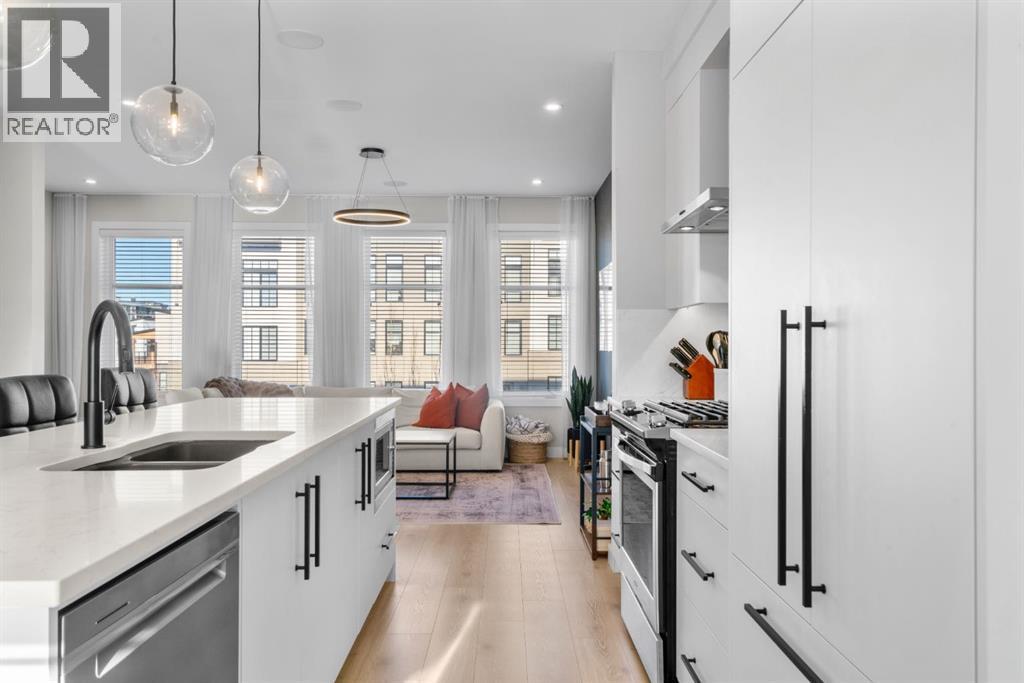 EXCEPTIONAL VALUE IN CALGARY’S PRESTIGIOUS SOUTHWEST! This beautifully maintained former Truman Homes show home showcases elevated design, premium finishes, and thoughtful upgrades throughout. Welcome to this stunning three-storey brick townhome, thoughtfully designed for modern living and timeless style. This residence features a custom gourmet kitchen, an expansive owner’s retreat with a spa-inspired ensuite, central air conditioning, a heated double attached garage, a covered balcony, and refined details at every turn. Additional highlights include wrought iron railing accents and a striking 46-inch electric fireplace.The walk-up front entrance provides a warm, street-facing welcome designed for a variety of lifestyles, picture crisp mornings with coffee in hand as you step out to nearby parks, scenic pathways, and local favourites.Inside, a spacious foyer and convenient access from the oversized heated double attached garage set the tone with ample room for daily essentials. This level also offers a versatile bedroom or home office, ideal for guests or working from home. The second level showcases the heart of the home with an open-concept kitchen, dining, and family area designed for both comfort and sophistication. The chef-inspired kitchen impresses with a large quartz island, continuous quartz backsplash, gas range, built-in microwave, and panelled refrigerator for a seamless, upscale finish. Step onto the covered balcony just off the dining area, perfect for year-round grilling and relaxing.The upper level hosts dual primary suites, each complete with walk-in closets and private spa-style ensuites, along with a convenient upper-floor laundry room. Durable laminate flooring flows throughout, while matte black lighting and hardware create a cohesive, contemporary aesthetic.Experience the perfect blend of luxury, location, and lifestyle in one of Calgary’s most desirable communities. (id:6769)