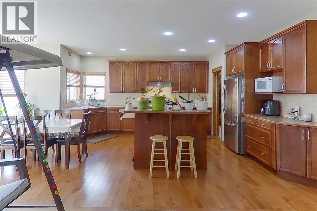 Amazing floorplan in this thoughtfully designed living space. This fully developed home offers just over 3200 sq. ft. of total living area, 5 bedrooms, and 3.5 bathrooms—ideal for growing families or those who love to entertain. Notable features include hardwood flooring, air conditioning, a cozy gas fireplace, and a vaulted bonus room that adds both space and architectural interest. Recent updates include new Class 4 shingles, gutters as well as partial siding completed in 2025.The main floor is functional and inviting, featuring a roomy foyer, a front home office/den, 2-piece powder room, main-floor laundry at the back entrance, and a spacious living room centered around the gas fireplace. The kitchen is well-appointed with an endless amount of cabinetry and counter space, central island, walk-through pantry, and a bright nook with access to the deck and backyard—perfect for everyday living and entertaining.Upstairs, you’ll find three generously sized bedrooms, a 4-piece bathroom, and a vaulted bonus room ideal for family movie nights or a kids’ retreat. The double door entry primary bedroom is complete with a walk-in closet and a full ensuite with corner soaking tub, glass enclosed shower and a sizable vanity.The fully developed lower level adds excellent flexibility with two additional bedrooms, a 3-piece bathroom, a comfortable family room, plus a lot more available storage. The front and back yard have great spaces for gardening and the front attached garage plus longer driveway has window for natural light as well as extra storage racks. Ideally located close to schools, parks, green spaces, shopping, transit, community centres, the library, theatres, and Vivo Place, this home offers exceptional convenience and lifestyle appeal. (id:6769)