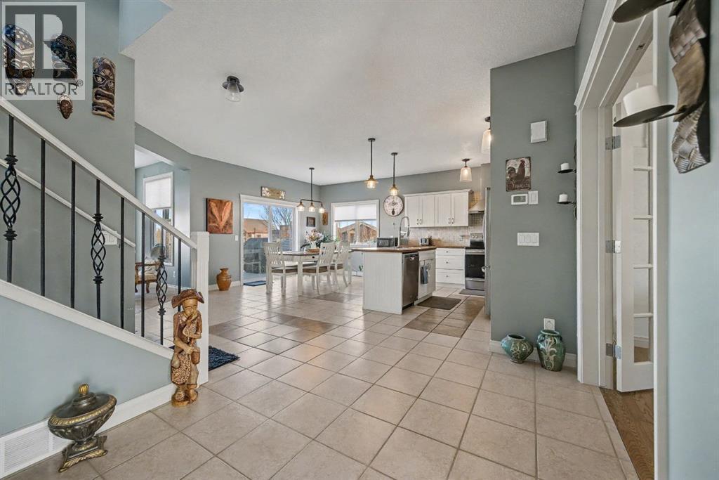 BEAUTIFUL, BRIGHT, and CHEERY home on a HUGE lot backing onto GREEN SPACE. The OPEN CONCEPT layout is perfect for living and entertaining. The gourmet kitchen features a walk-through pantry, STAINLESS STEEL appliances, plenty of cabinets, and a large ISLAND overlooking the dining area. Patio doors lead to your DECK, where you can sit back, relax, and enjoy the views.The living room is complete with a cozy FIREPLACE. There is also a FLEX room on the main level, perfect for a dining room, home office, or kids’ playroom. Tons of windows allow an abundance of sunshine and NATURAL light to flow throughout the home.Upstairs, you will find a spacious BONUS room and 3 bedrooms, including a large primary bedroom with a walk-in closet, a LAVISH ENSUITE, and MOUNTAIN VIEWS.The WALKOUT basement features IN-FLOOR HEATING and is professionally developed with a large family/rec room, a 4th bedroom, another bathroom, and plenty of storage. OVERSIZED DOUBLE attached GARAGE!EXCELLENT location close to parks, amenities, and more. Don’t miss out on this FANTASTIC home backing onto GREEN SPACE. (id:6769)