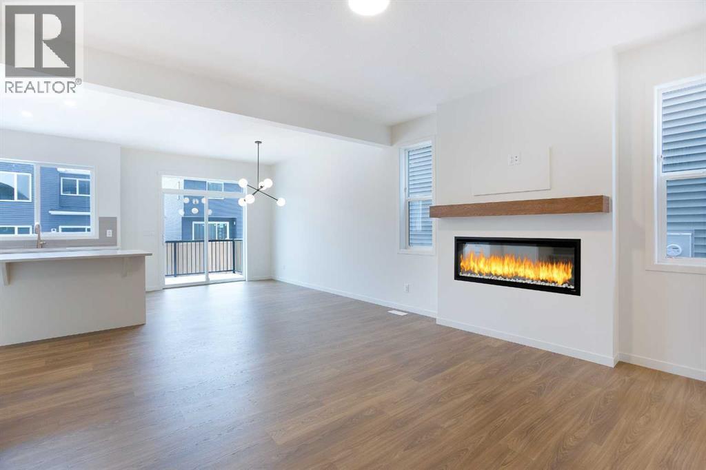 Welcome to this beautifully designed Morrison Homes Shetland I model, a modern and thoughtfully laid-out two-storey semi-attached home located in the highly sought-after community of Sirocco at Pine Creek. Offering over 1,800 sq. ft. of developed living space above grade, this home perfectly combines contemporary style, functional design, and exceptional attention to detail, complete with a front-attached double garage and a smartly planned layout that effortlessly accommodates modern family life while providing ample space for entertaining, daily routines, and long-term living.The main floor showcases a bright, open-concept design anchored by light wood–finish luxury vinyl plank flooring, creating a warm and inviting atmosphere that flows seamlessly from room to room. The kitchen is a true centerpiece, featuring quartz countertops throughout, modern cabinetry, and a full suite of stainless steel appliances, offering both style and practicality for the modern home chef. The generous layout provides plenty of prep space, while the open dining and living areas are anchored by a feature TV wall with an electric fireplace, establishing a striking focal point that blends comfort, function, and modern elegance.A well-designed mudroom with built-in cabinetry and tiled flooring provides a convenient and organized transition from the garage, keeping daily essentials neatly stored and accessible. A stylish powder room on the main floor adds convenience for both family life and entertaining guests.Upstairs, the home continues to impress with three spacious bedrooms, including a private primary suite that offers a walk-in closet and a beautifully appointed ensuite bathroom with tiled flooring and a sleek stand-up glass shower, providing a spa-inspired retreat within the comfort of your home. A centrally located bonus room provides additional versatile living space in the heart of the upper floor, perfect for a family media area, study, or playroom. Two additional bedrooms share a full bathroom, also finished with tiled floors for a cohesive and high-end feel throughout. The top-floor laundry enhances convenience, while soft carpeting throughout the upper level adds warmth and comfort to all bedrooms and living spaces.The unfinished basement is ready for future development, presenting a versatile blank canvas to create additional living space, recreation rooms, extra bedrooms, or a home office, allowing buyers to customize the home to perfectly suit their family’s evolving lifestyle and needs.Situated in a vibrant southwest community with access to parks, walking and cycling pathways, schools, and future amenities, this home blends thoughtful design, high-quality finishes, and long-term flexibility. The Shetland I model at 65 Creekside Passage offers discerning buyers a contemporary, functional, and stylish home that combines immediate comfort with exceptional potential for expansion and personalization, making it an outstanding choice for families seeking quality. (id:6769)