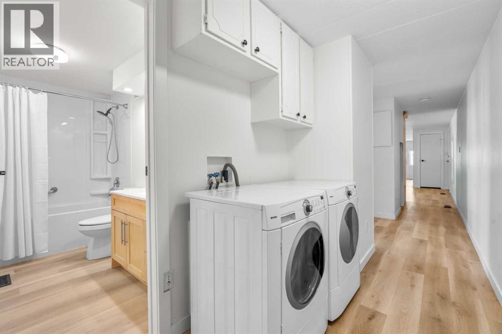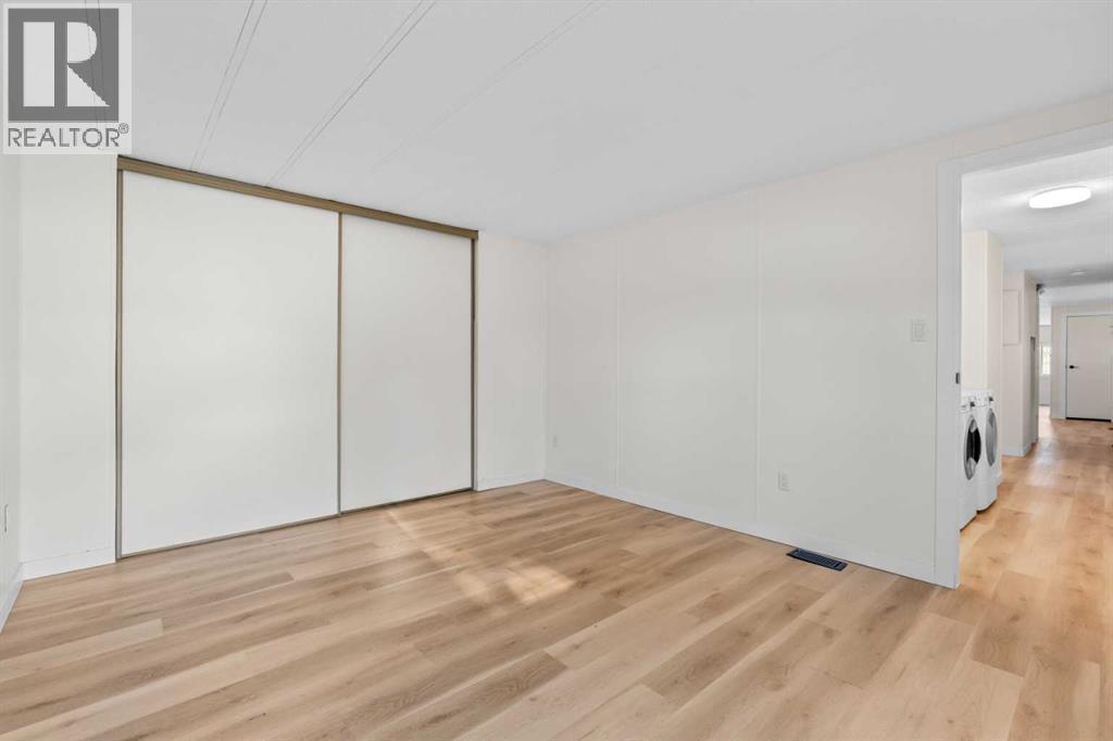 Don’t wait to view this property - you won’t be disappointed! Renovated 3 bed, 1 bath mobile home in the plus-18 section, conveniently located Sunpark Mountview Mobile Home Park. FULLY RENOVATED WITH ALL OF THE BIG-TICKET ITEMS DONE! This home is on a cul-de-sac with quick access to 17 Ave SE, sits across from a green space, and has a large, private backyard. You will see it has a great layout with a large, living room, huge kitchen, and dining area with tons of newer kitchen cupboards, including two pantries, and new stainless-steel fridge. You will find new vinyl plank flooring throughout. The home is painted in a modern color palette designed to suit any decor, a spacious hallway leading to the large 4-pce bath with newer tub, toilet and vanity. The large living brings in natural light through the front windows. The primary bedroom is spacious with a large closet. The second and third bedrooms are a good size, and one can be used as an office or flex room. This home sits on a large lot with parking for two cars side by side in the laneway. Lot rent of $1100 per month includes water, sewer, garbage pickup and snow removal. Unbeatable location: Enjoy quick access to 17 Ave SE, Stoney Trail, Deerfoot Trail, and downtown Calgary. Transit is just a block away, while East Hills Shopping Centre, International Avenue, restaurants, and all amenities are minutes from your door. and all levels of transit, shopping, restaurants and amenities are close by. Plus, Elliston Park is right across the street. Lease approval is required. Pets are allowed with approval. This move-in ready home offers exceptional value for the price. Don’t miss your opportunity—schedule your viewing today and picture yourself settling into this beautifully updated, conveniently located home! Check out the iGuide tour for a virtual walk-through (id:6769)